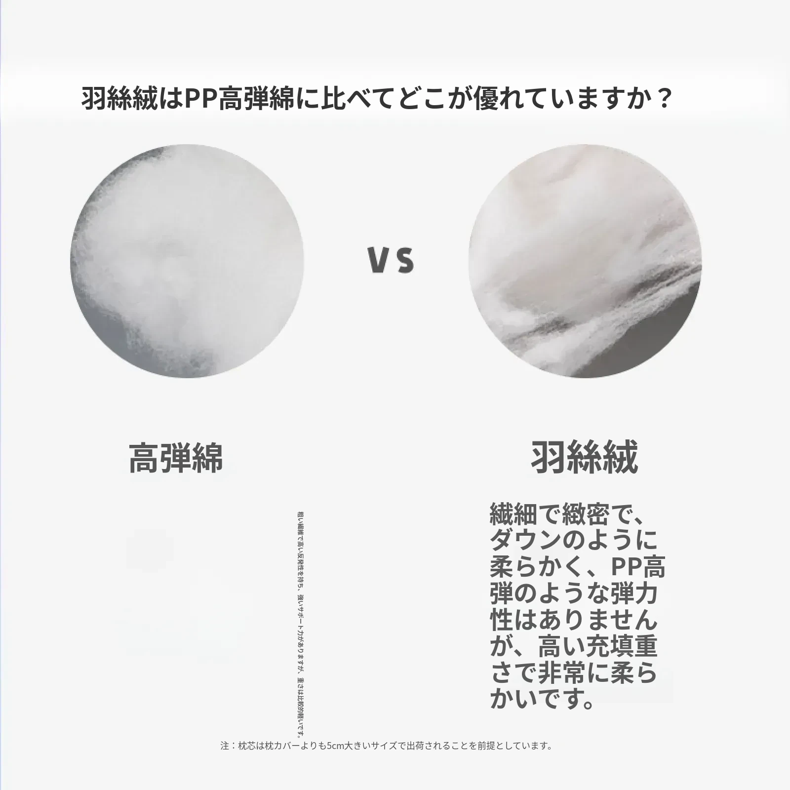 【枕芯の紹介 | デフォルトの枕芯は枕カバーより5cm大きい】