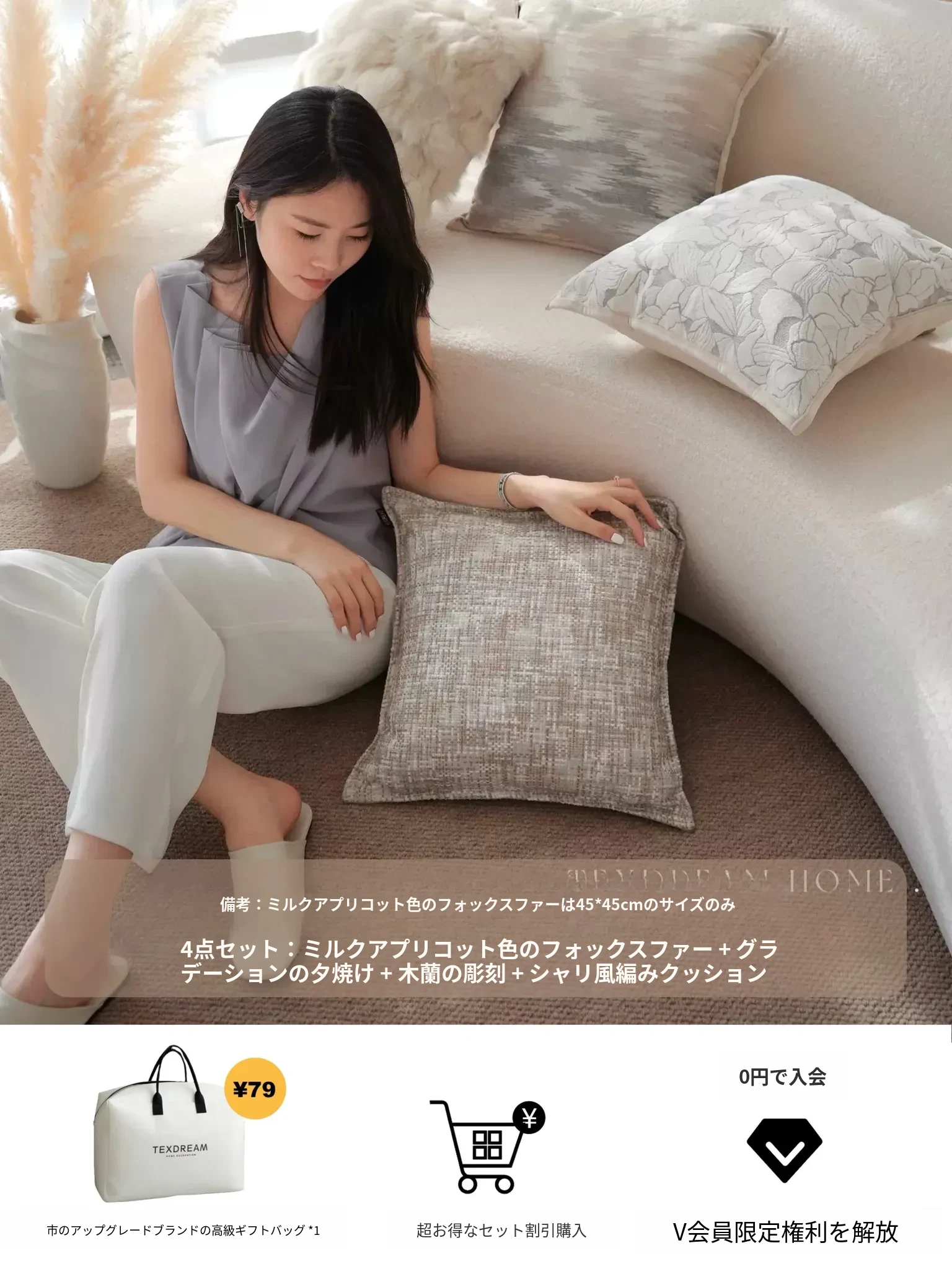 正方形クッション 45x45cm【カバー+羽毛綿クッション】