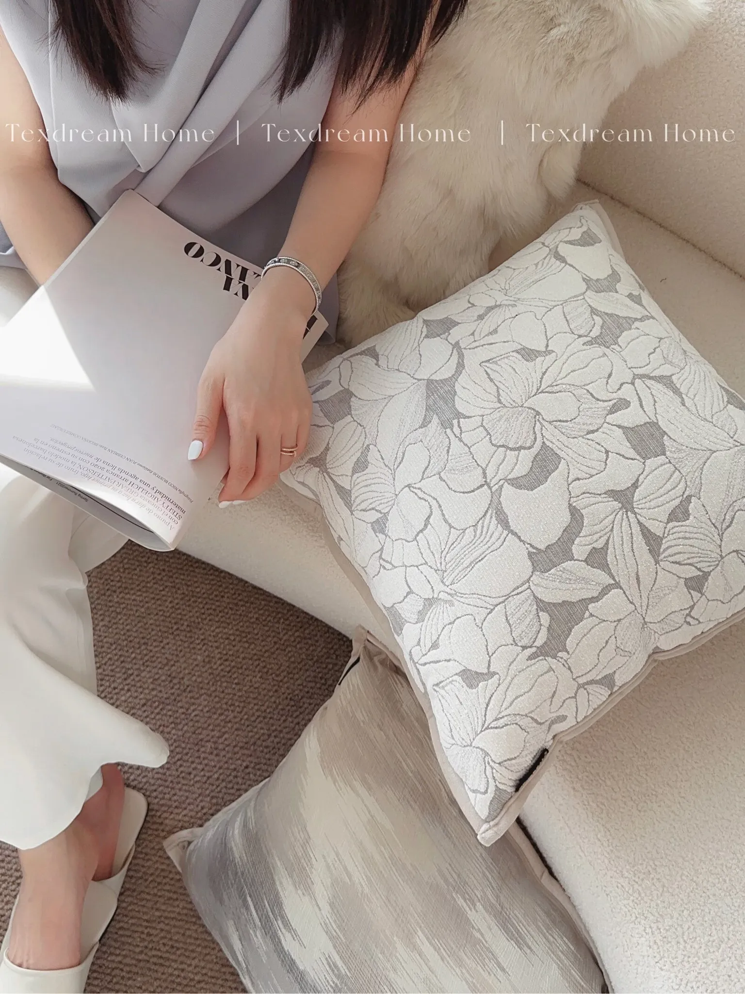 テックスドリームのスタイル!軽やかなフレンチ雰囲気のラベンダー柄クッションカバー、モダンでシンプル、高級感あふれる窓辺のアクセントに最適!