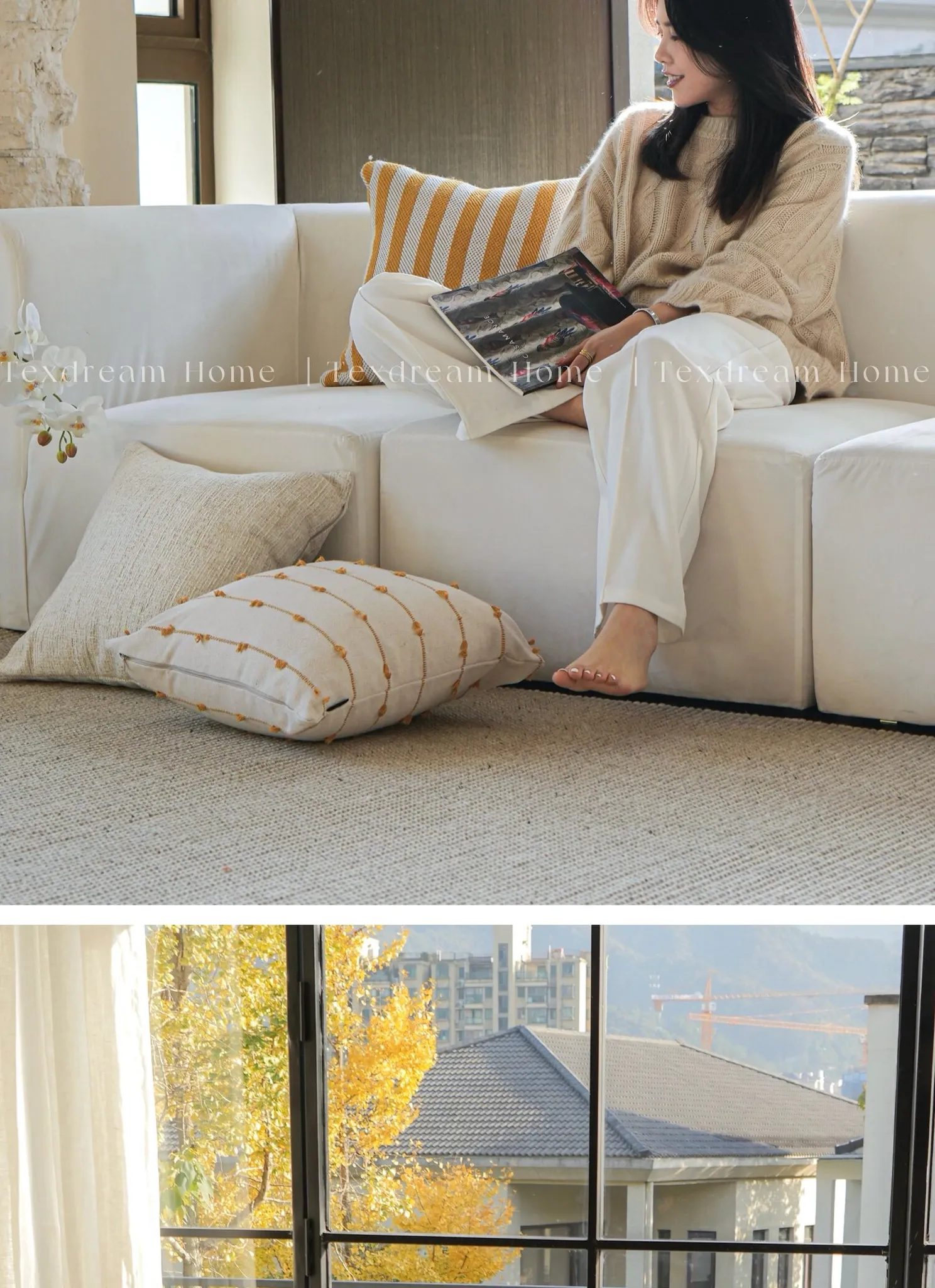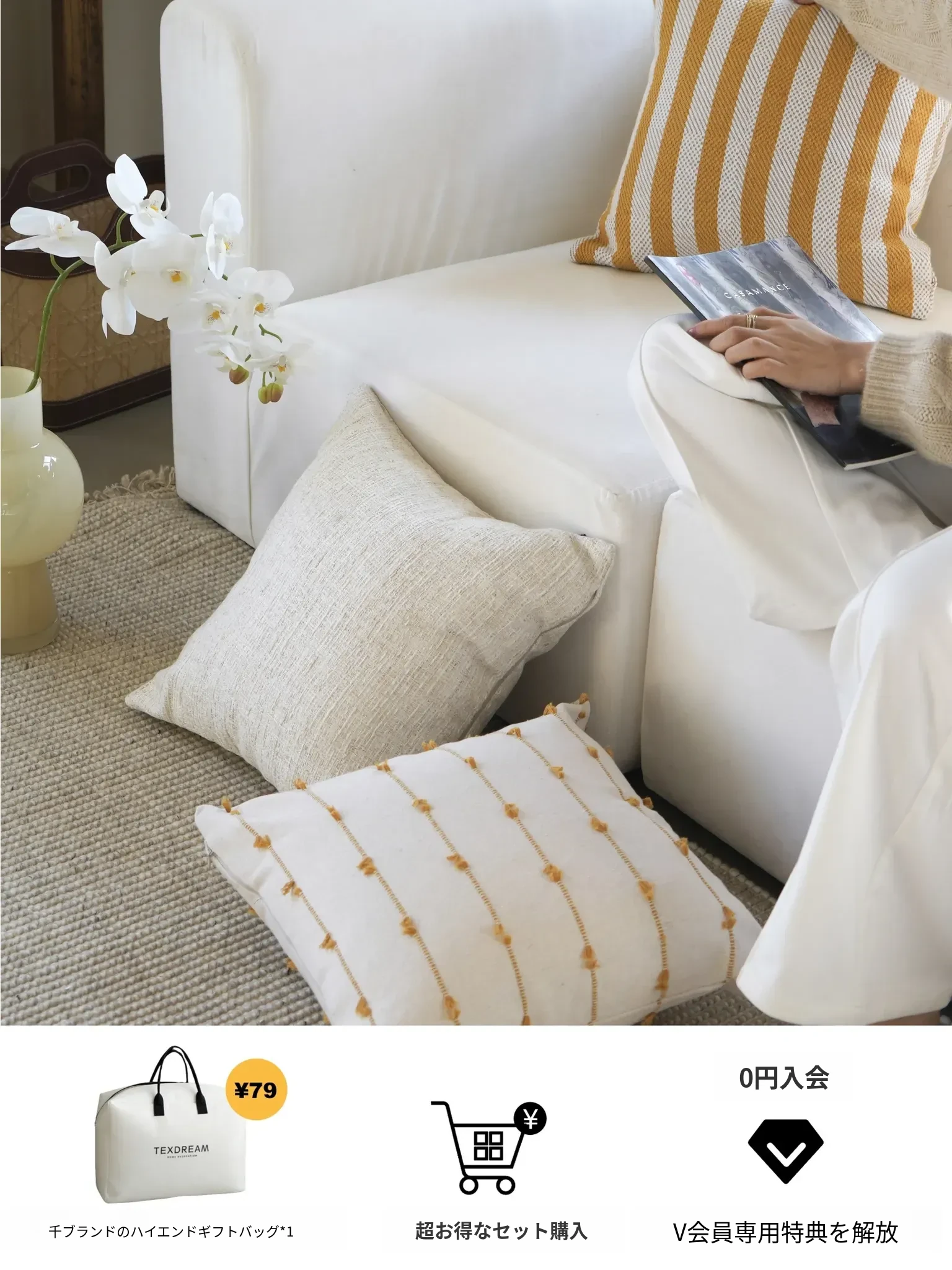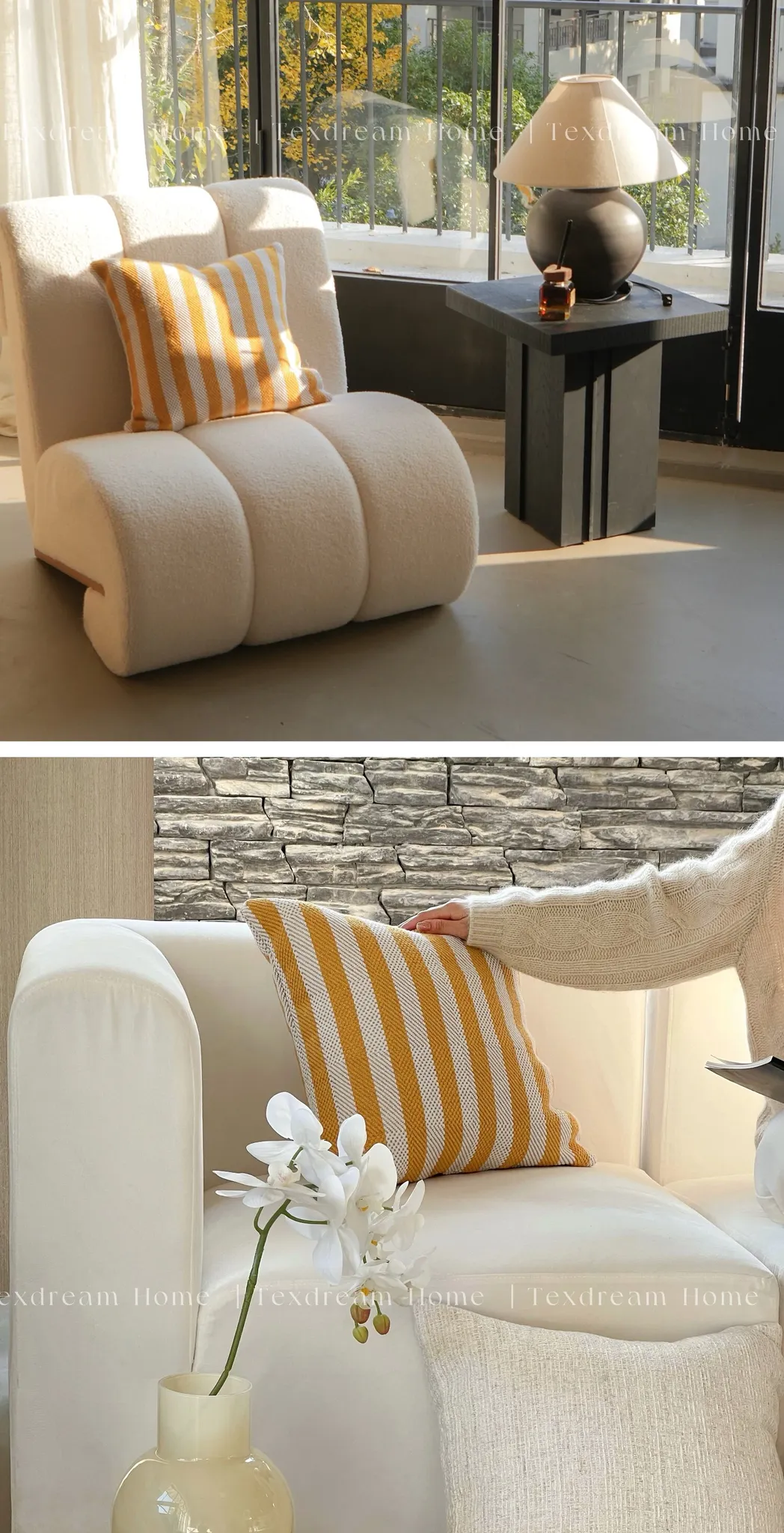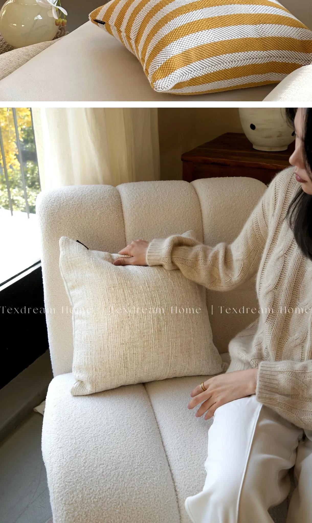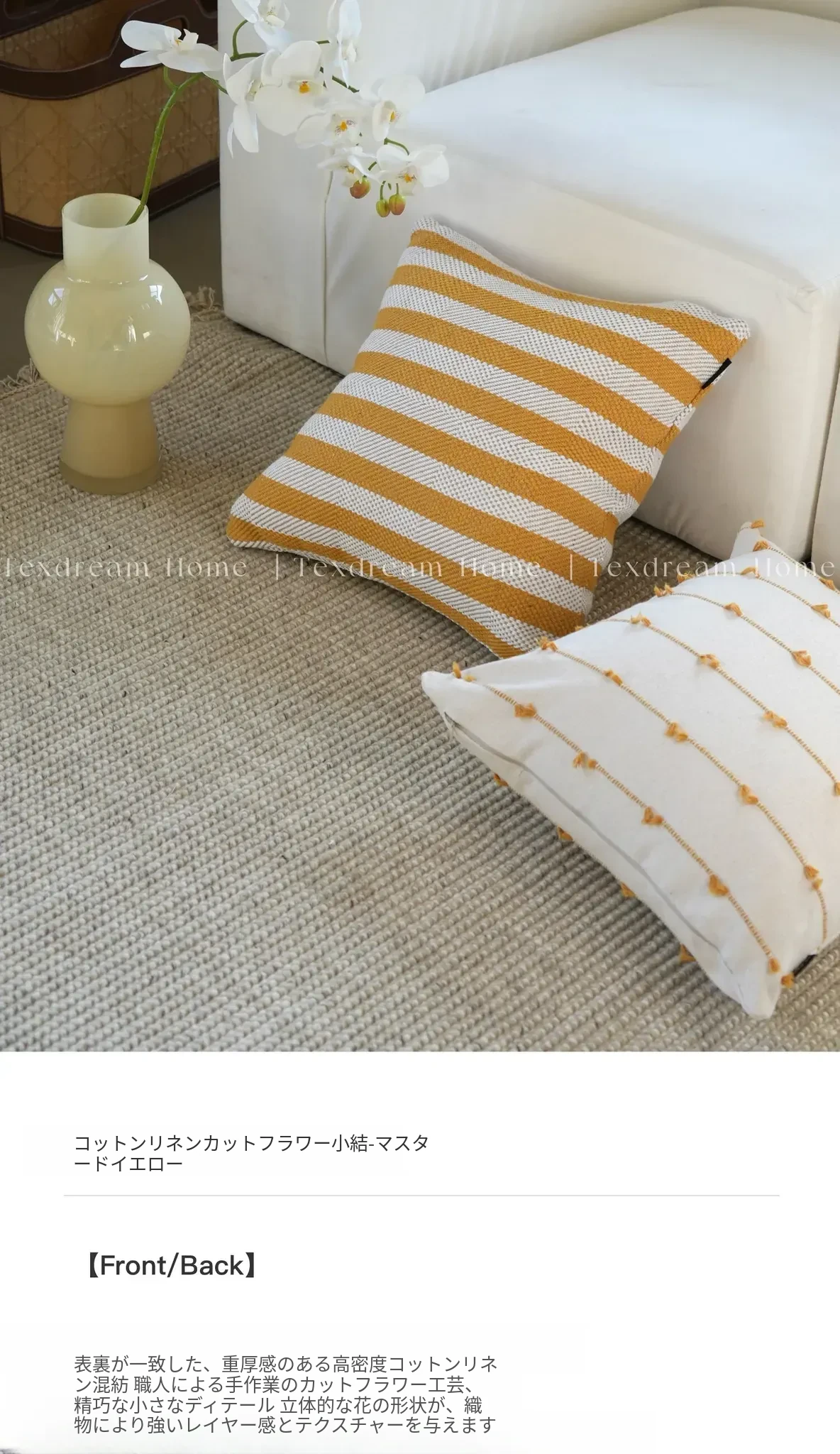 Texdreamのスタイル 芥子色リネンテクスチャーのクッションモダン軽奢ソファ用クッション、どんなインテリアにも合うベッドヘッドピローケース!おしゃれで快適な空間を演出します。