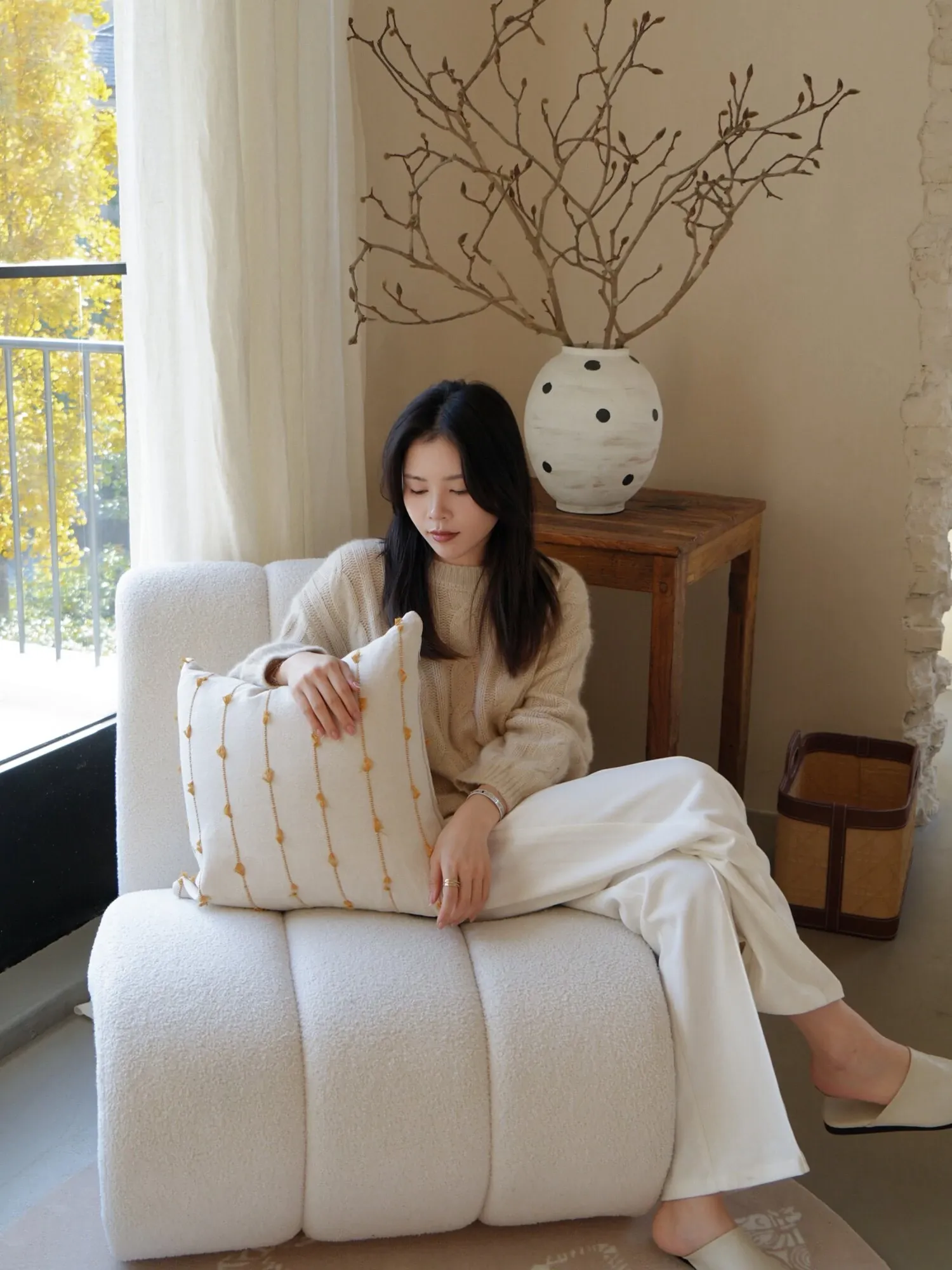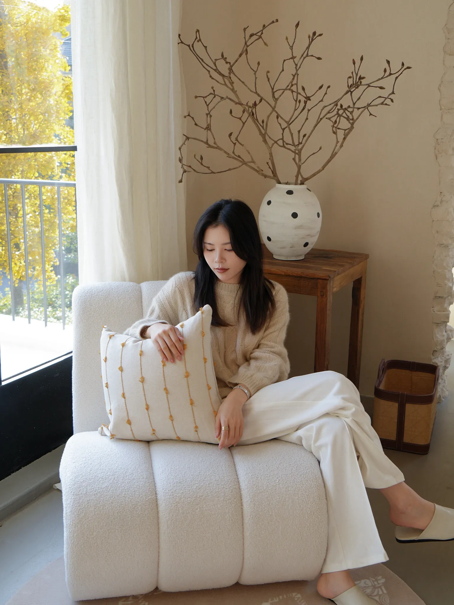 【麻感の粗いツイード編み | 黄白】