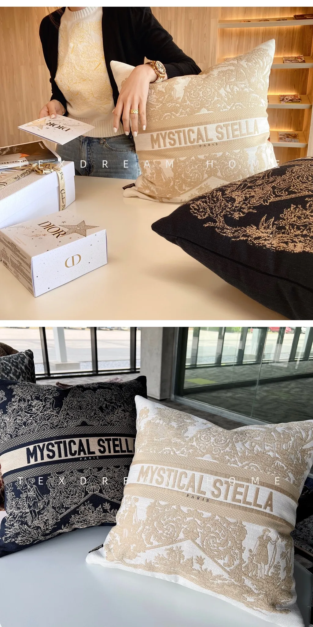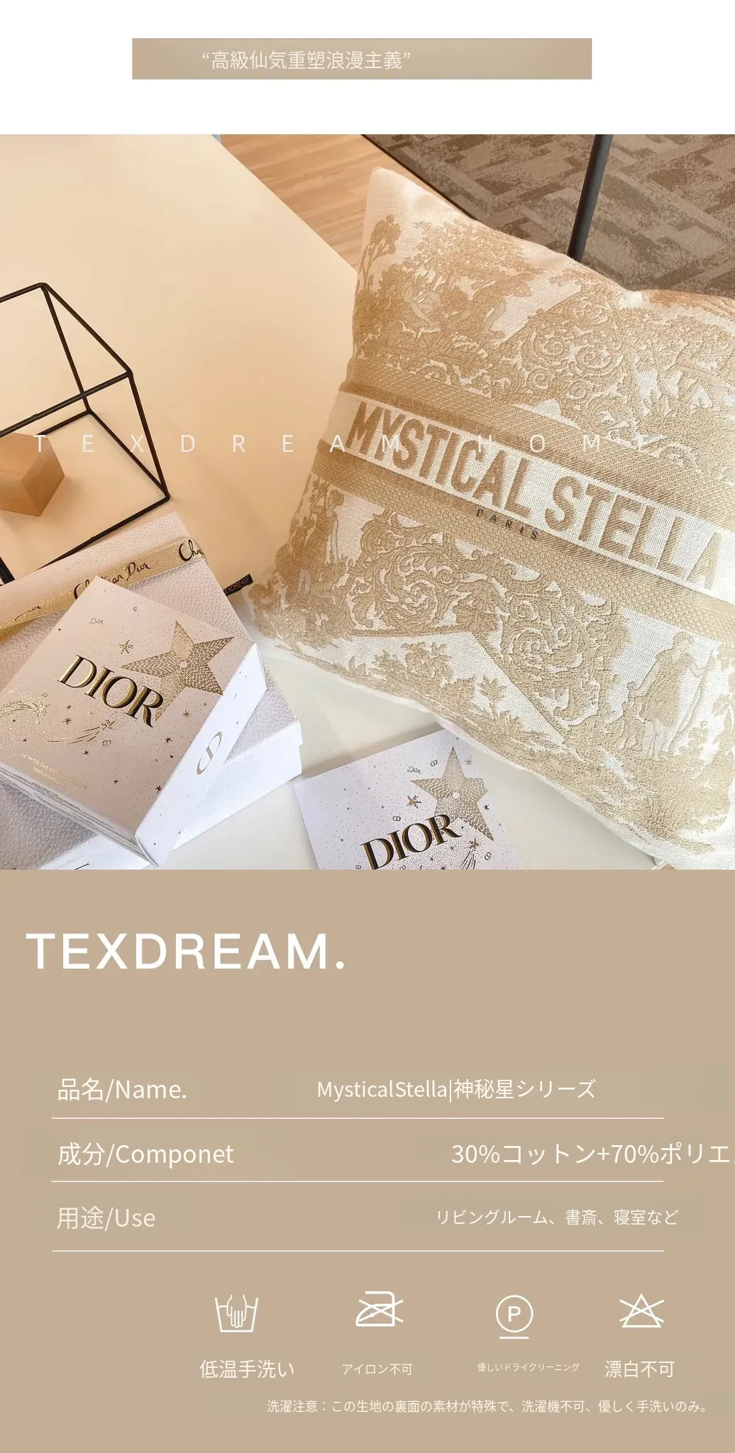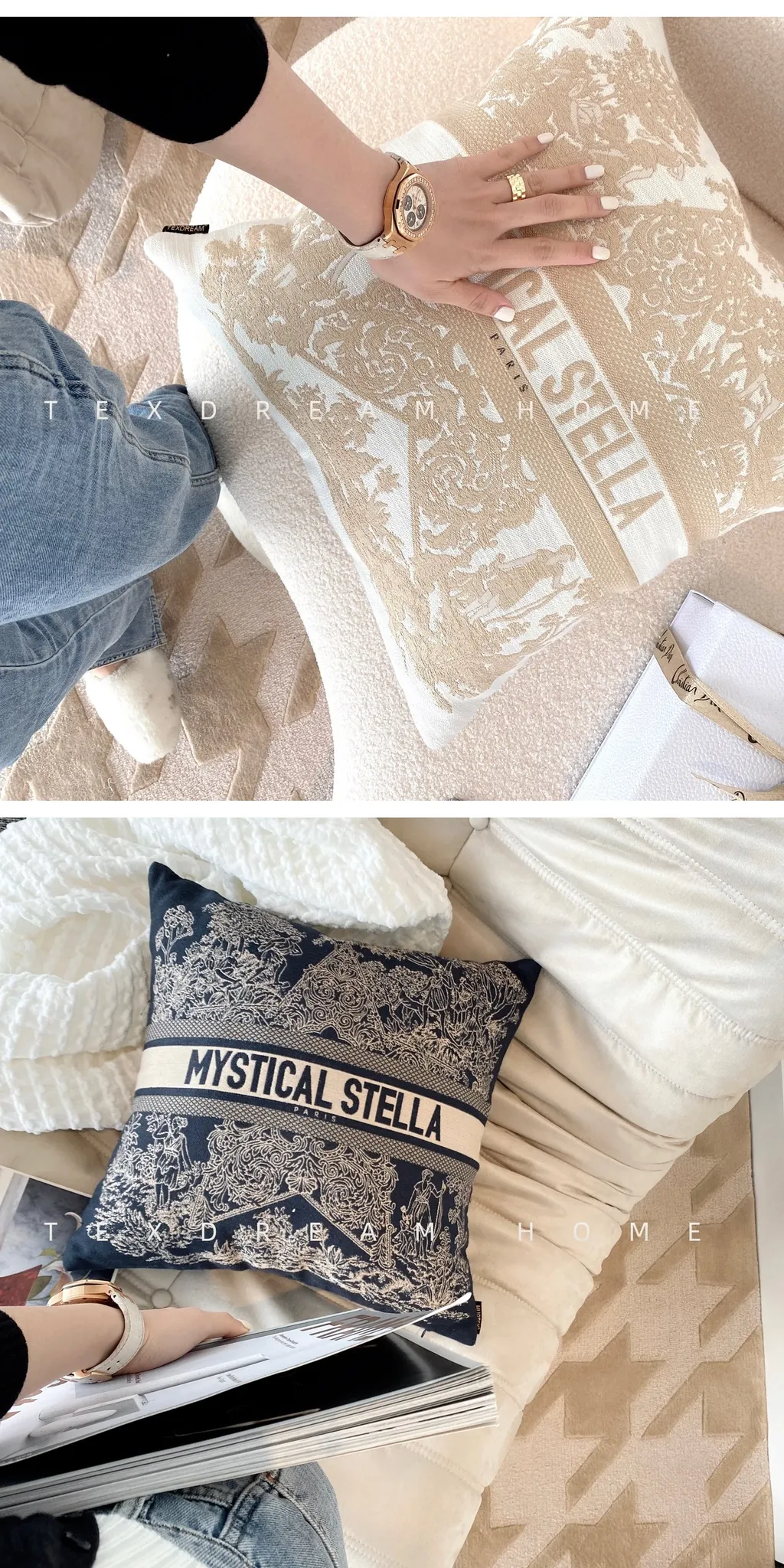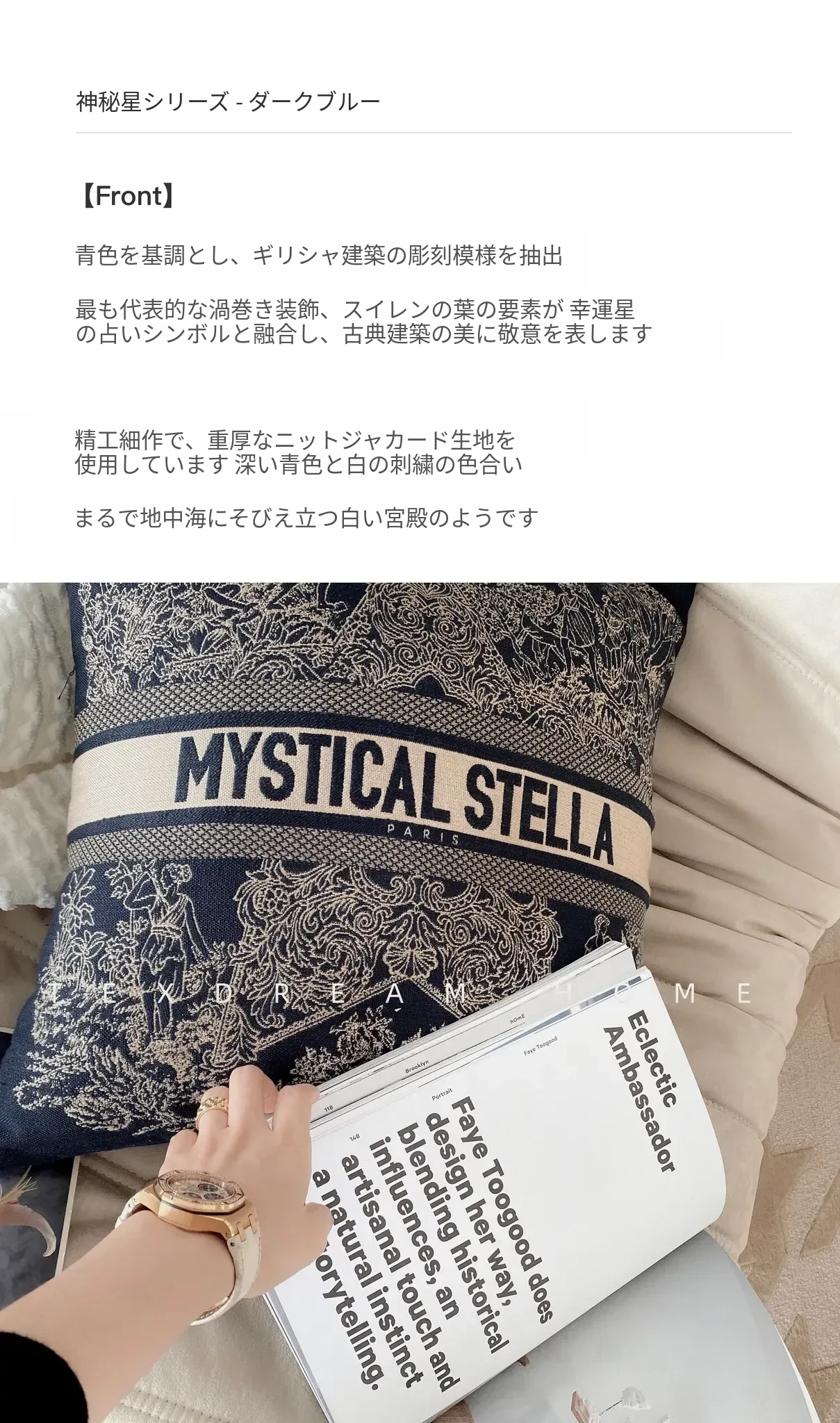Texdreamの神秘的な星柄 豪華刺繍クッション カジュアルでモダンなインテリアにぴったり!リビングルームやソファに最適なクッション、クッション中身付きで心地よさも抜群!