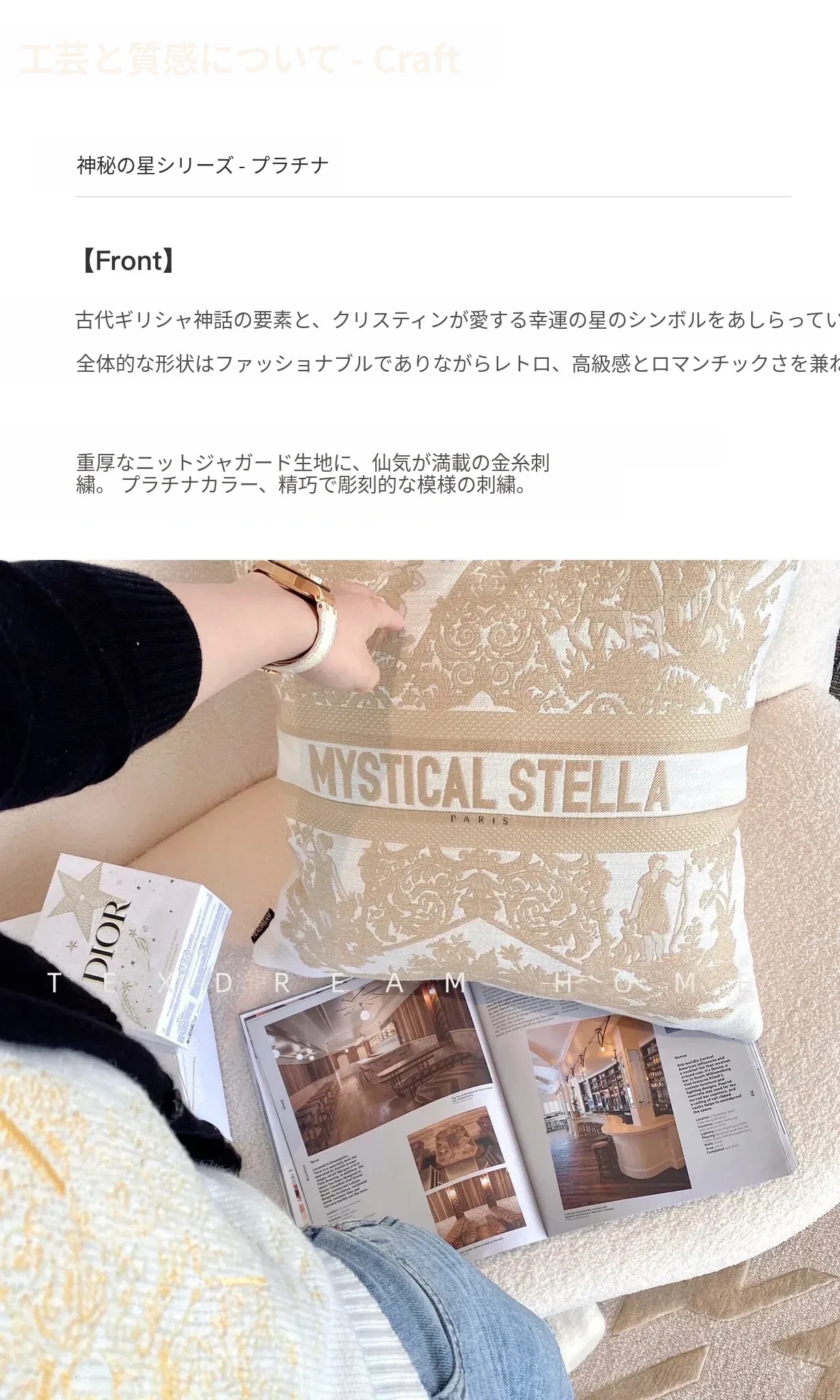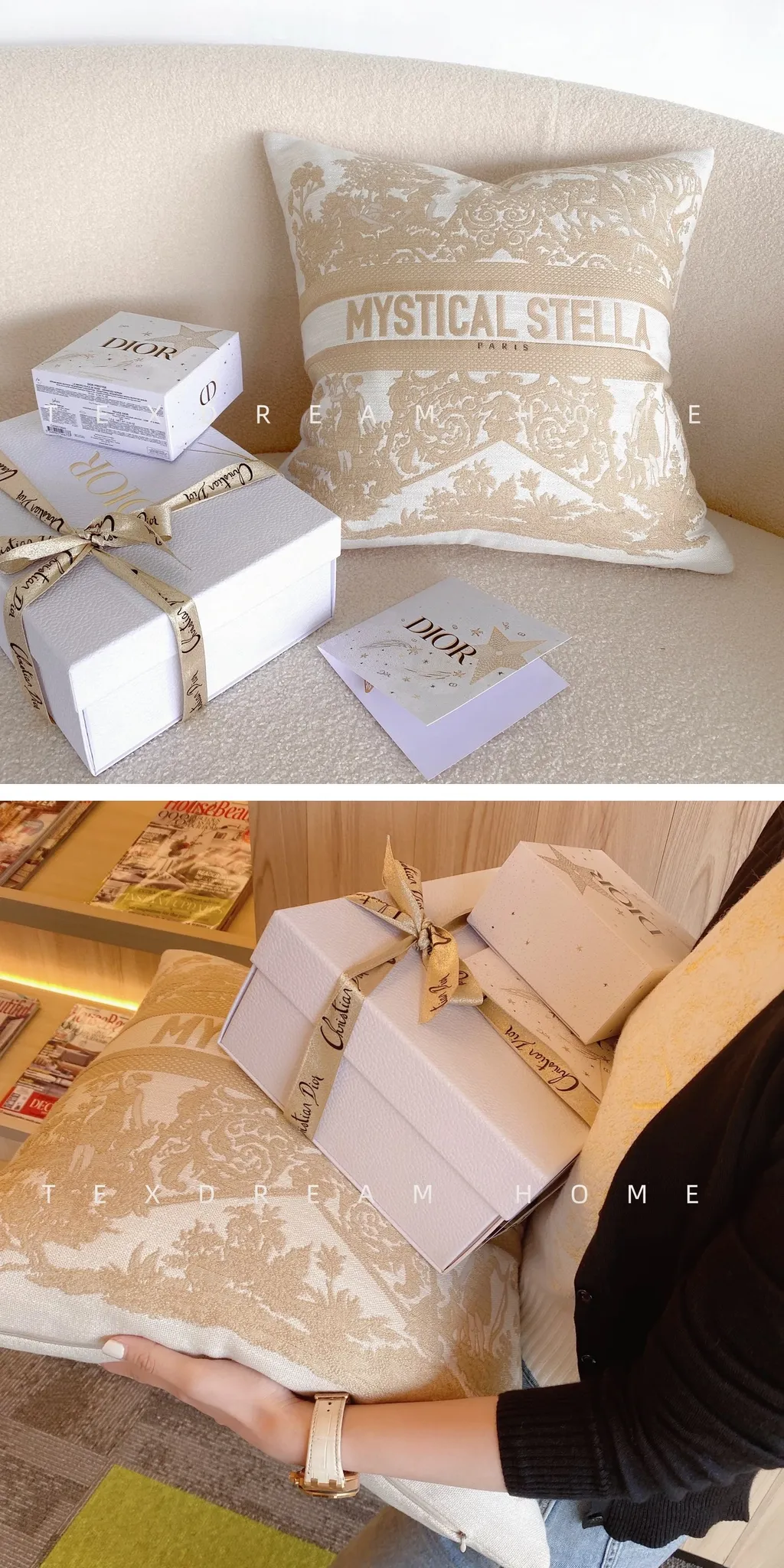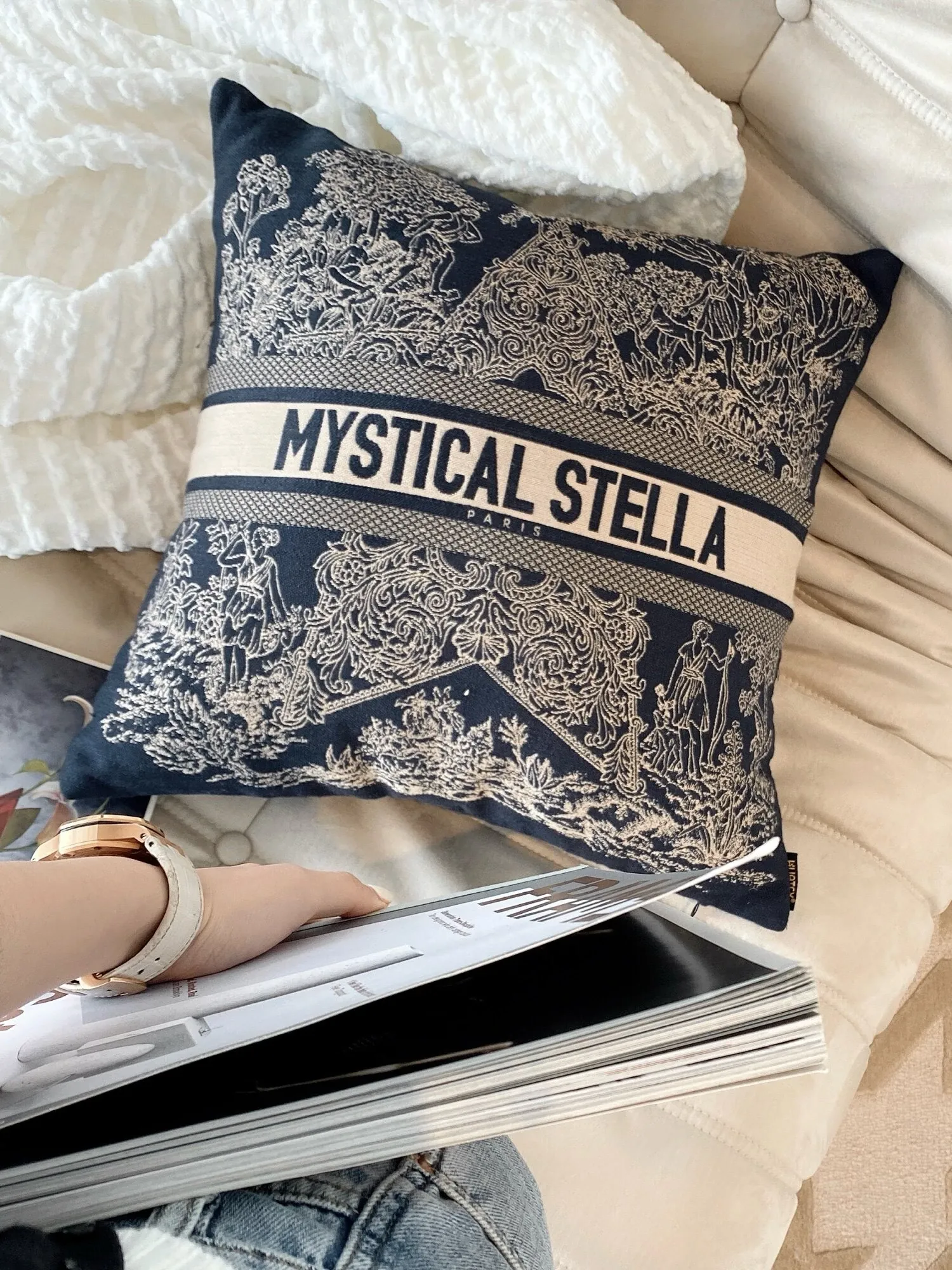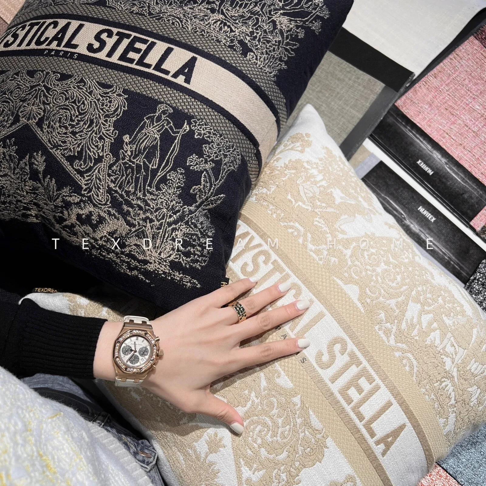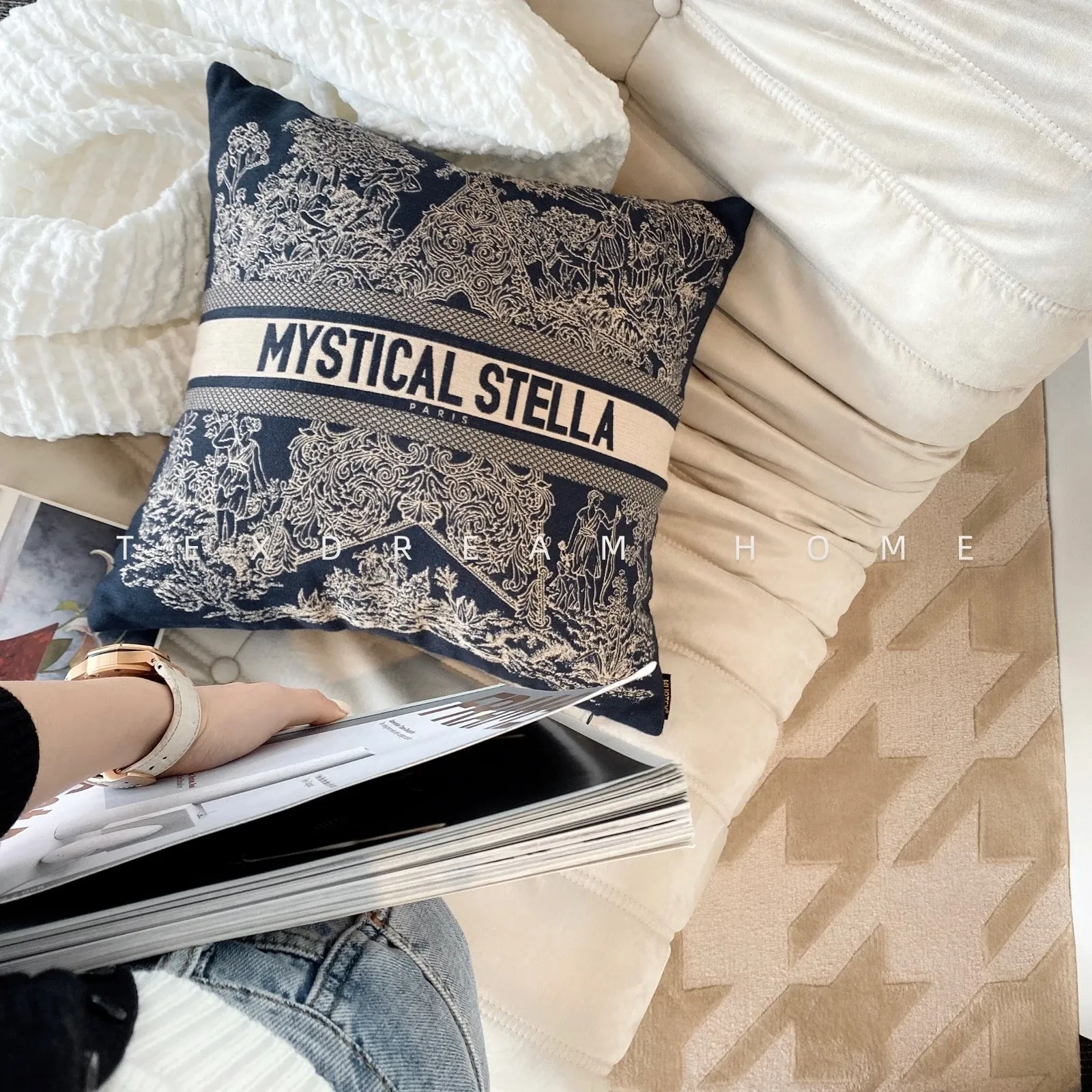 Texdreamの神秘的な星柄 豪華刺繍クッション カジュアルでモダンなインテリアにぴったり!リビングルームやソファに最適なクッション、クッション中身付きで心地よさも抜群!