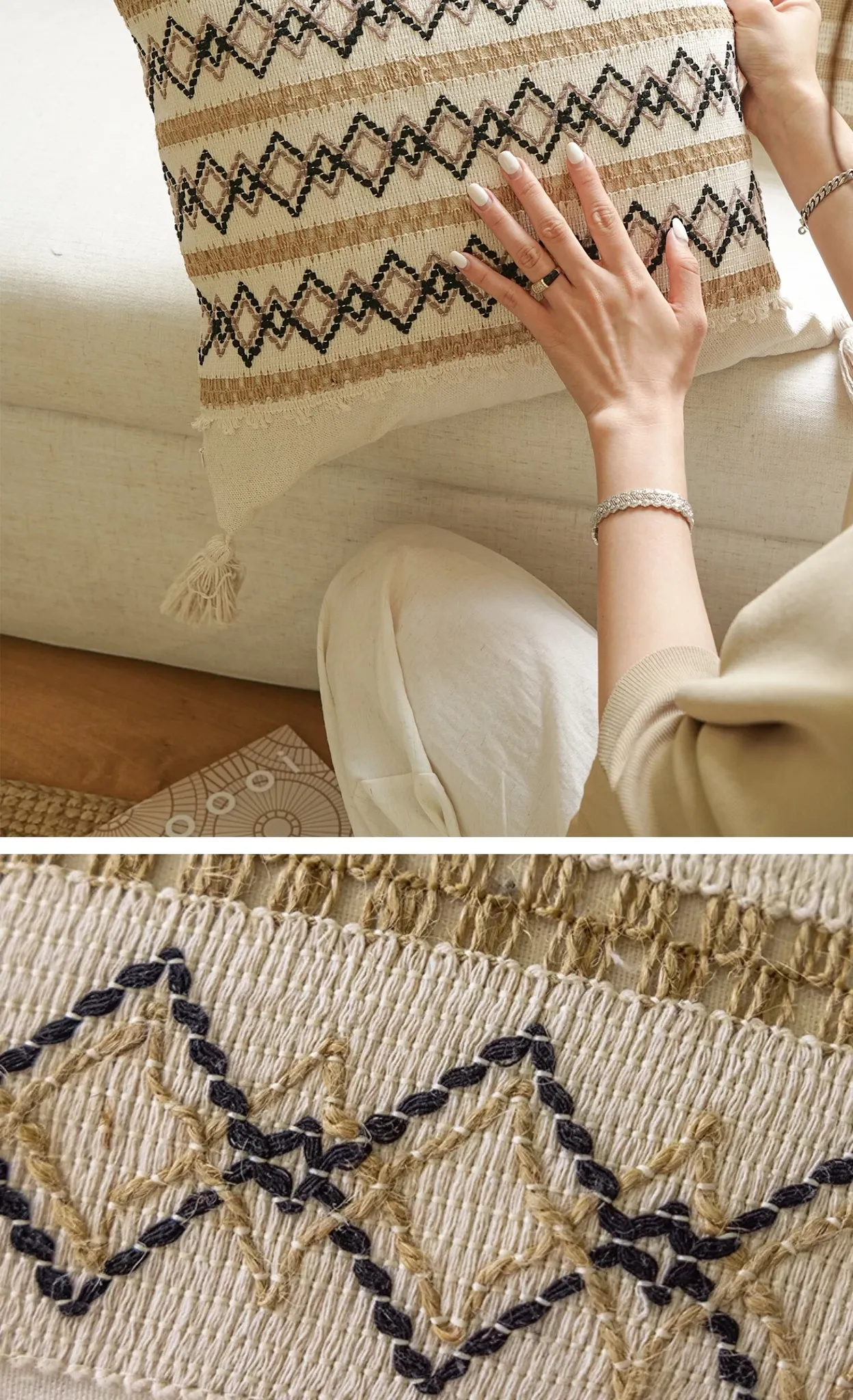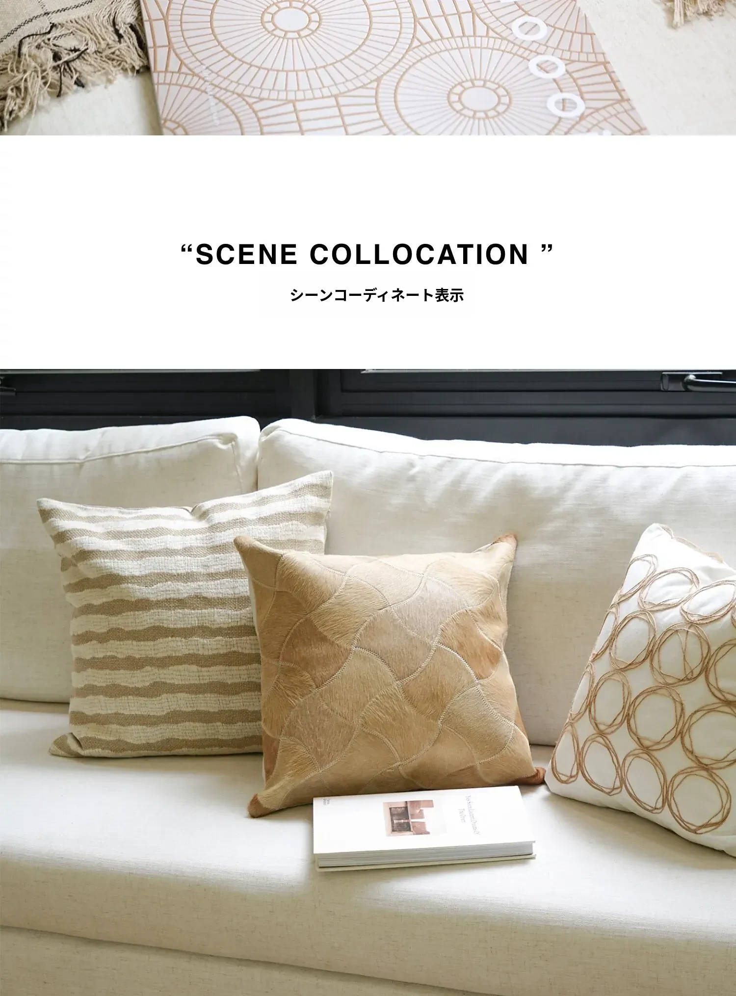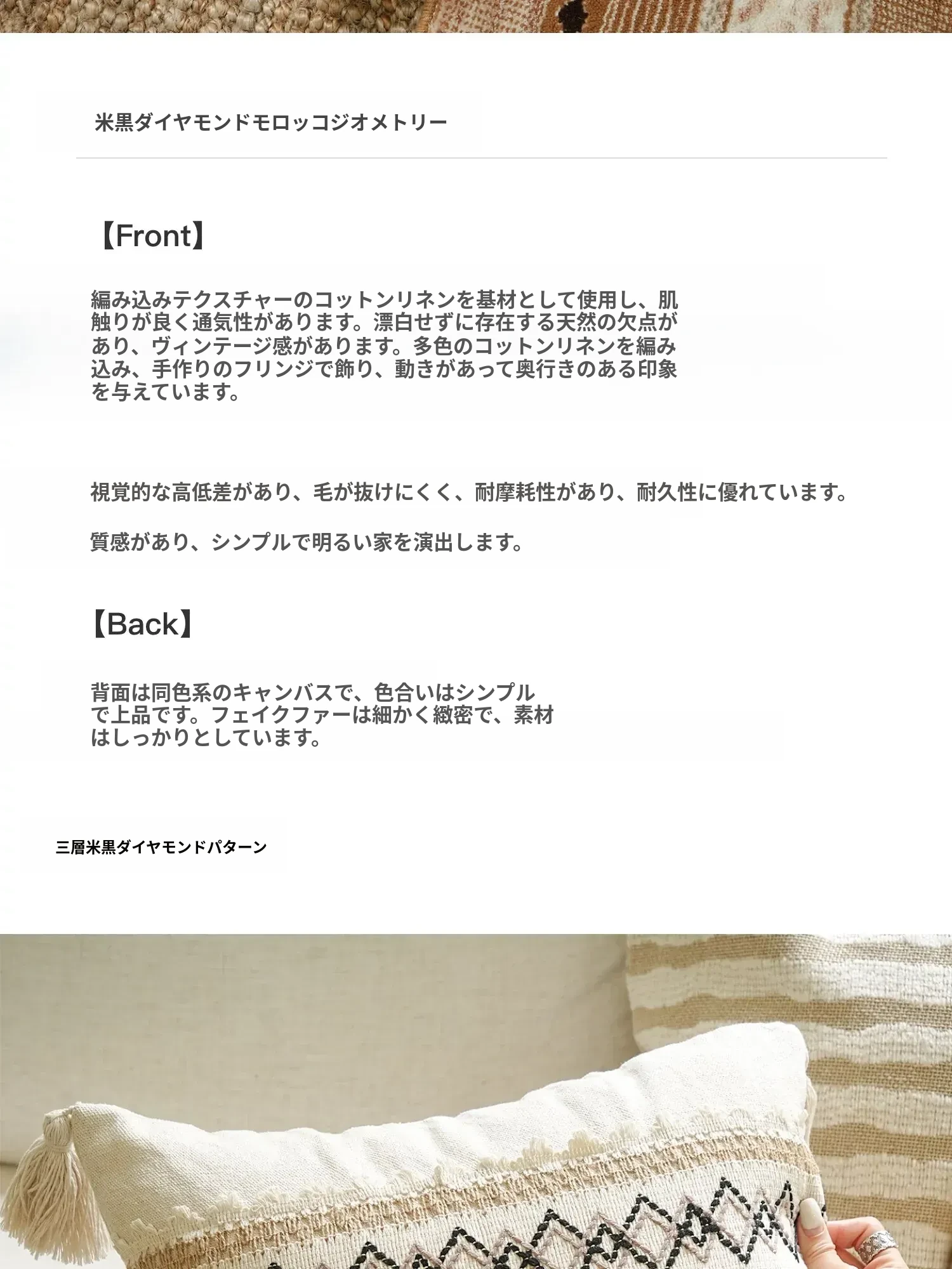 【コットンリネン白ひし形クッション】