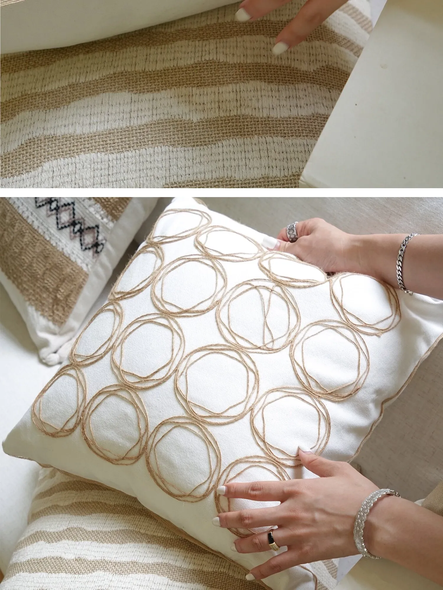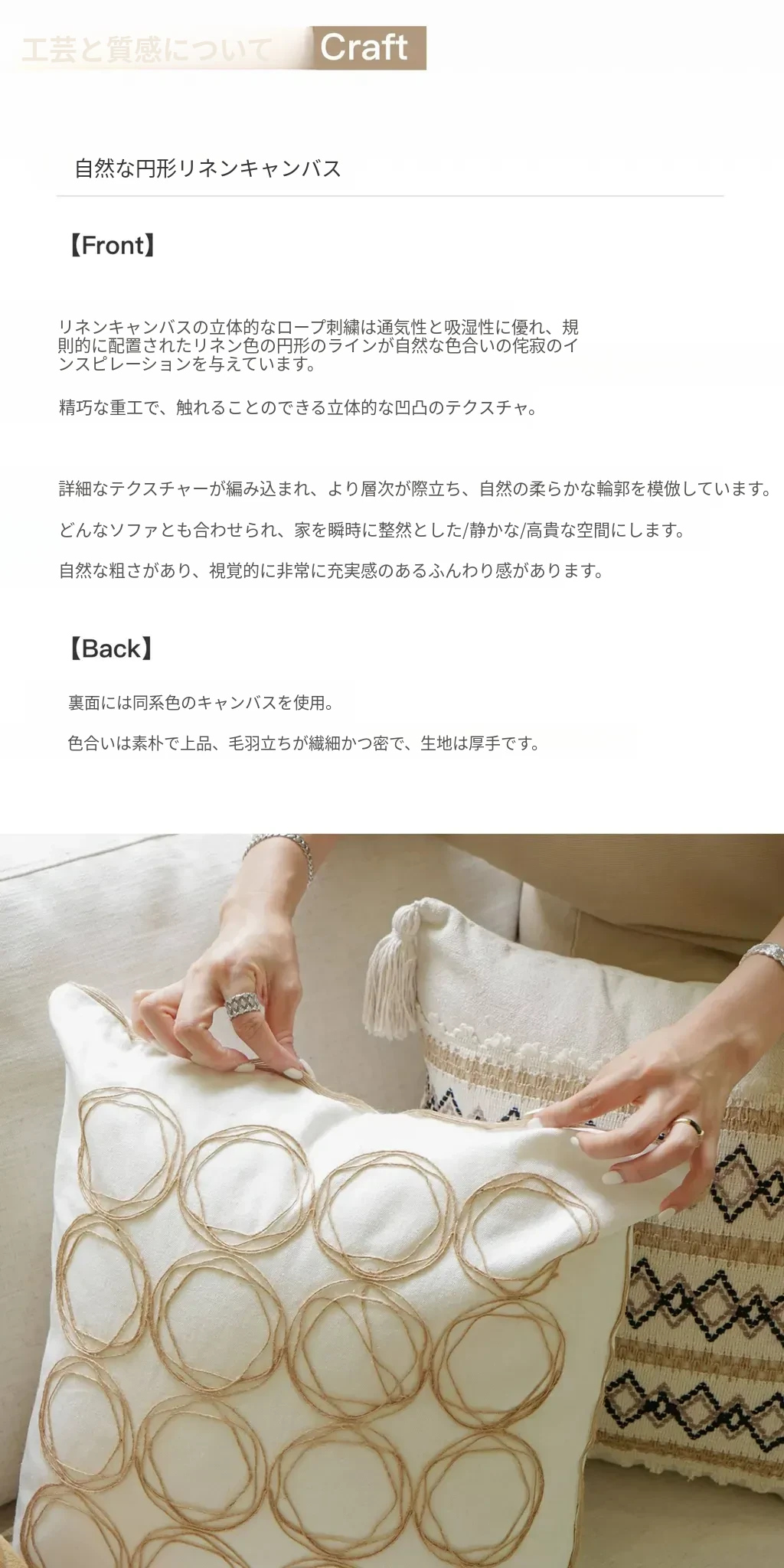 【コットンリネン円環編みクッション】