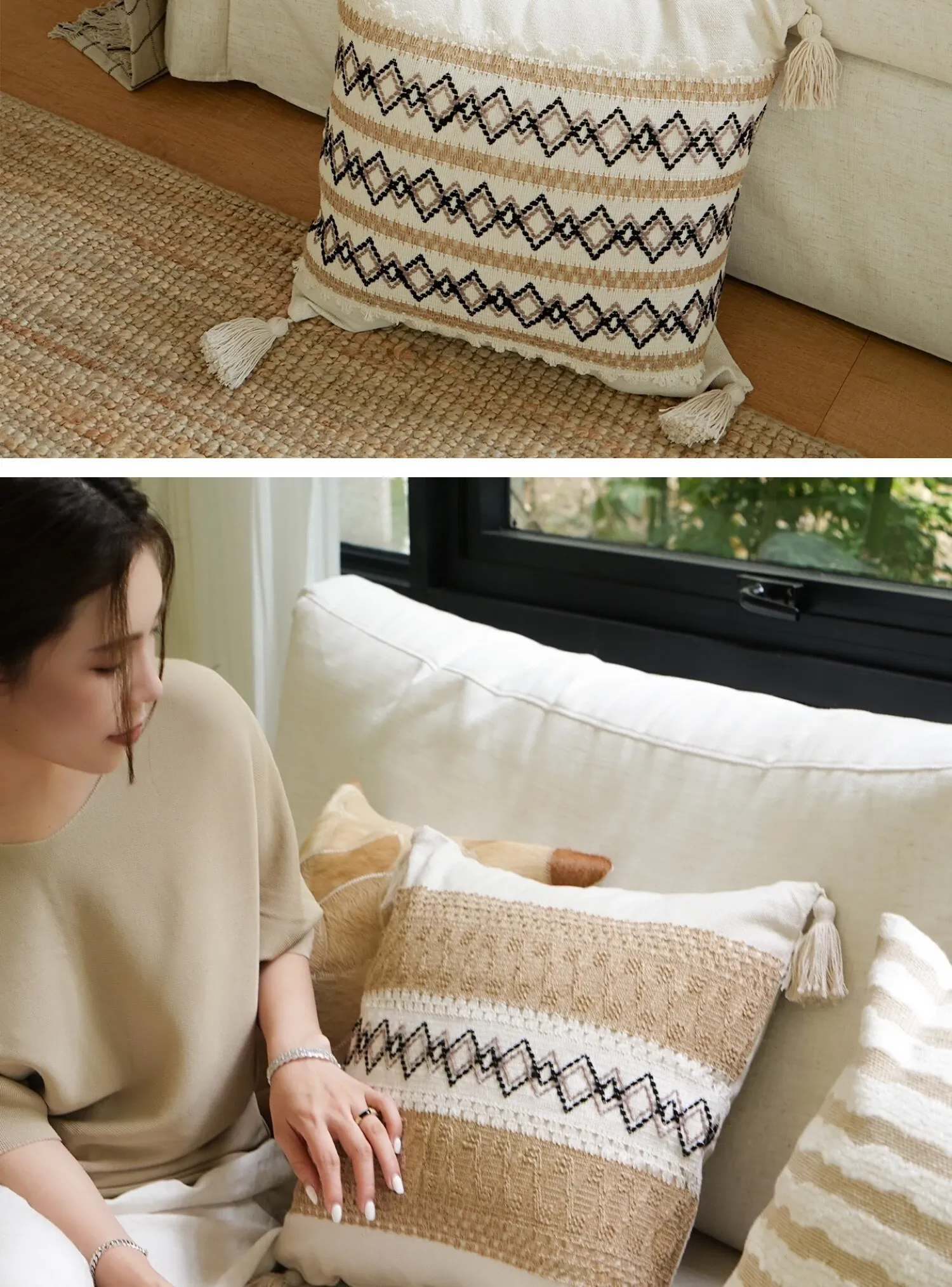 Texdreamの自然風コットンリネンシリーズ ソファクッション 北欧モダンミニマリストスタイル インテリアにぴったりなおしゃれな抱き枕