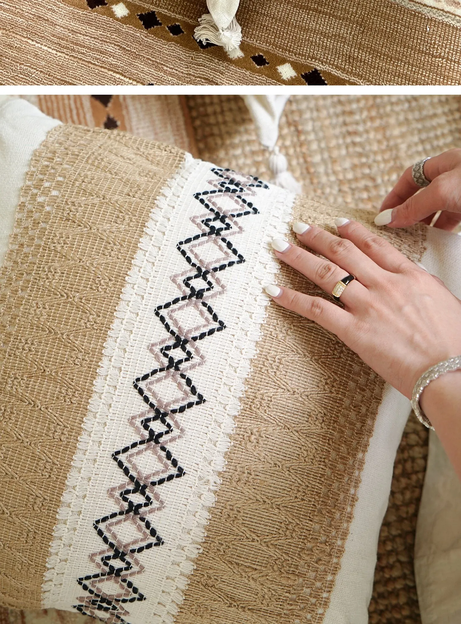 【コットンリネン茶ひし形クッション】