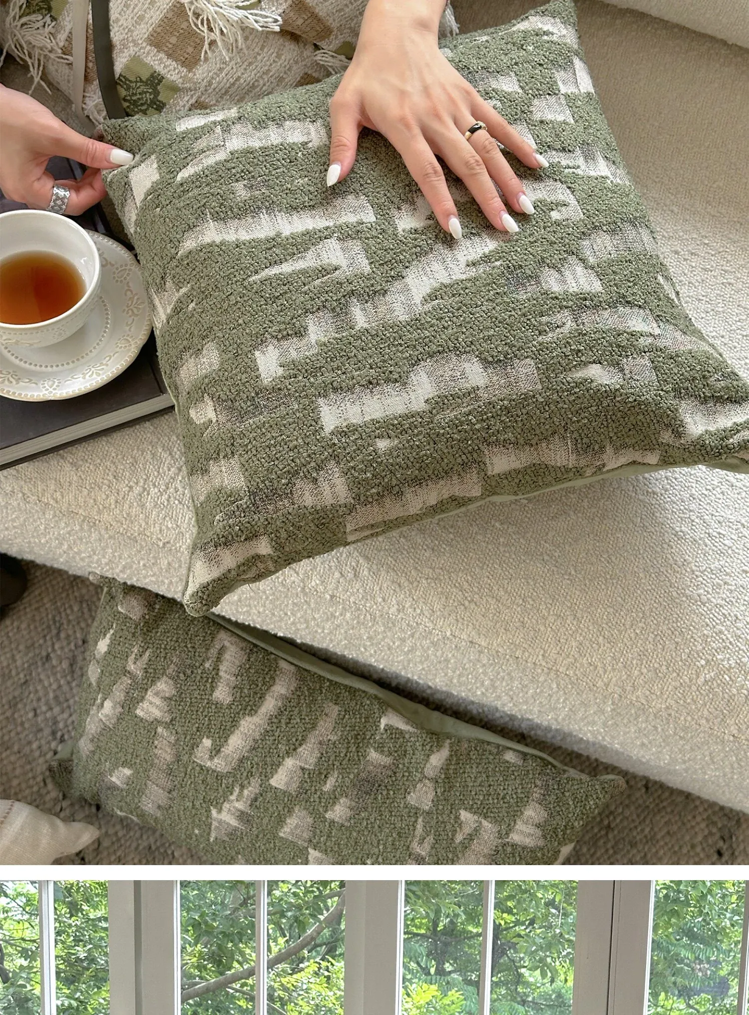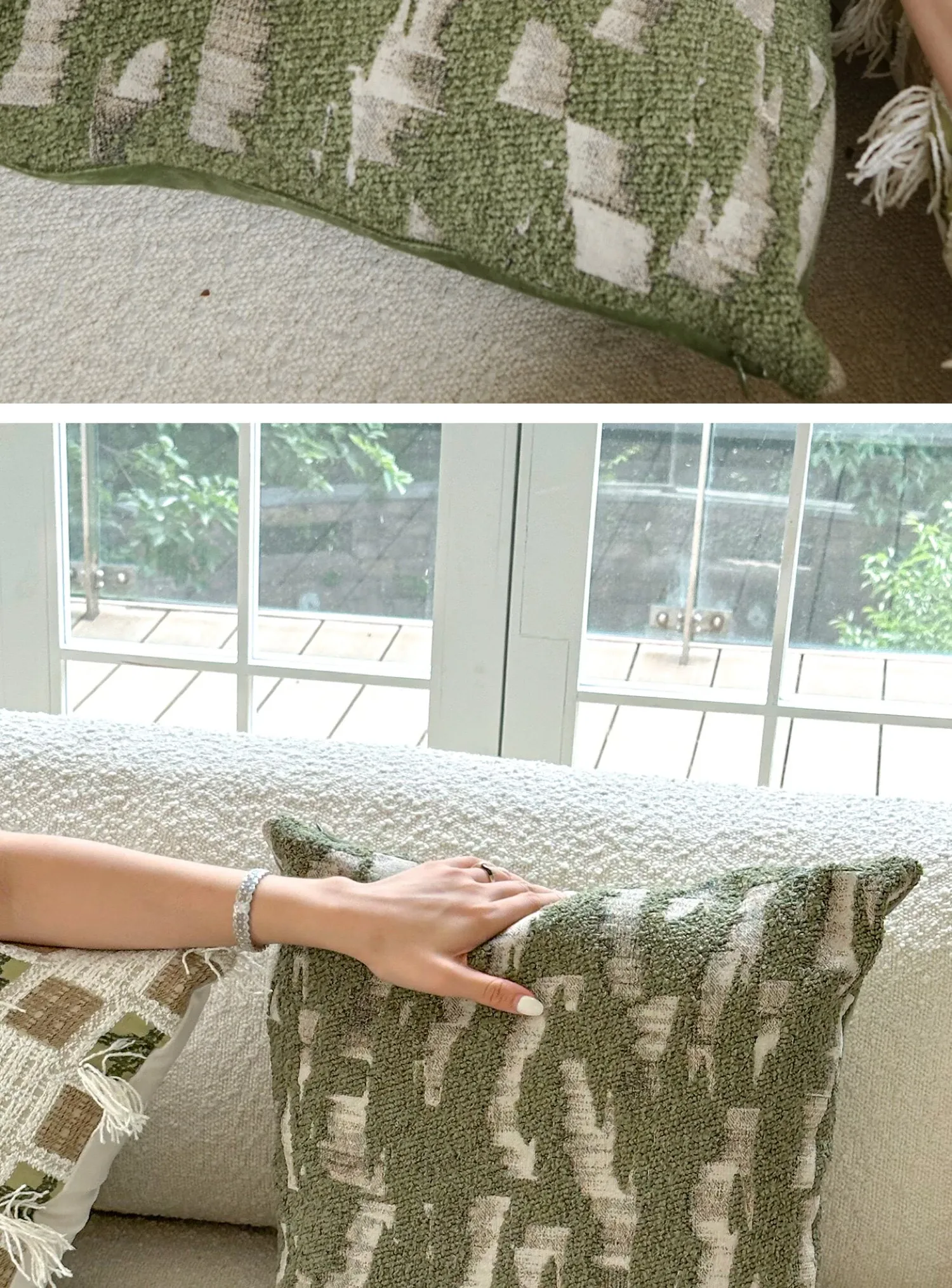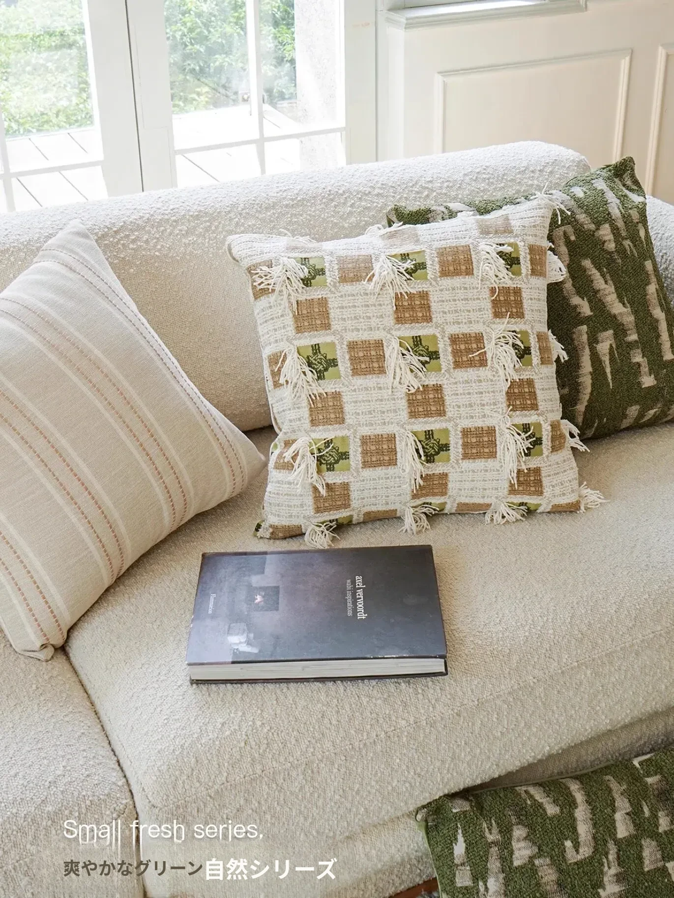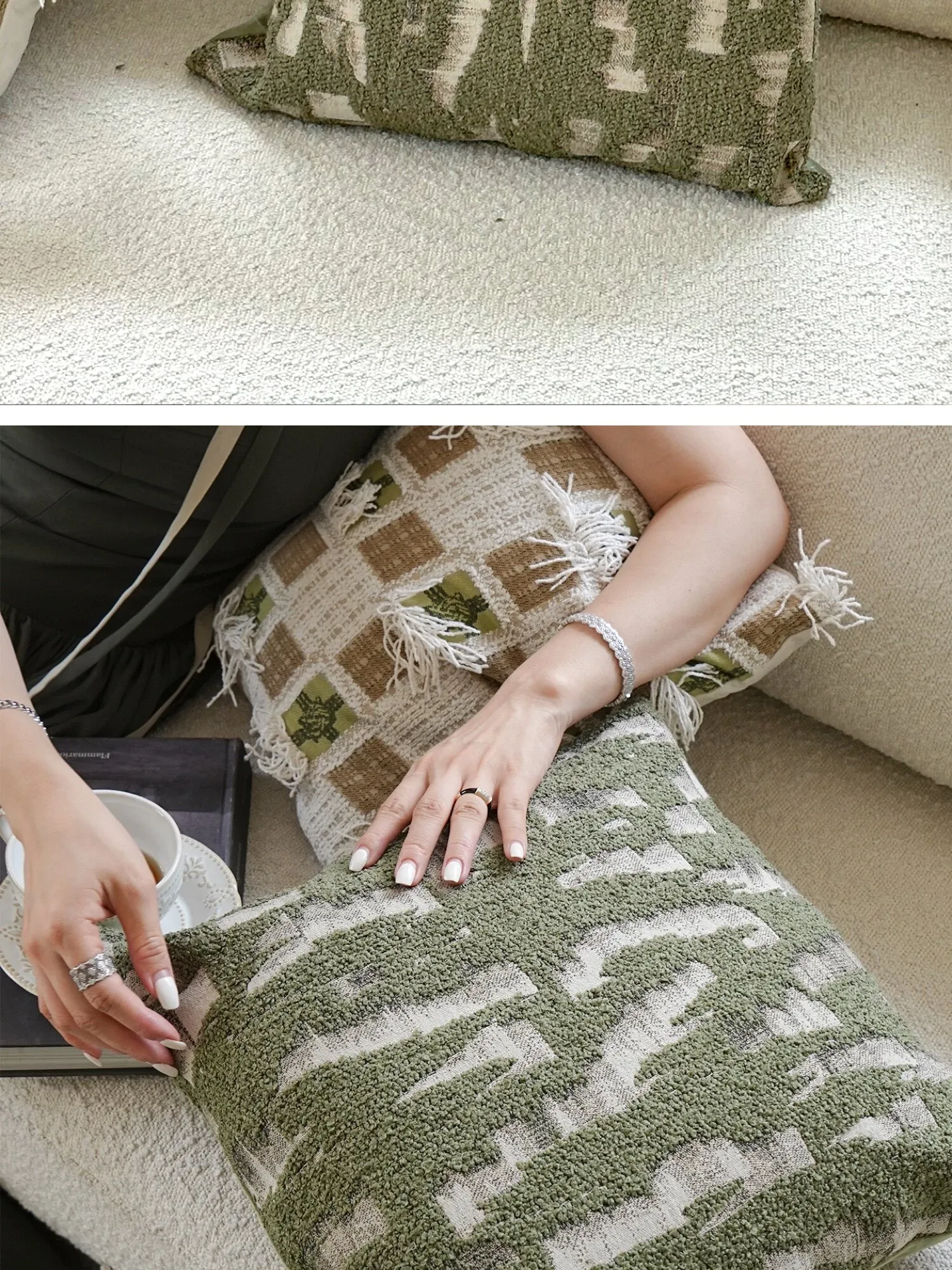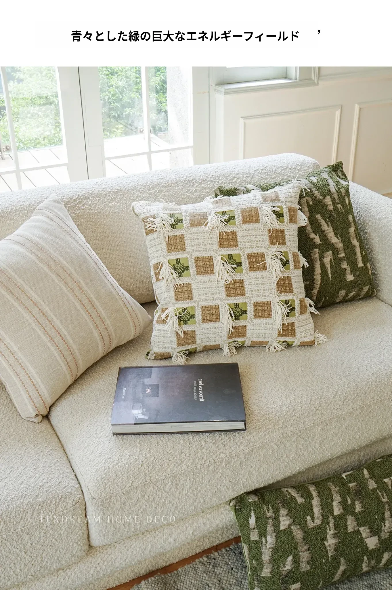 TEXDREAMのナチュラルなグリーン色のフランス風クッション - リビングルームやソファにぴったり!清新なデザインで、心地よい睡眠をサポートする腰枕としても最適です。
