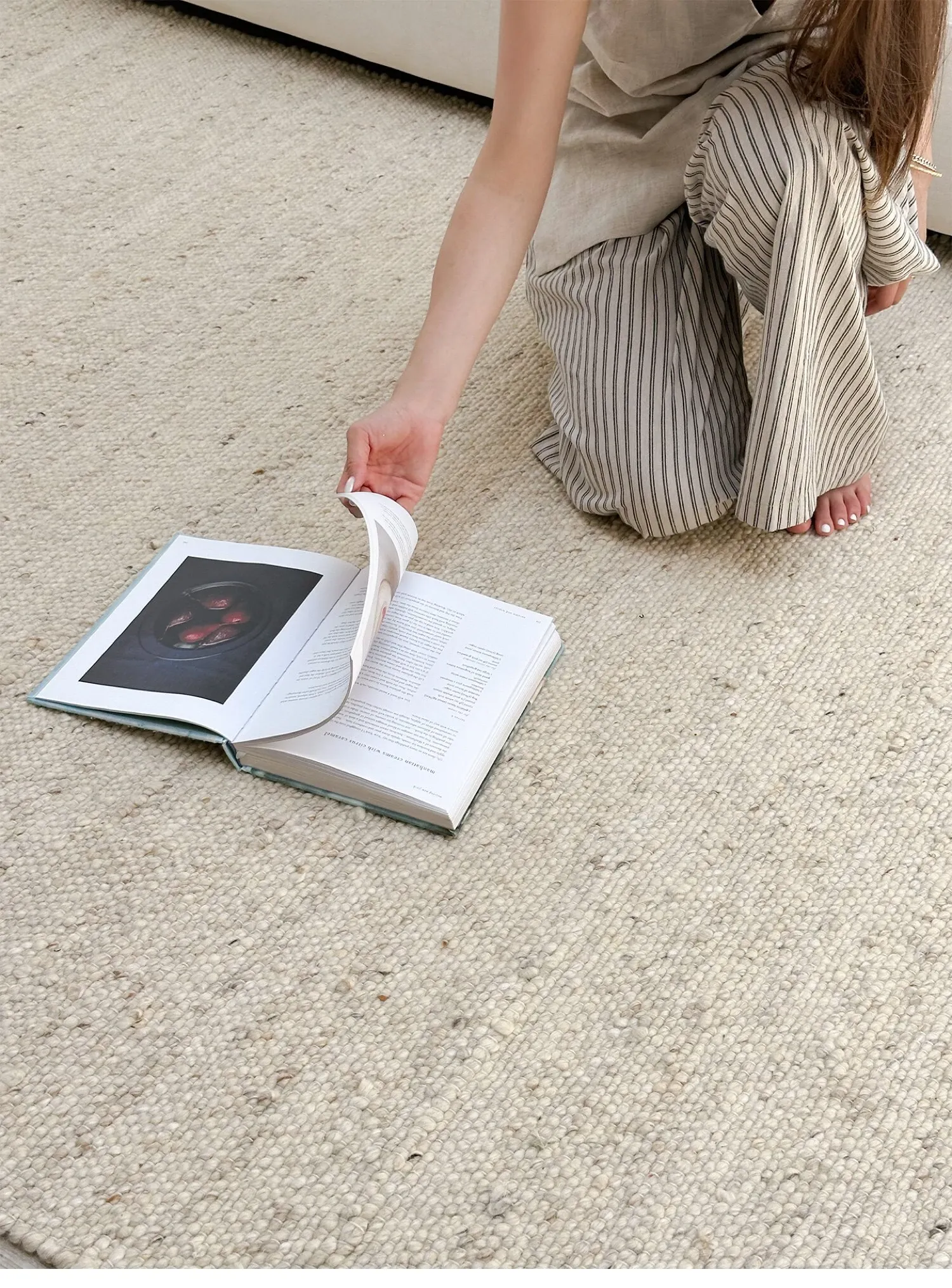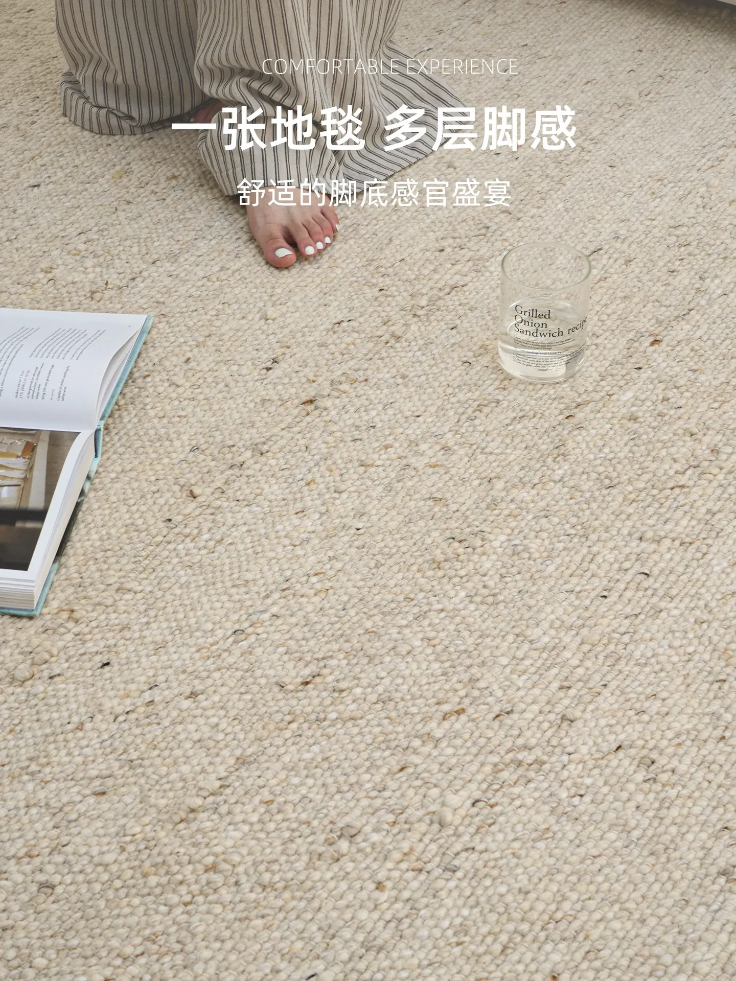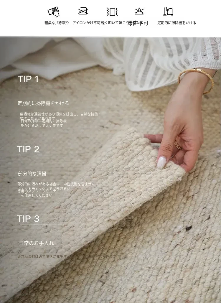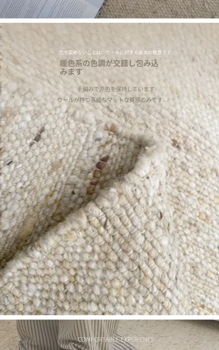 TEXDREAMのスタイリッシュなボールノット無接着ウールラグ - フランス風の高級ベッドルーム&リビング用大判カーペット、ベッドサイドマットとしても最適!柔らかさとデザインが融合した魅力的な一品です。