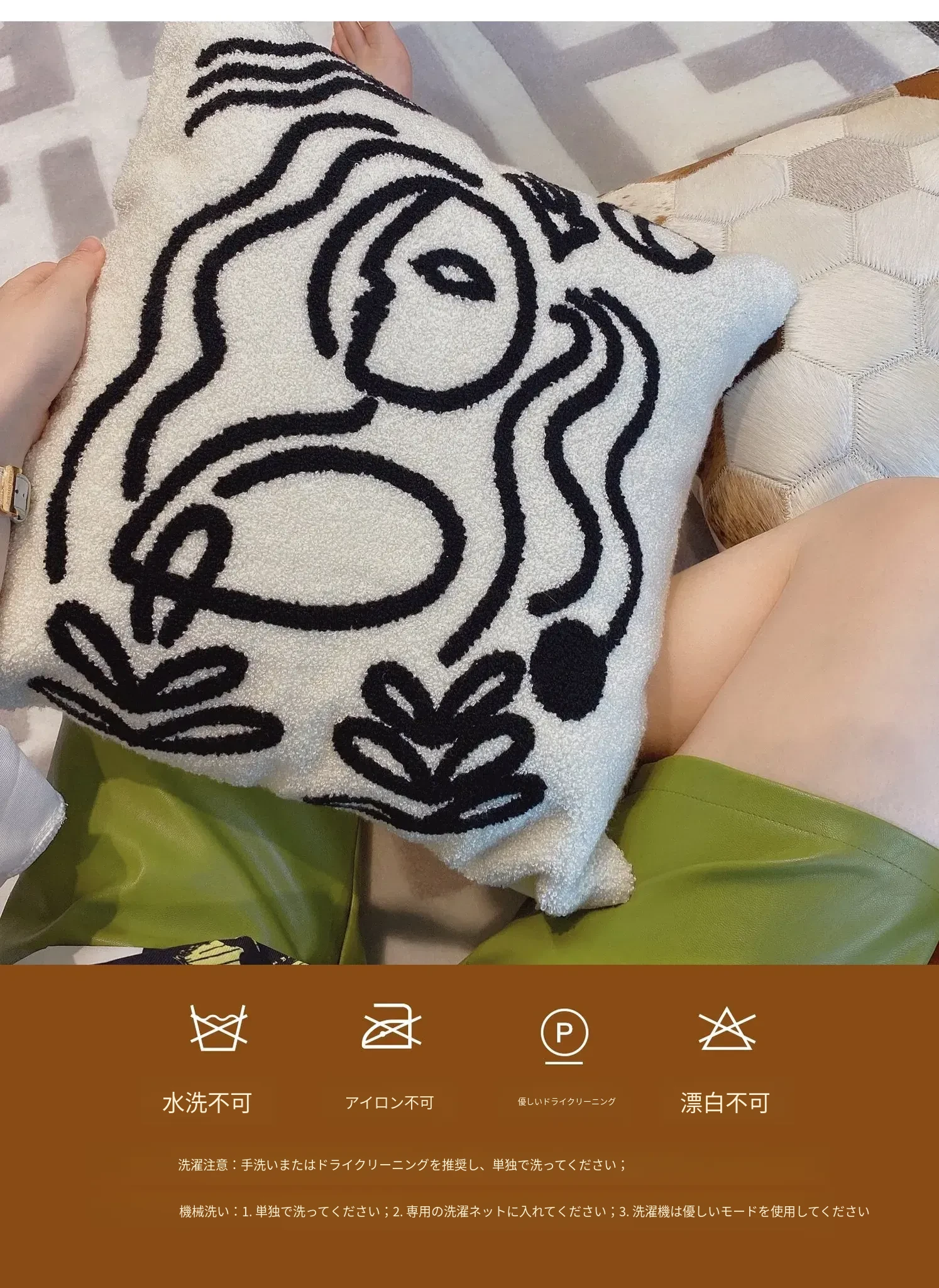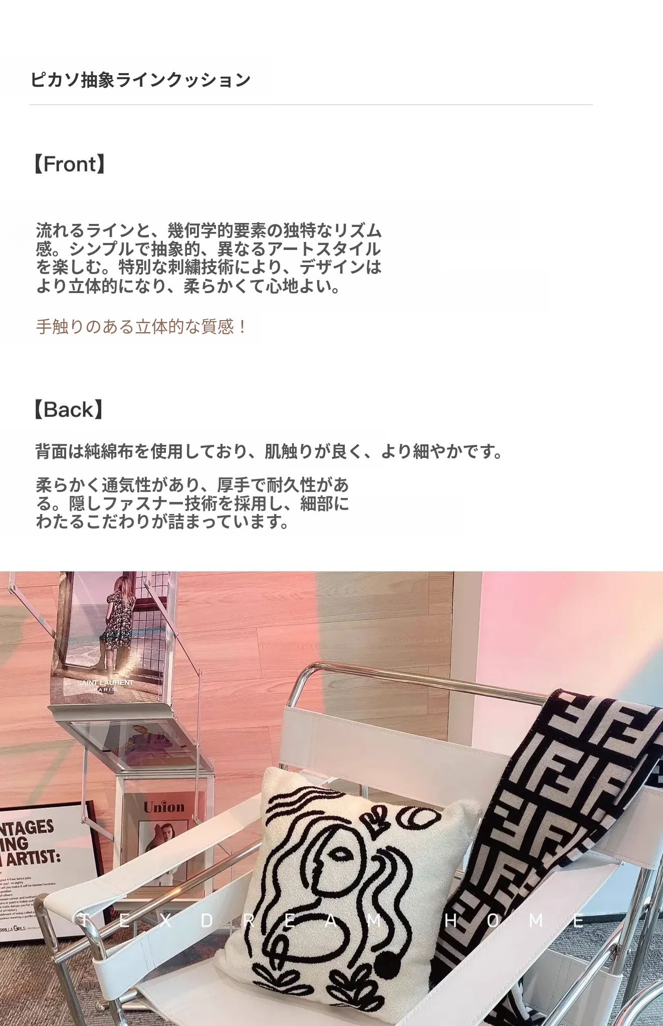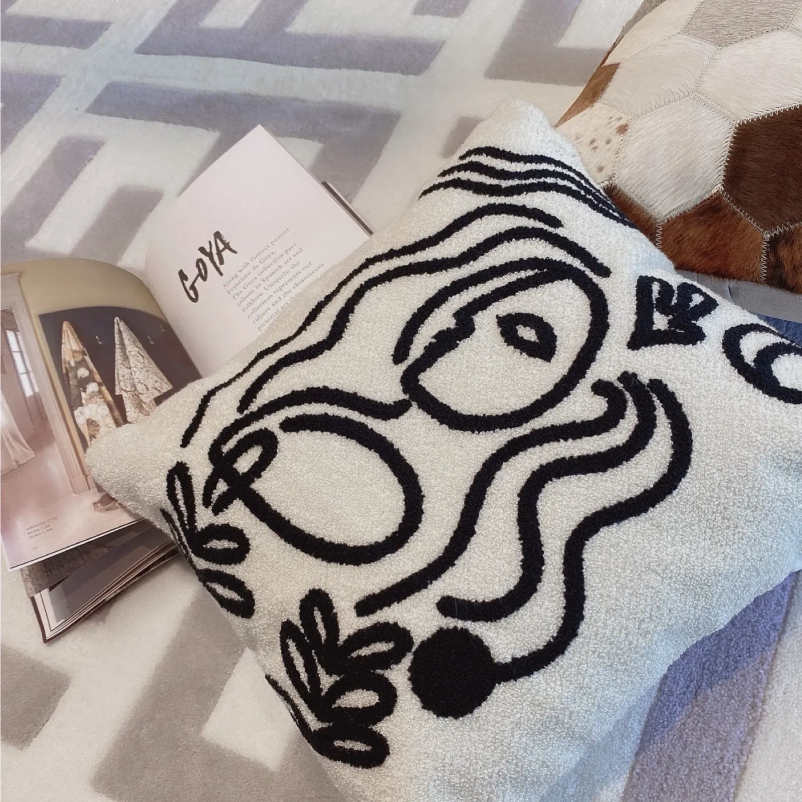 Texdreamのアティテュード ピカソ立体刺繍クッション 牛革ソファ用 リビングスタイルのミニマリストクッションで、居心地の良い空間を演出!