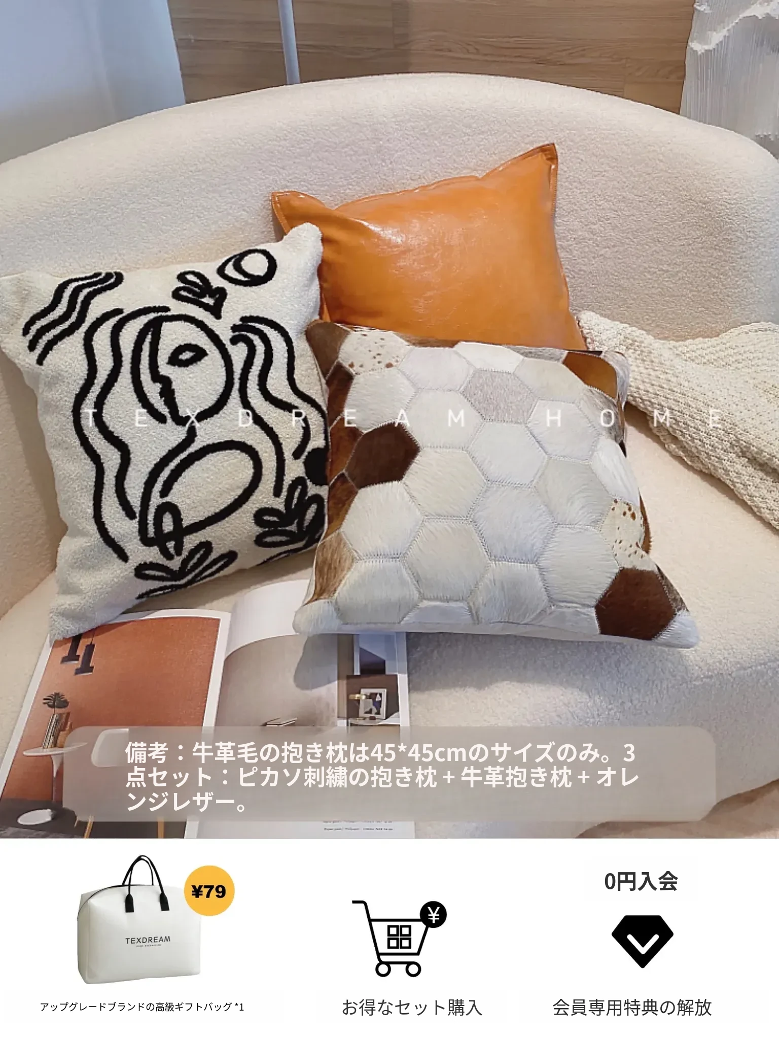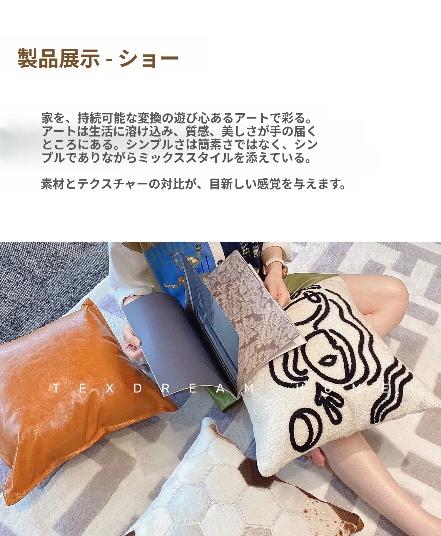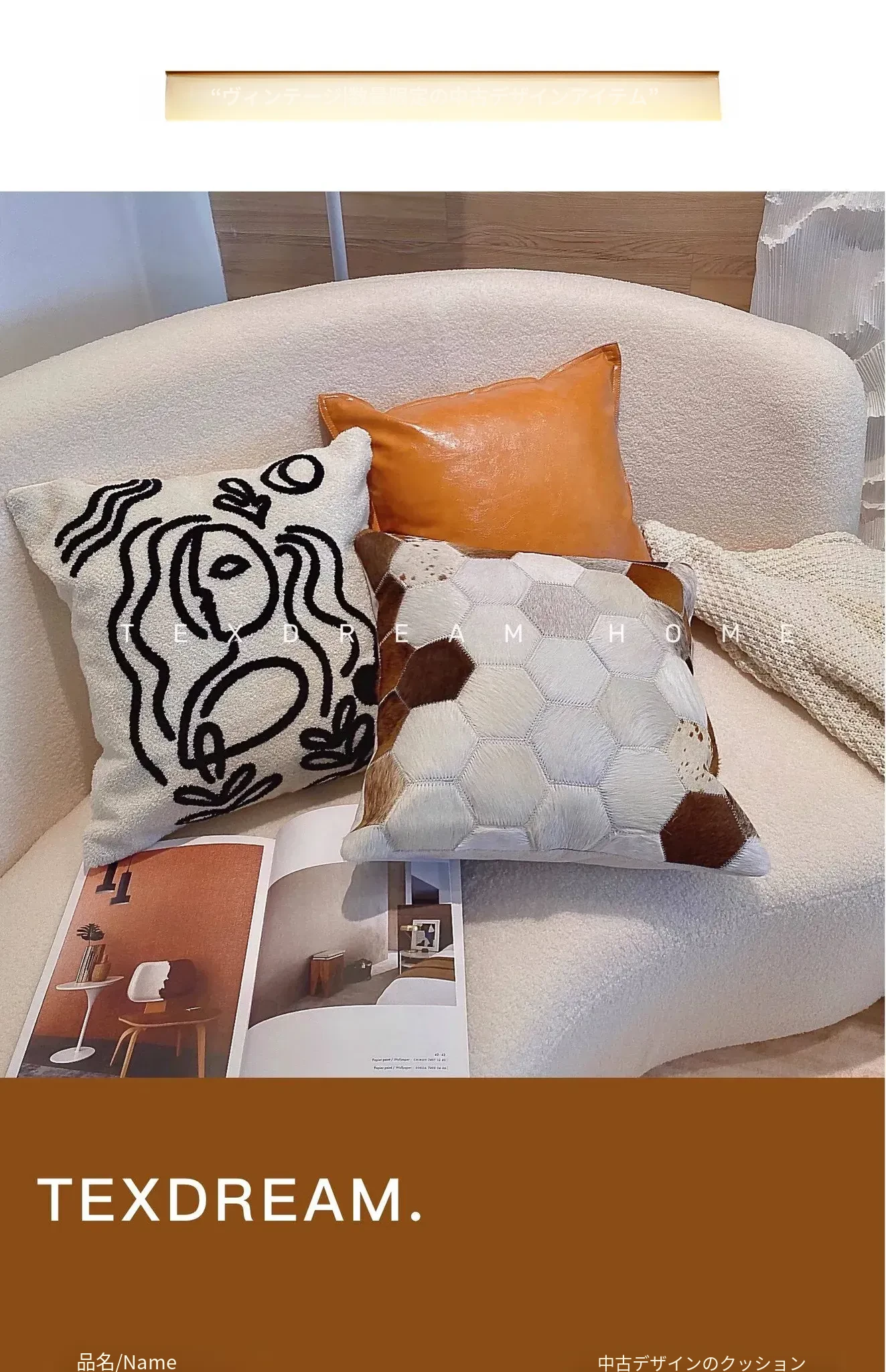 Texdreamのアティテュード ピカソ立体刺繍クッション 牛革ソファ用 リビングスタイルのミニマリストクッションで、居心地の良い空間を演出!