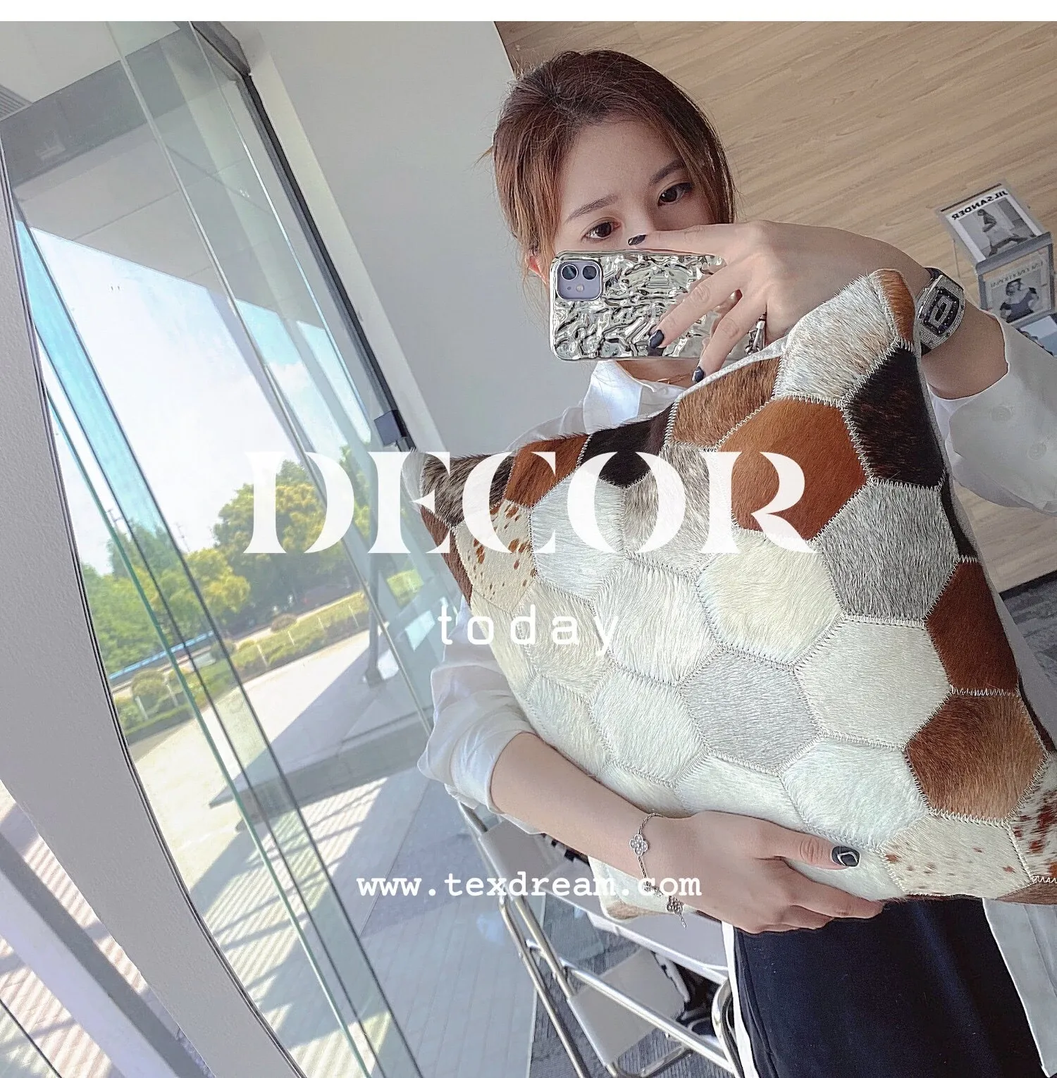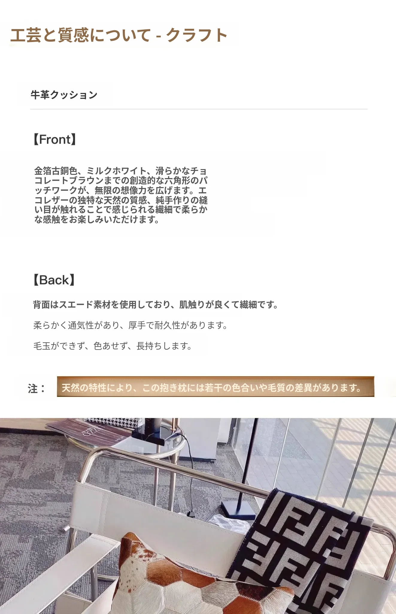 【45*45cm牛革-ブラウン】