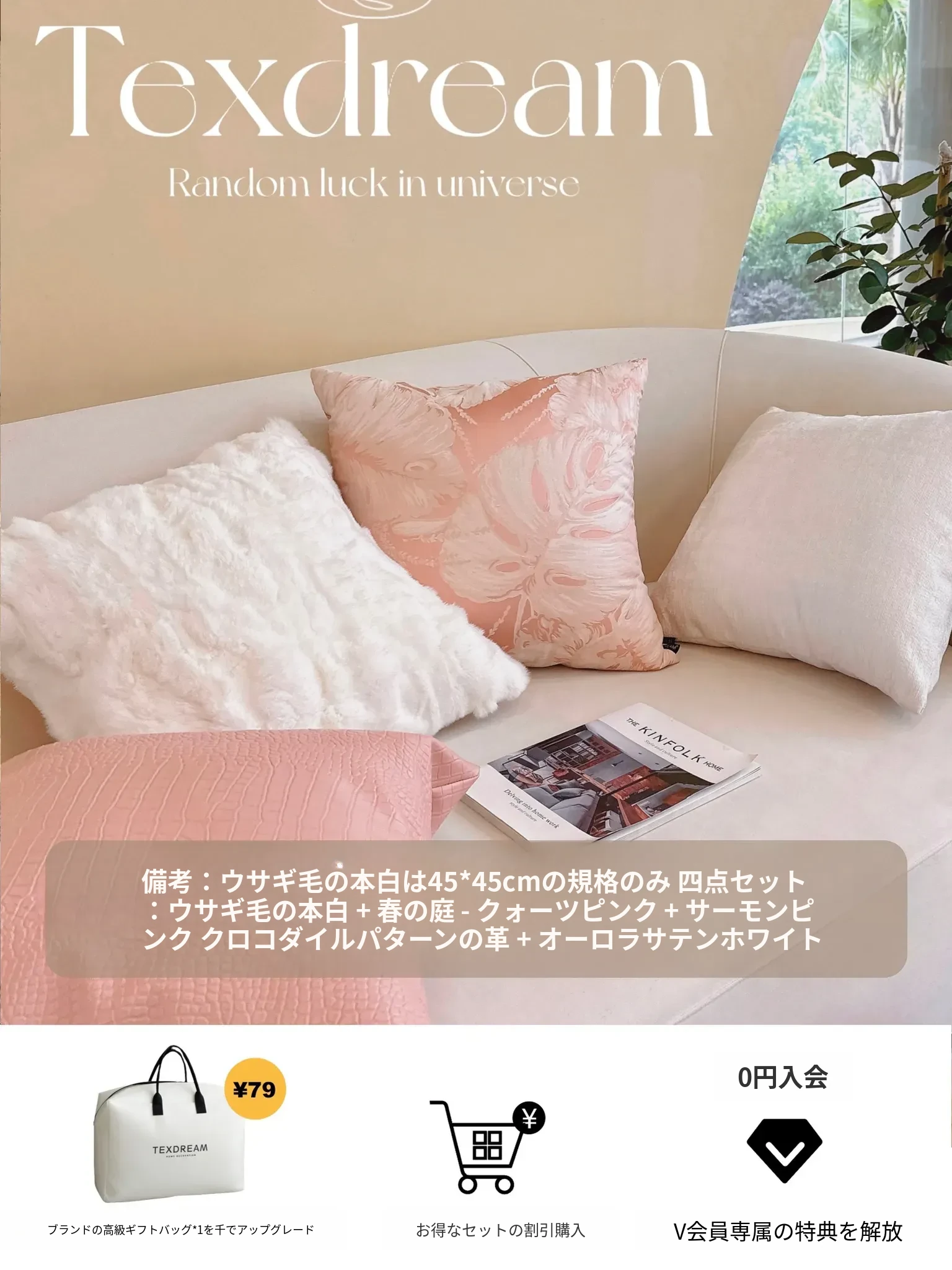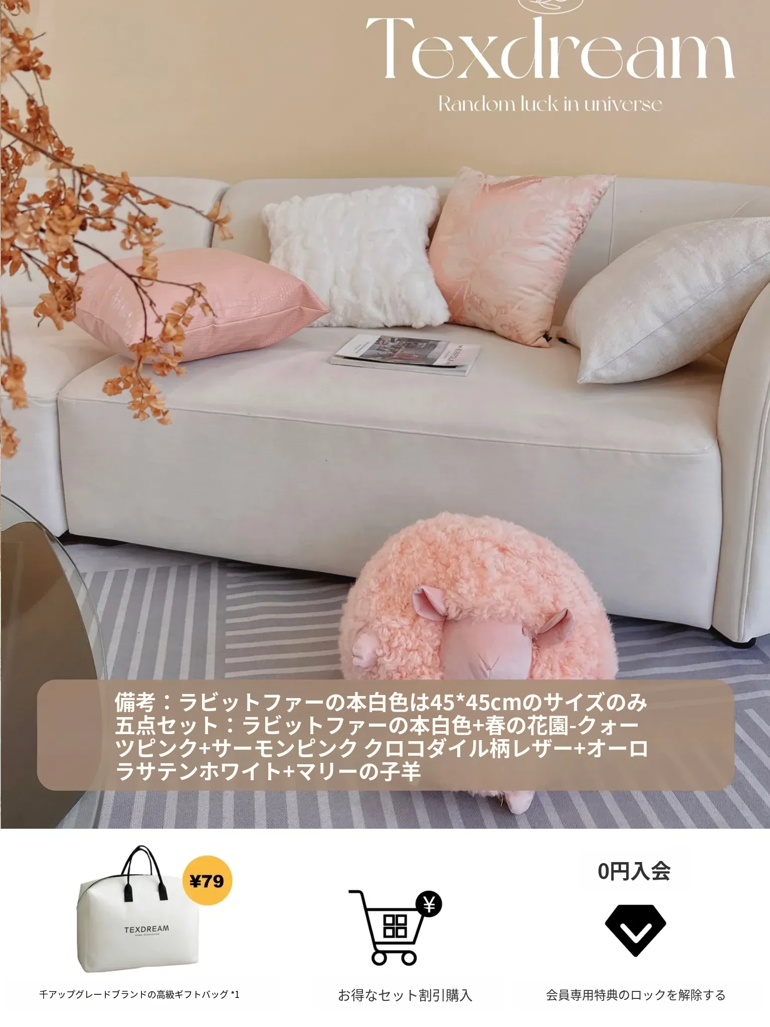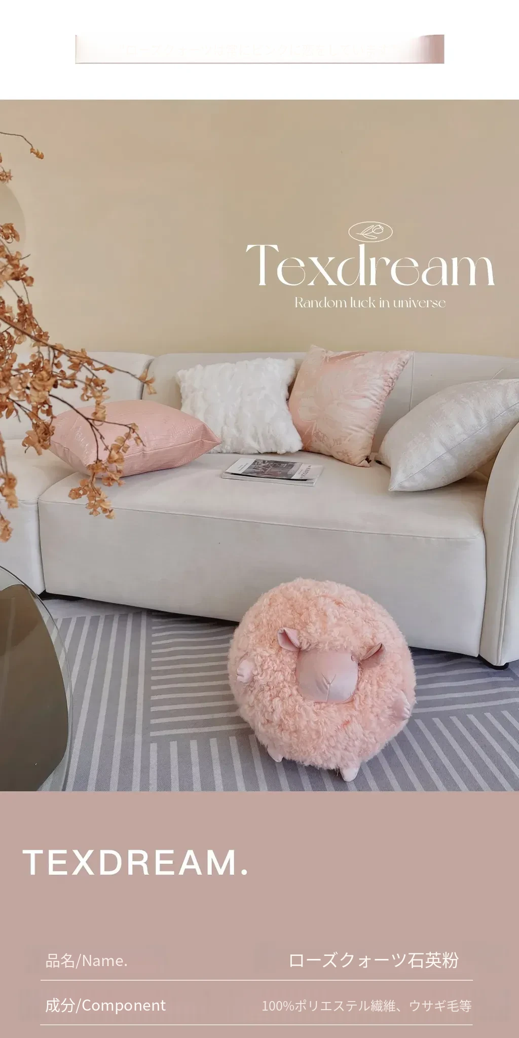 【クォーツピンク5点セット | 4つのクッション + 小羊】