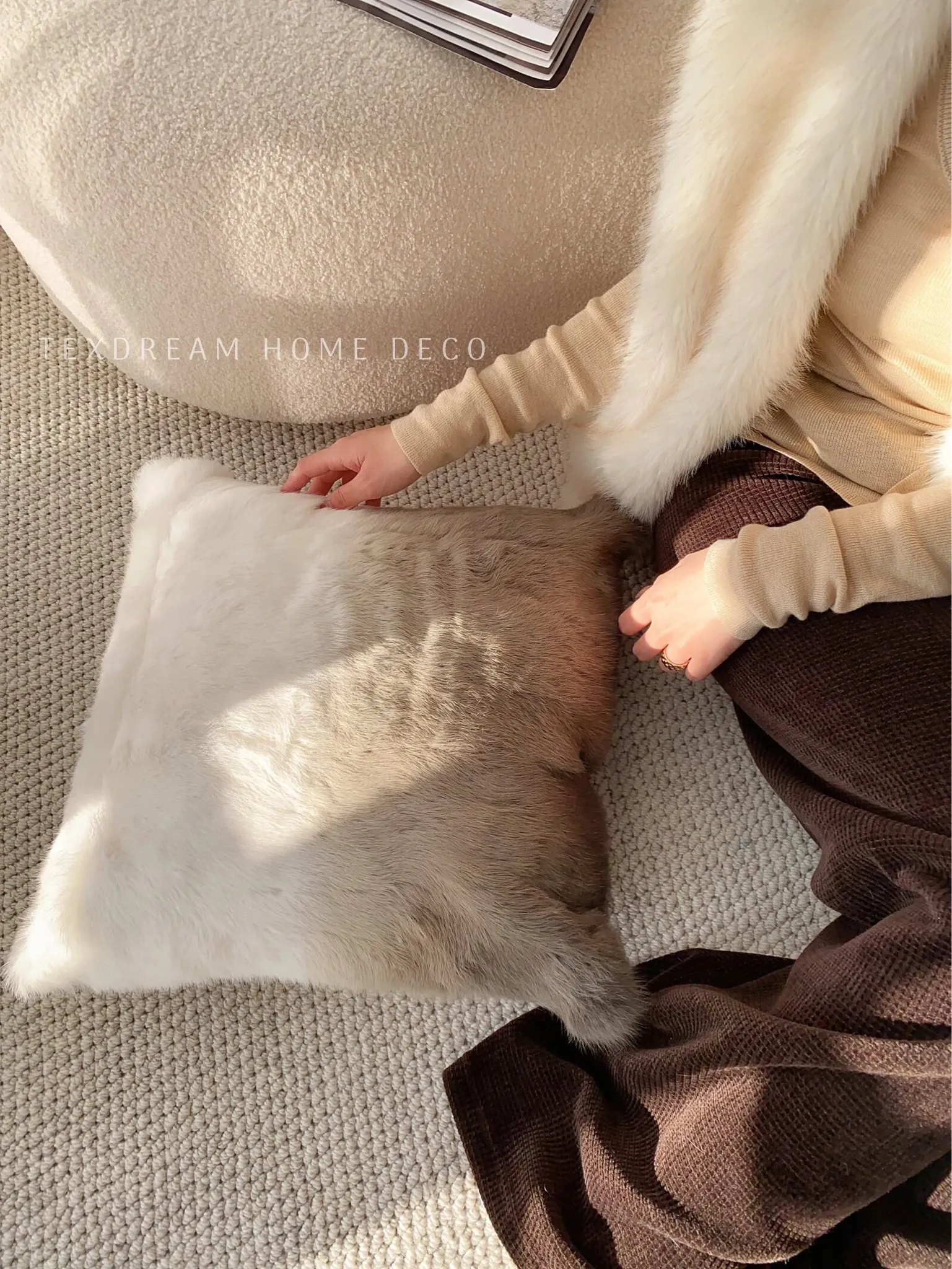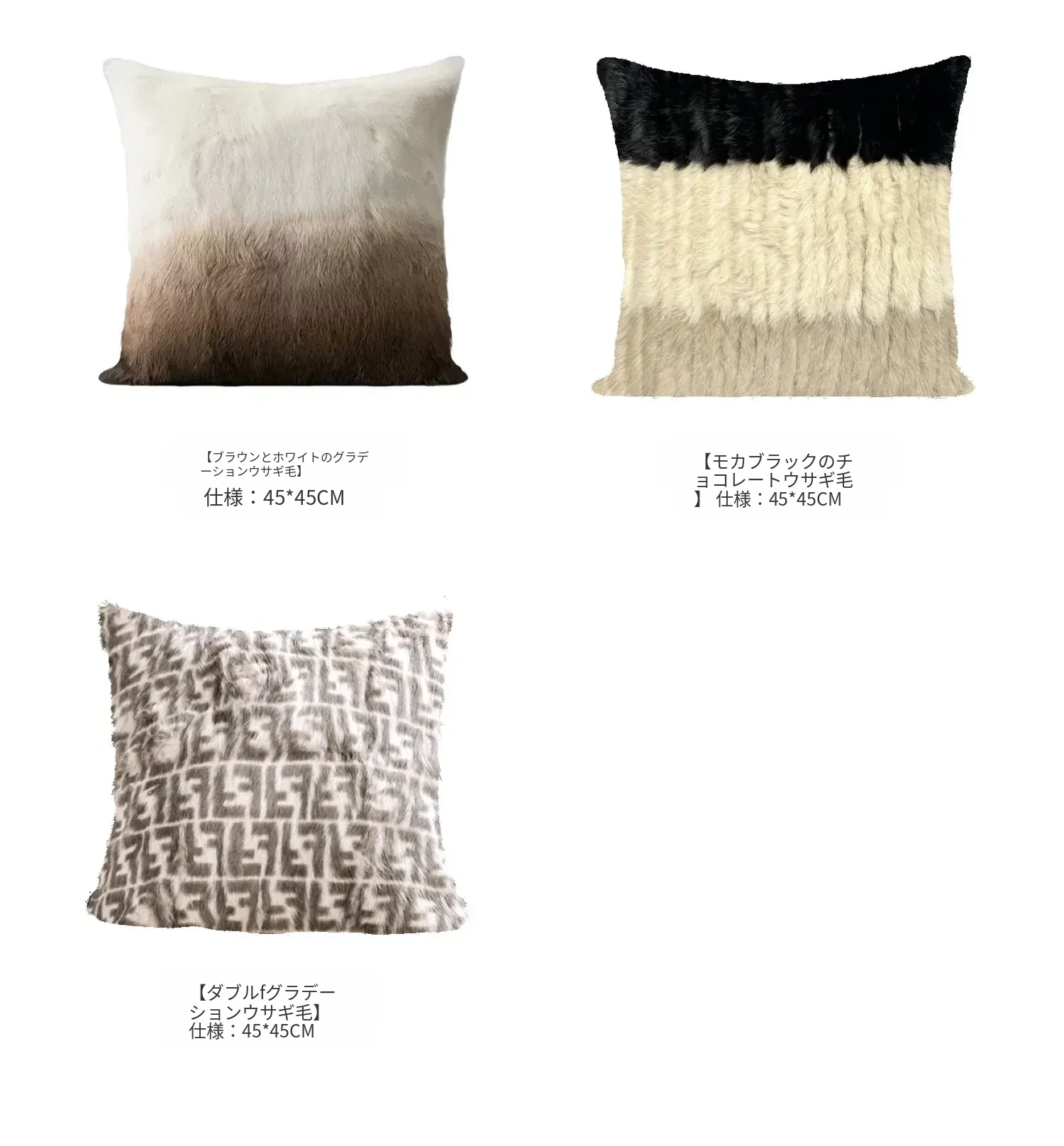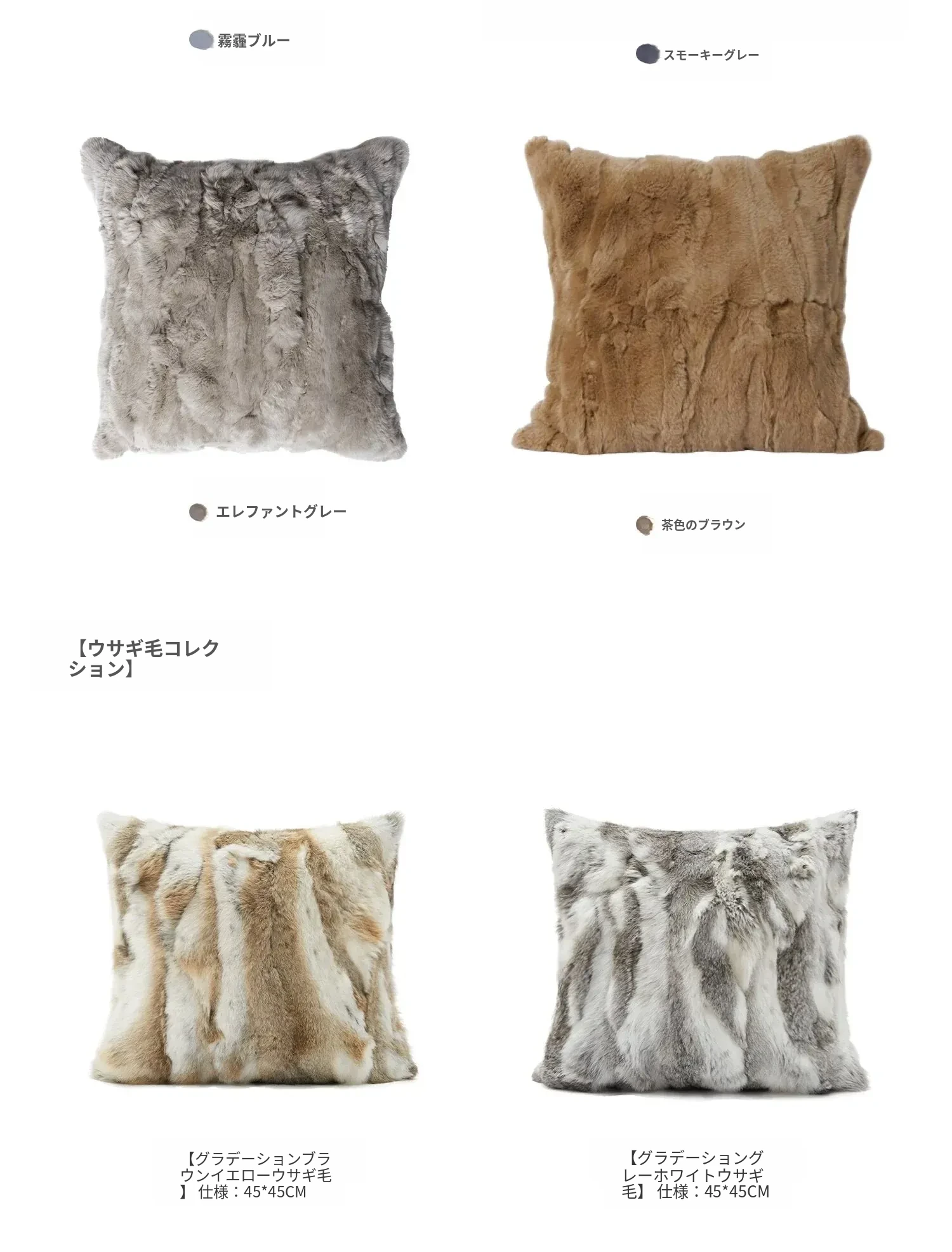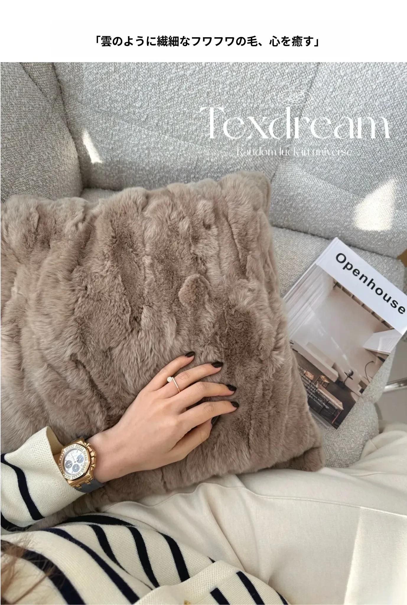 Texdreamのスタイル うさぎ毛シリーズ 本革クッションカバー インスタ映えする軽やかでラグジュアリーなモダンリビングソファ用枕カバー