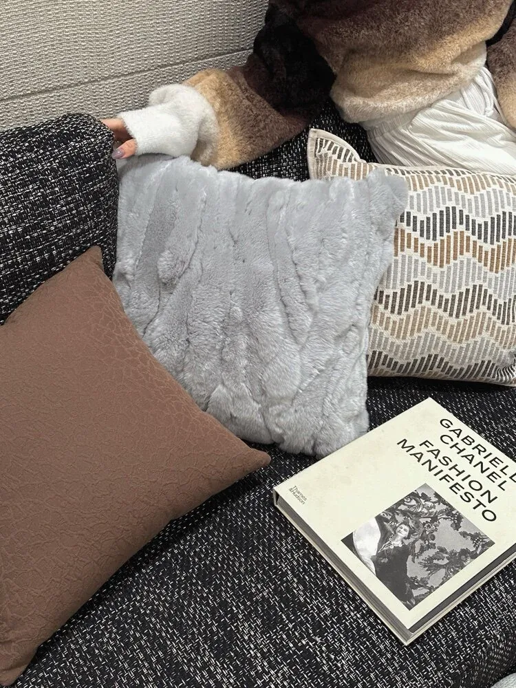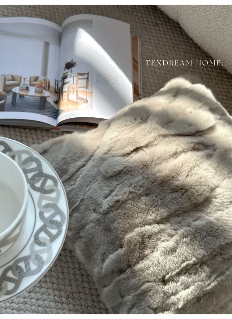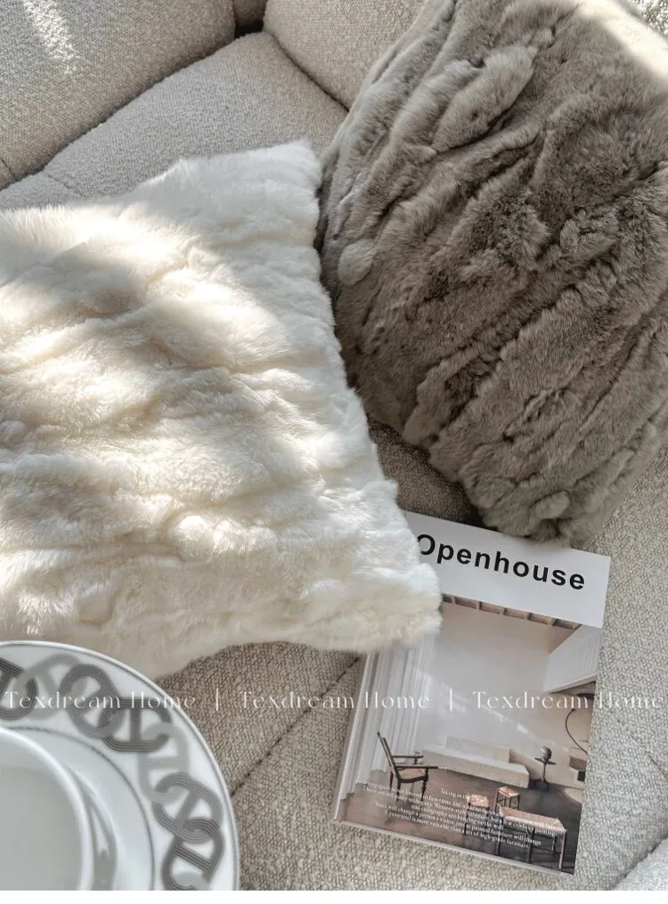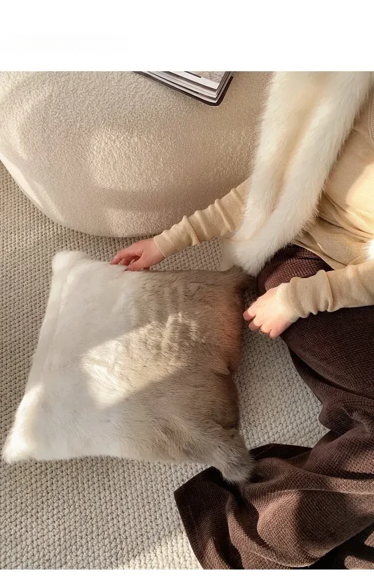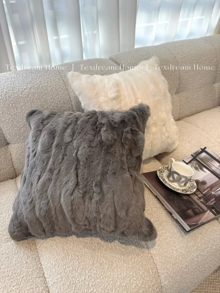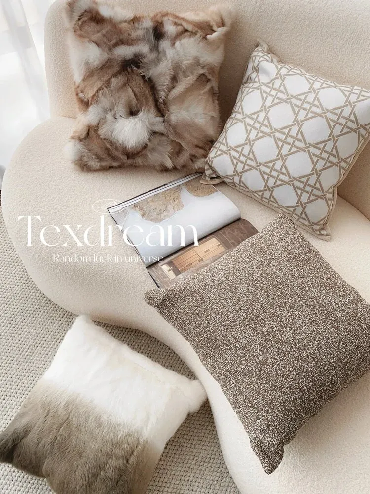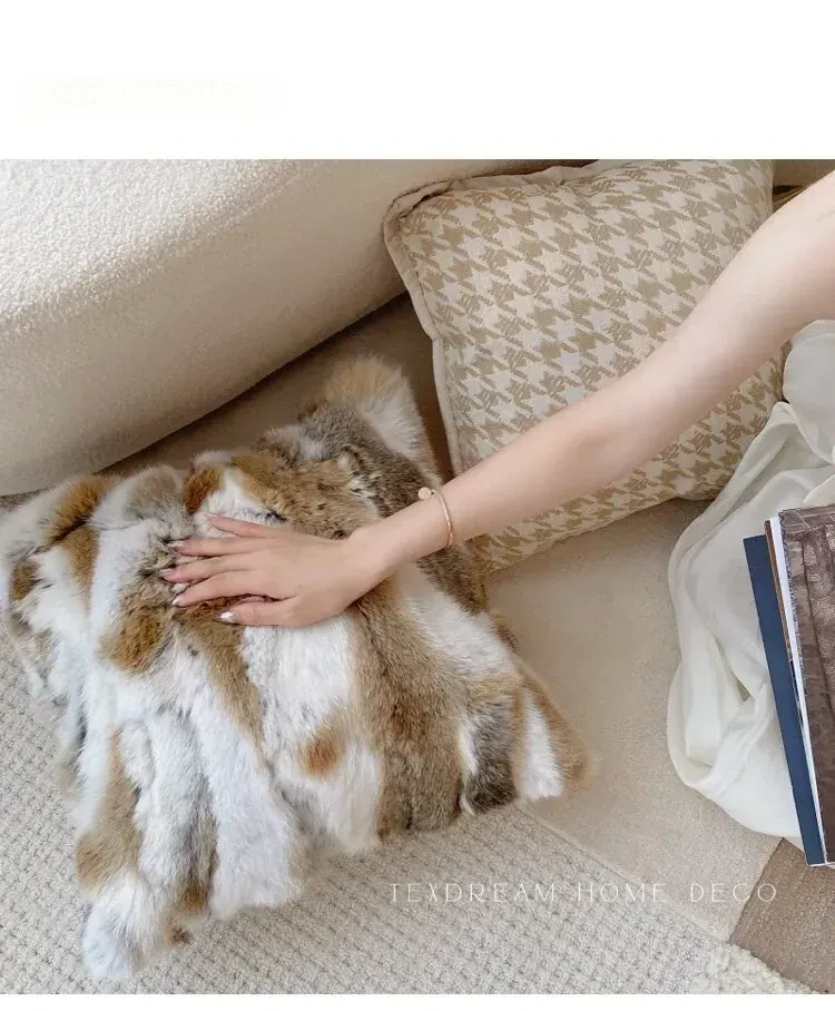Texdreamのスタイル うさぎ毛シリーズ 本革クッションカバー インスタ映えする軽やかでラグジュアリーなモダンリビングソファ用枕カバー