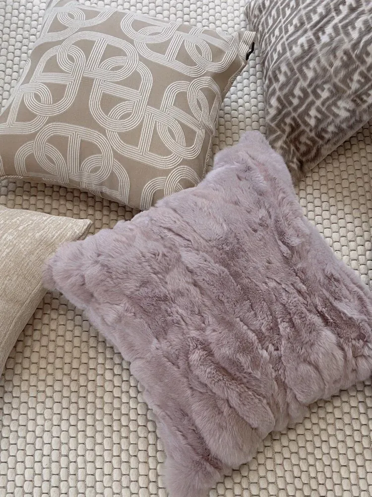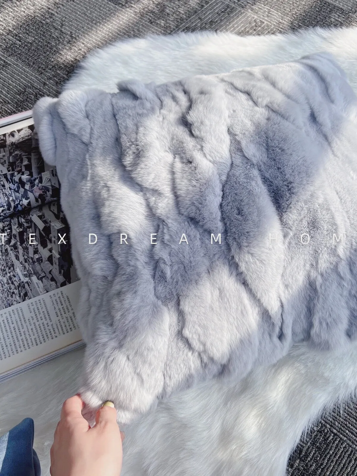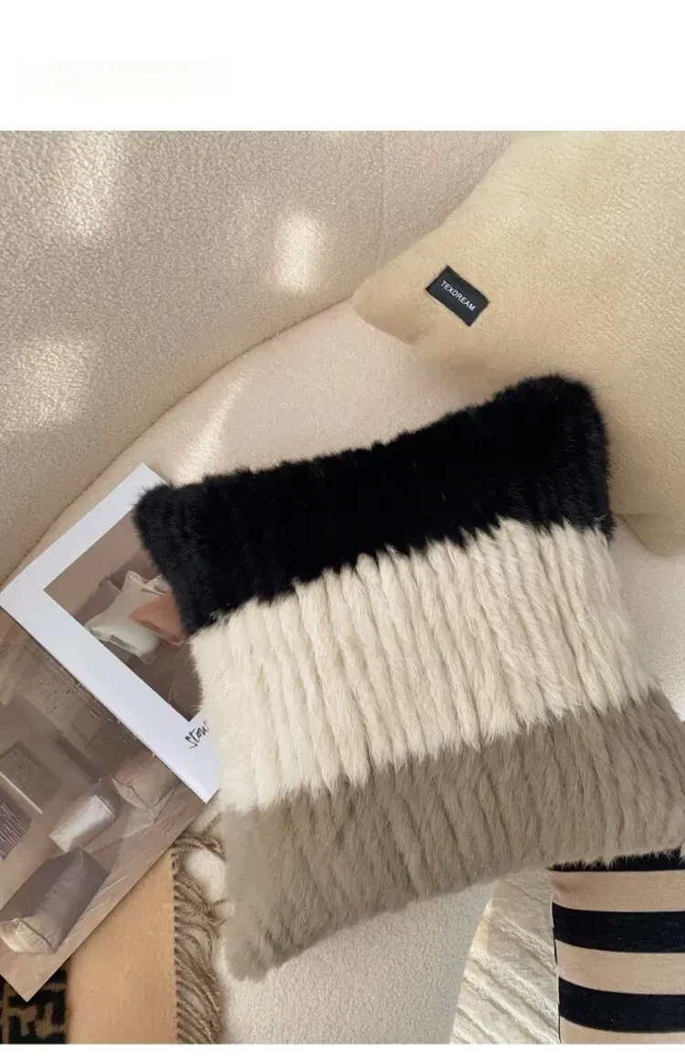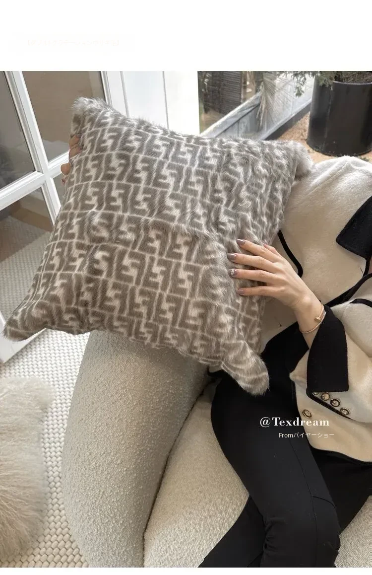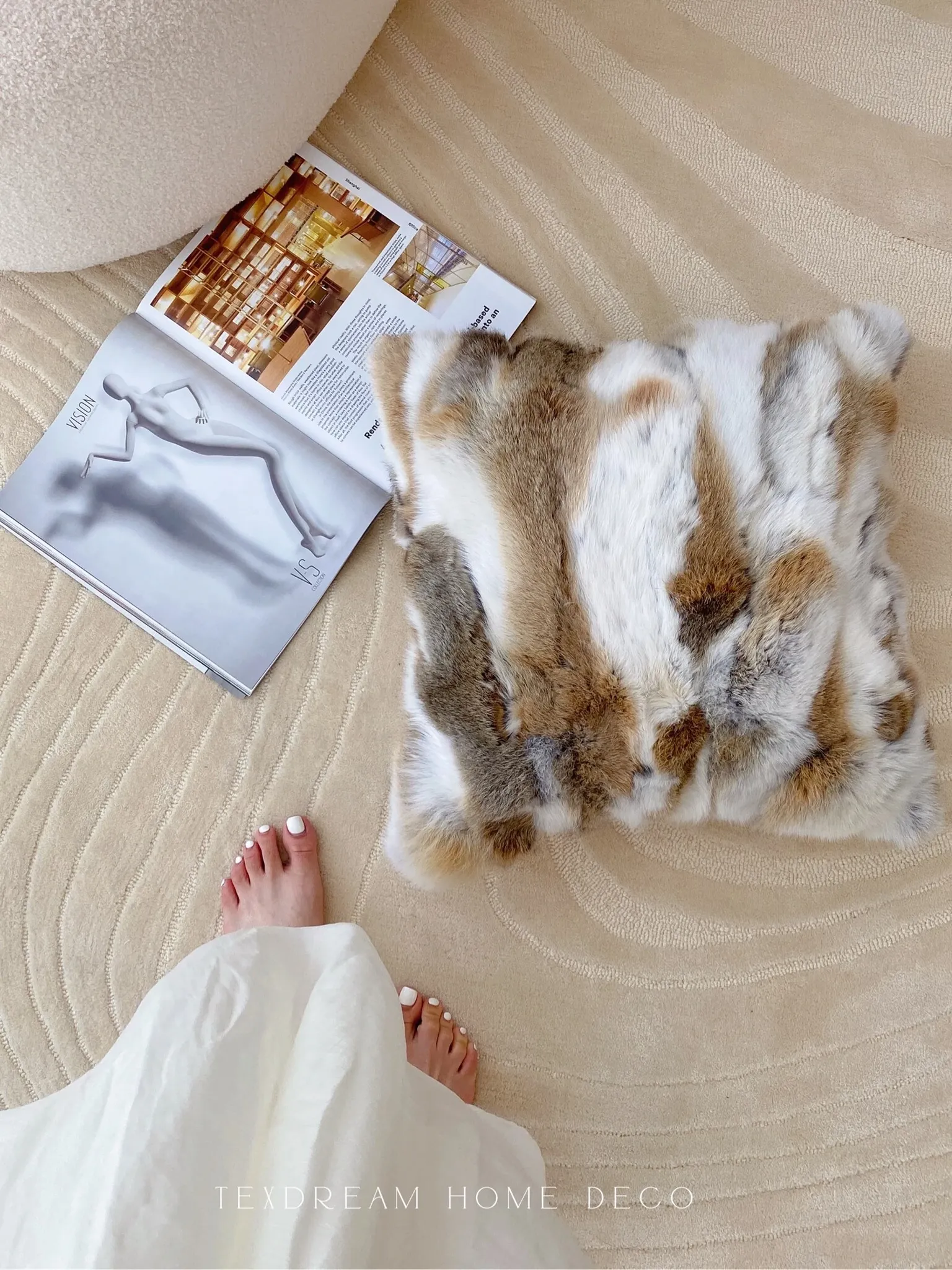Texdreamのスタイル うさぎ毛シリーズ 本革クッションカバー インスタ映えする軽やかでラグジュアリーなモダンリビングソファ用枕カバー