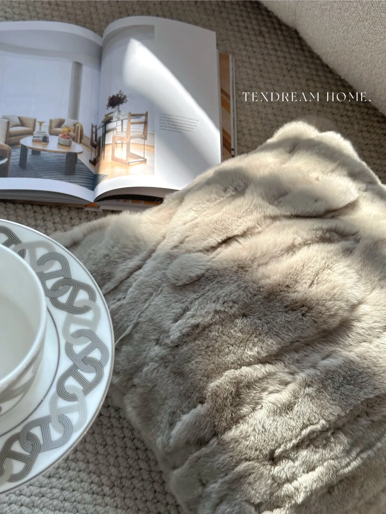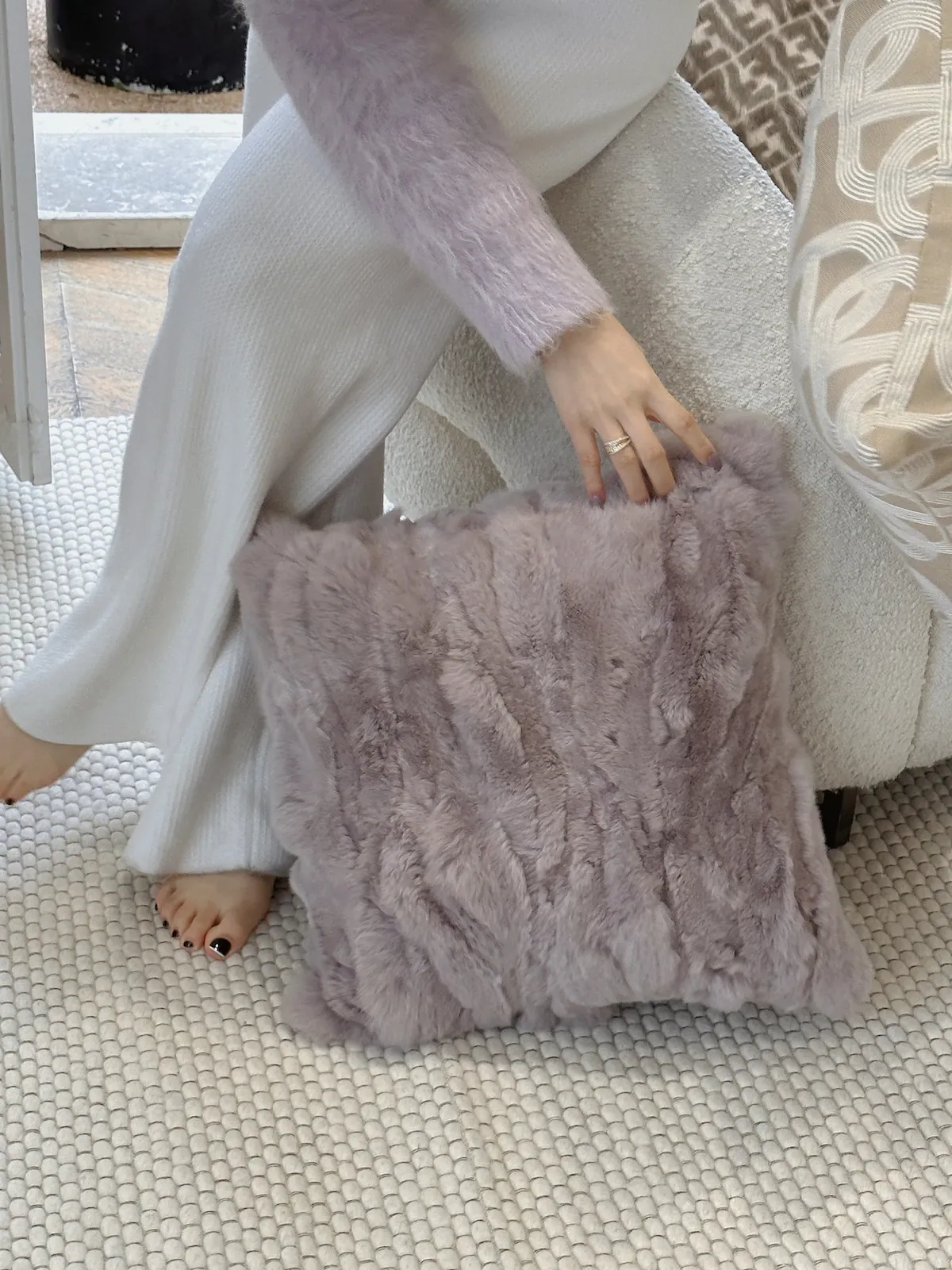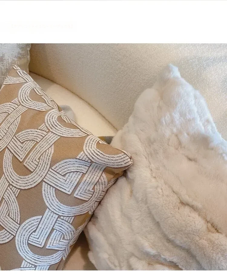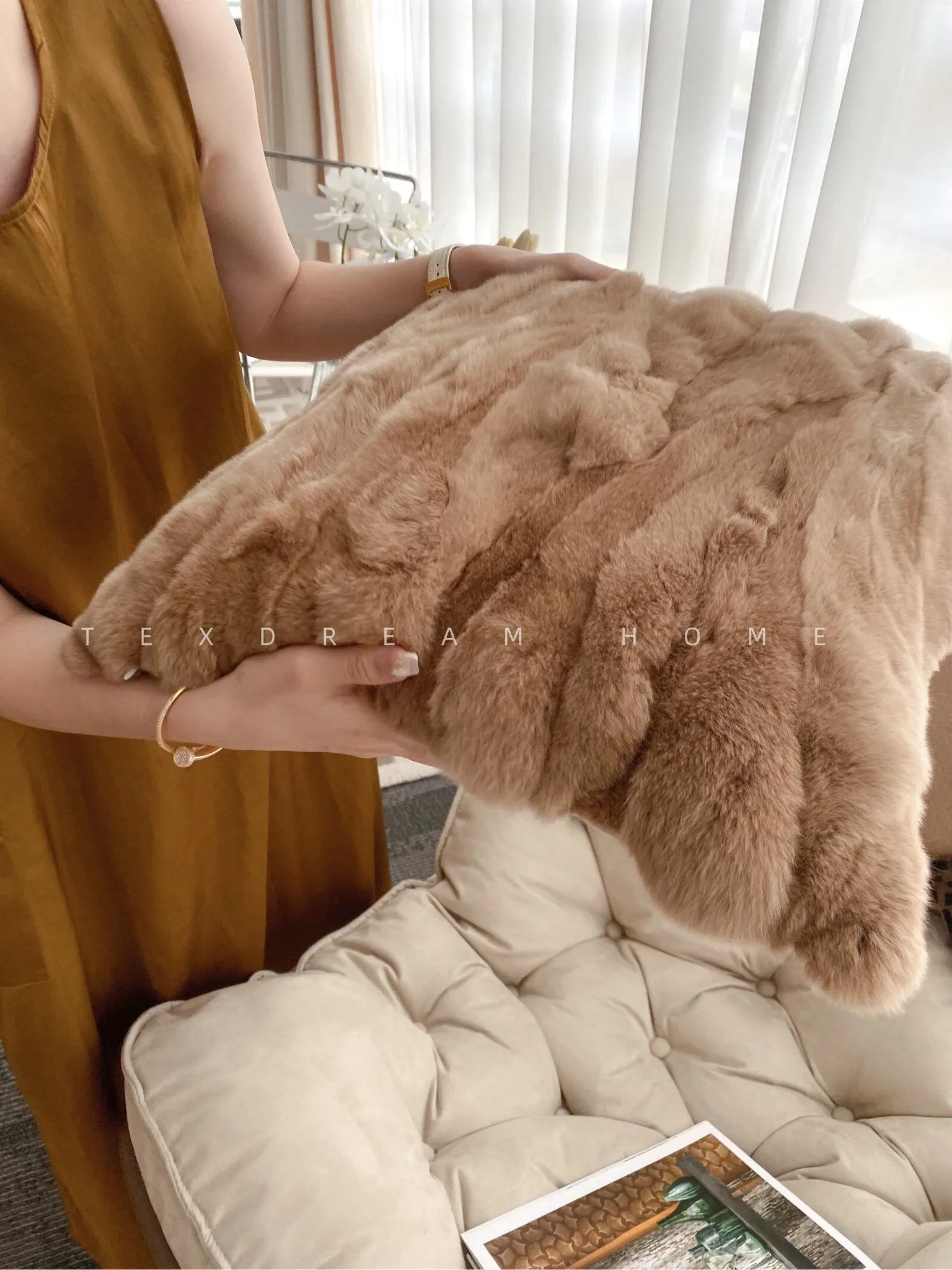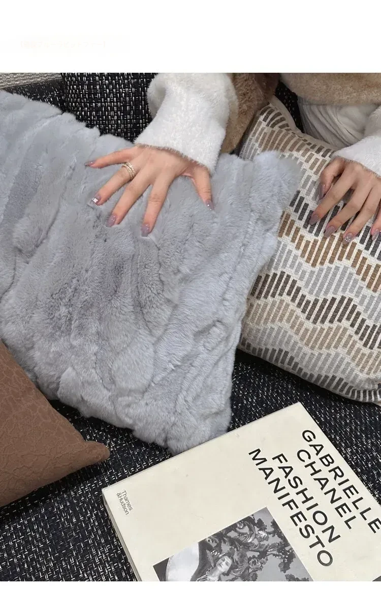 Texdreamのスタイル うさぎ毛シリーズ 本革クッションカバー インスタ映えする軽やかでラグジュアリーなモダンリビングソファ用枕カバー