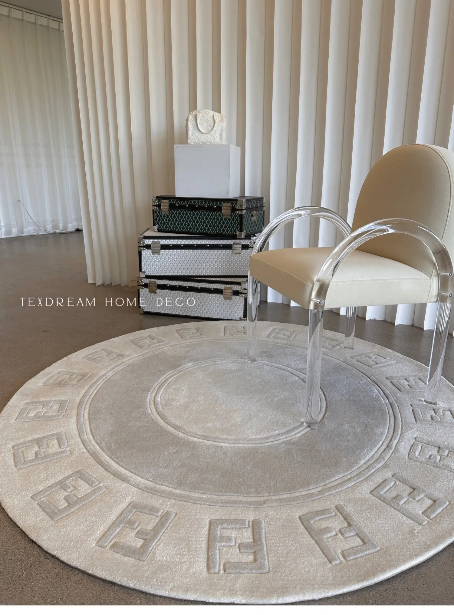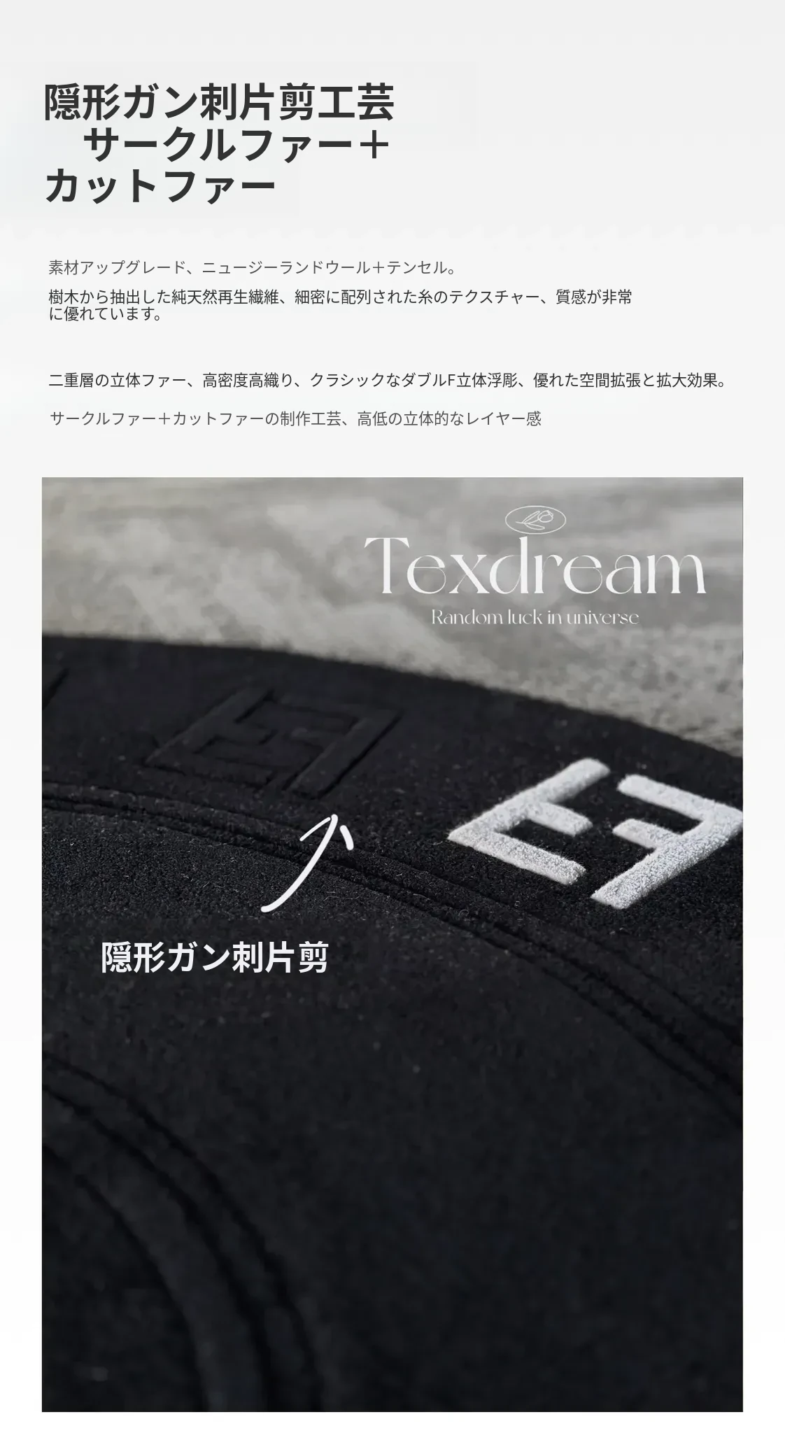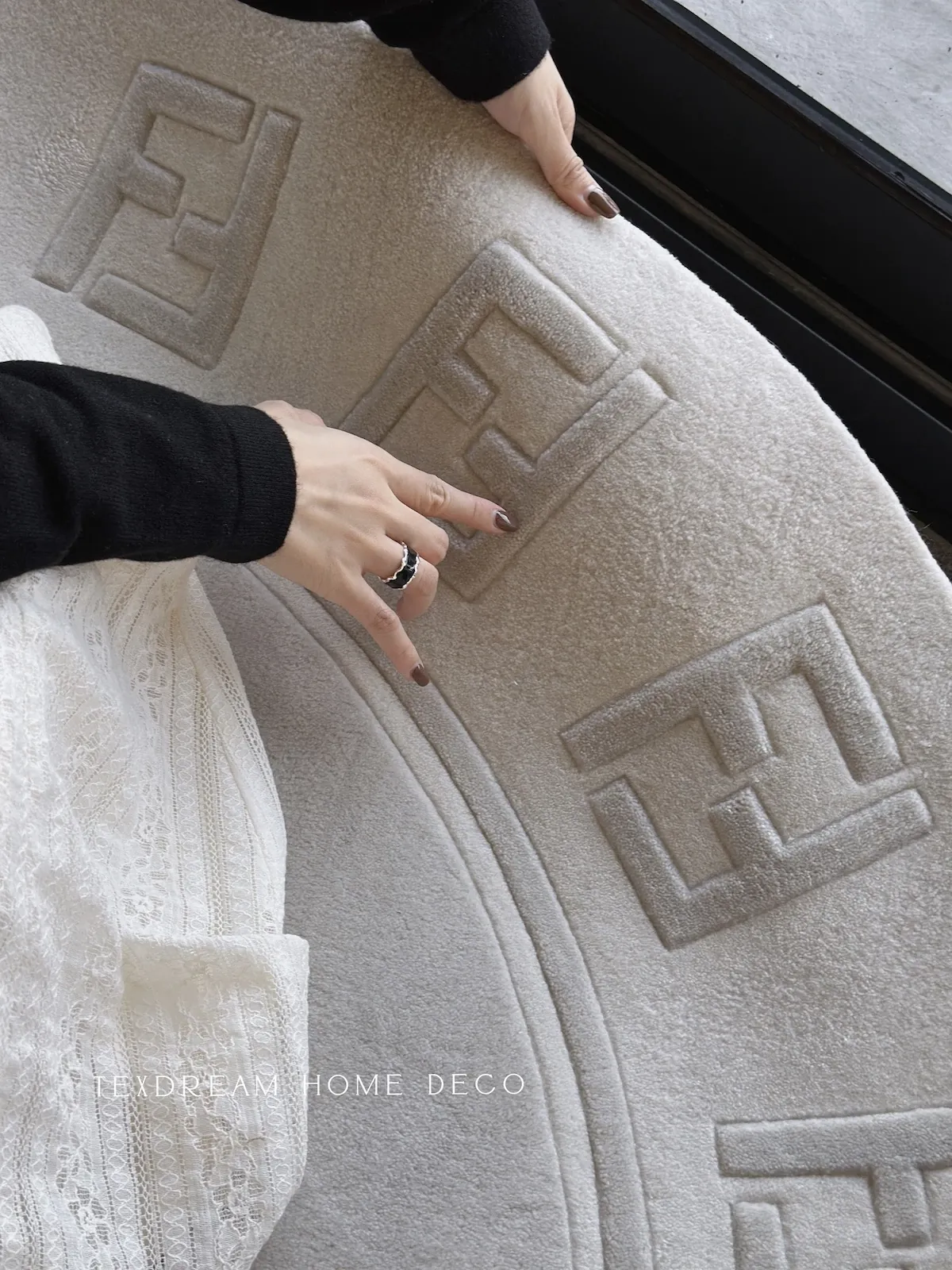 Texdreamのエレガントなワルツデザイン ダブルF手作りウールラグ リビングやクローゼットにぴったりなラグマット 心地よい贅沢感を演出!