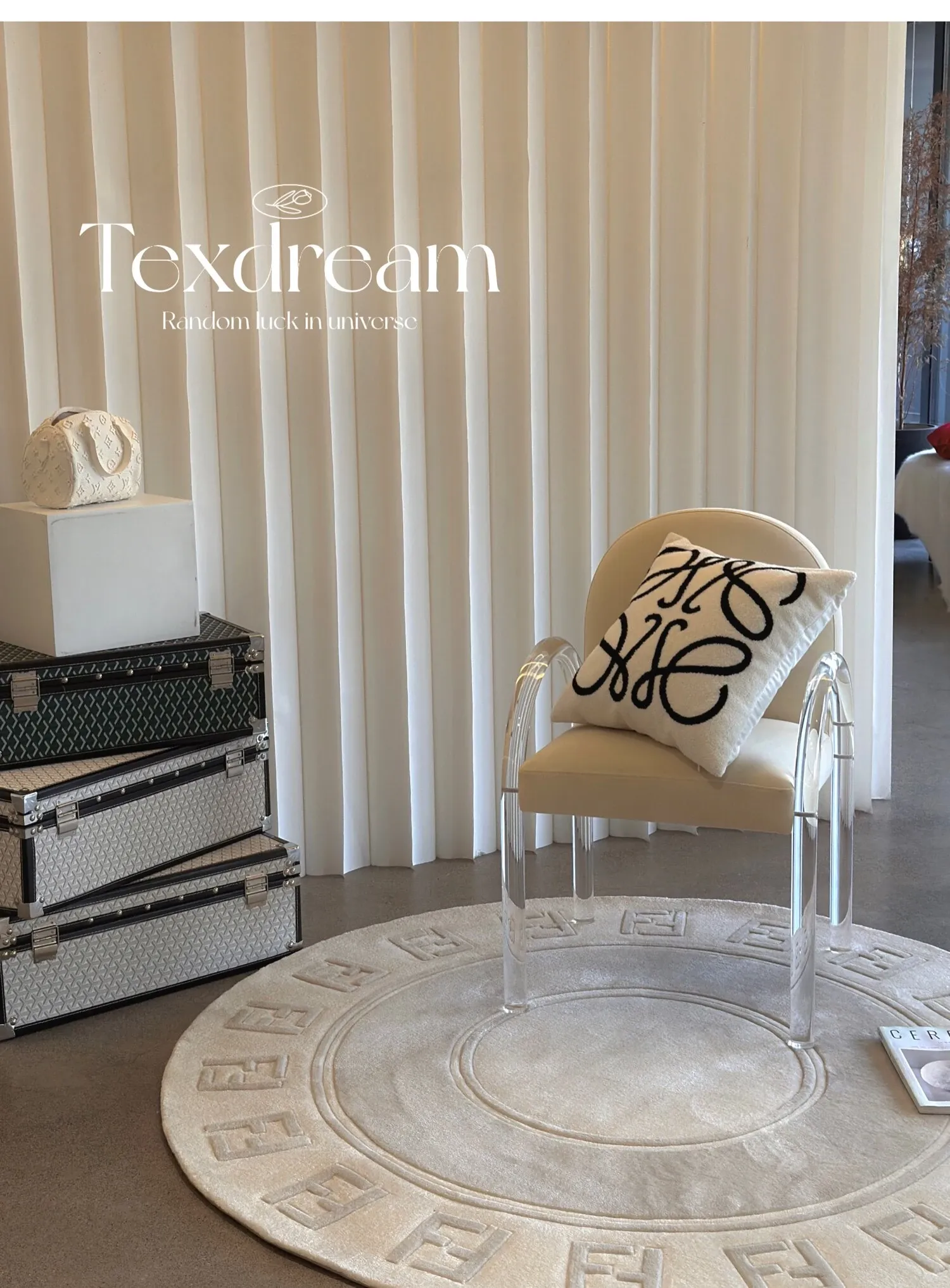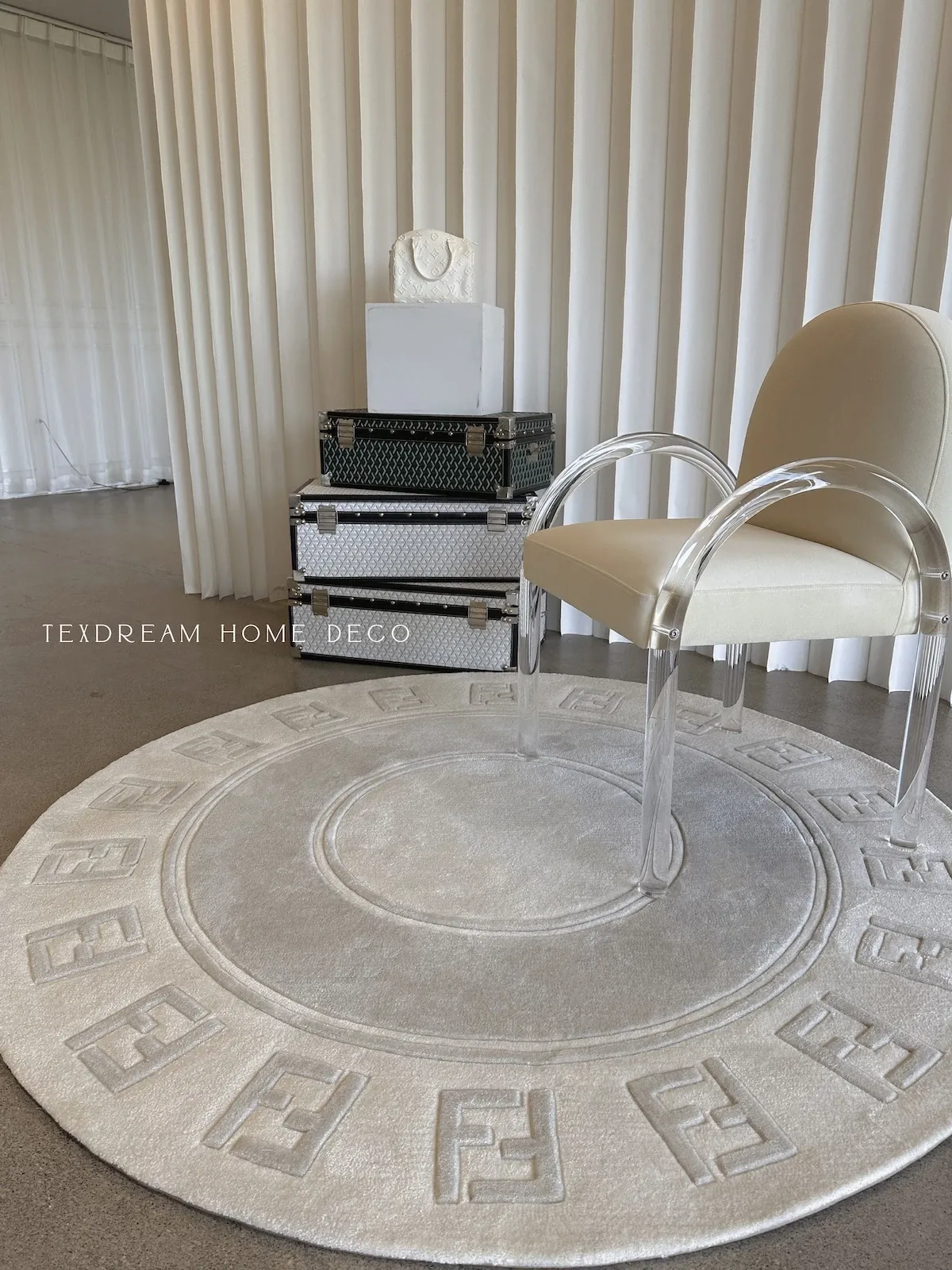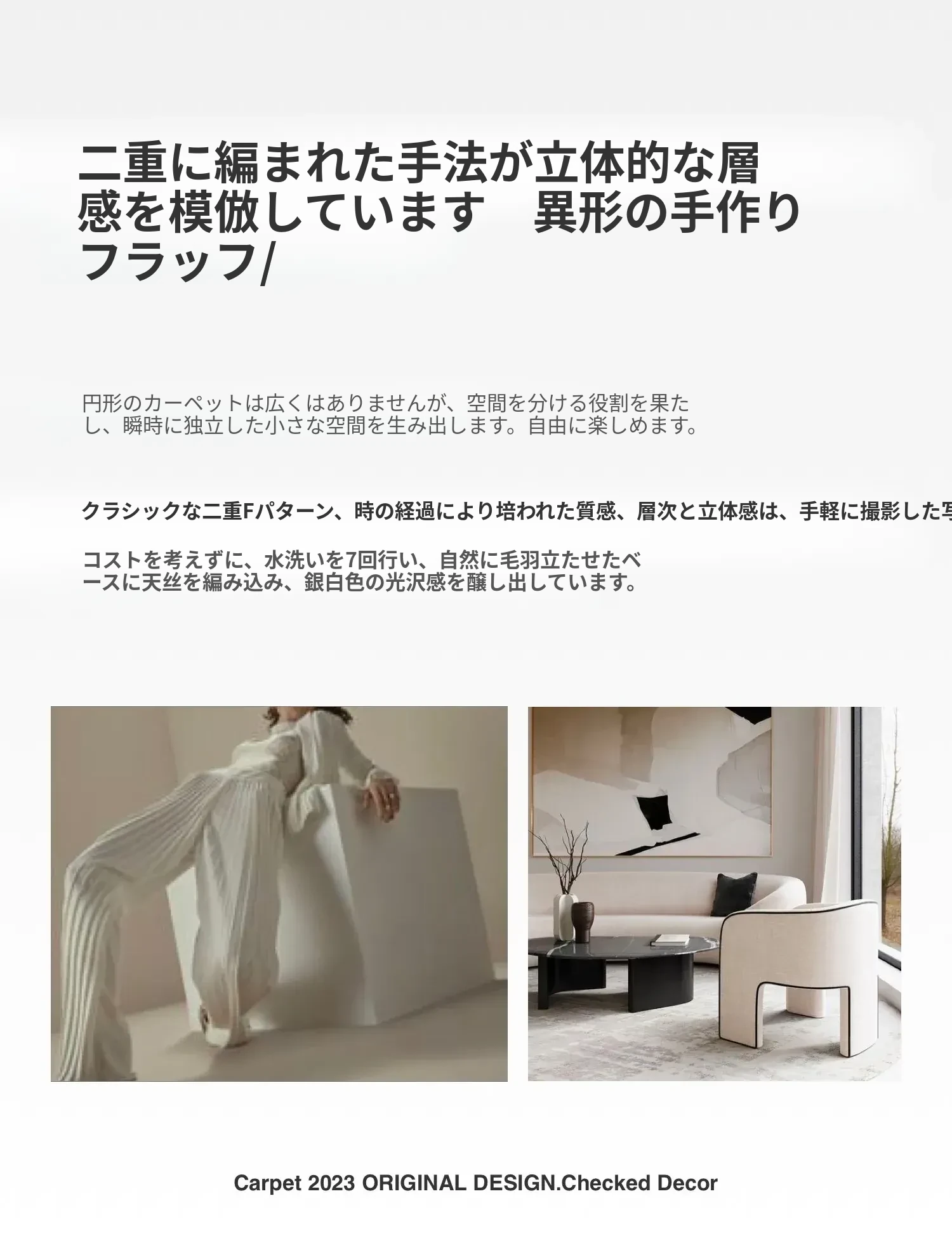 Texdreamのエレガントなワルツデザイン ダブルF手作りウールラグ リビングやクローゼットにぴったりなラグマット 心地よい贅沢感を演出!