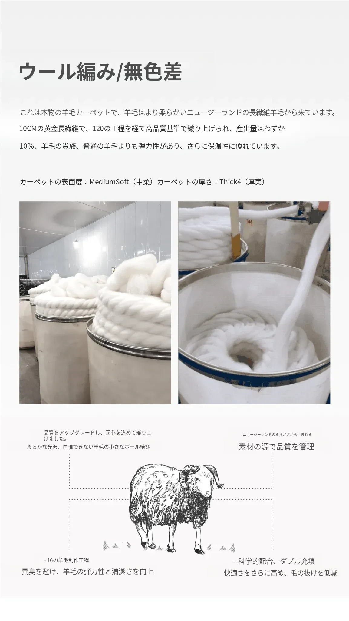 カスタム:重厚な手作りウールカーペット 550/平方メートル