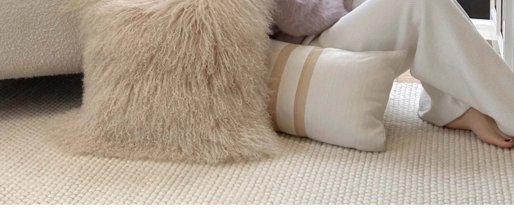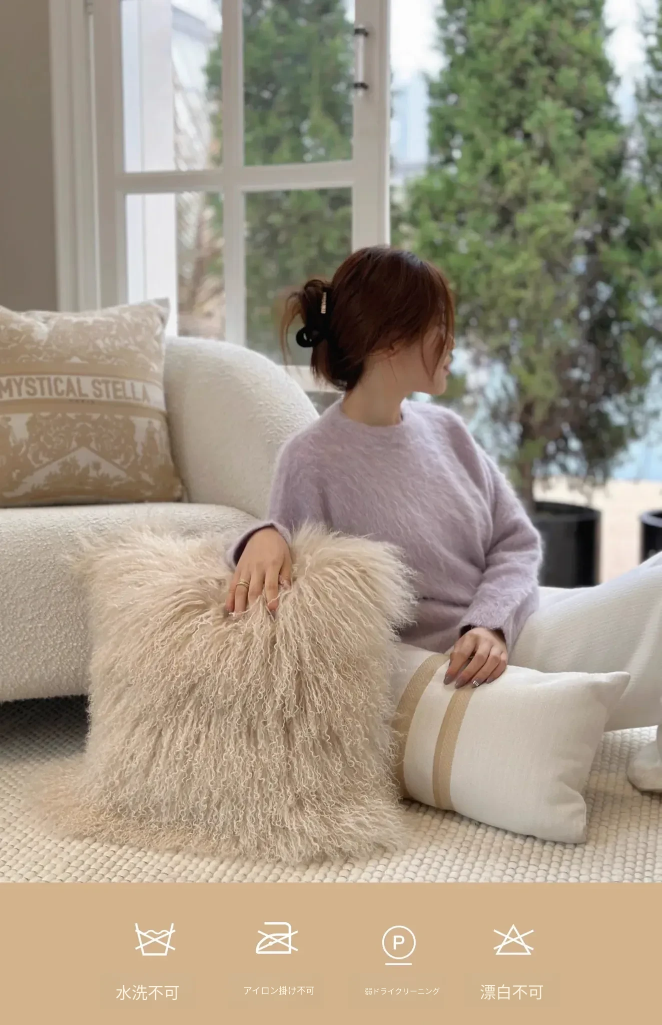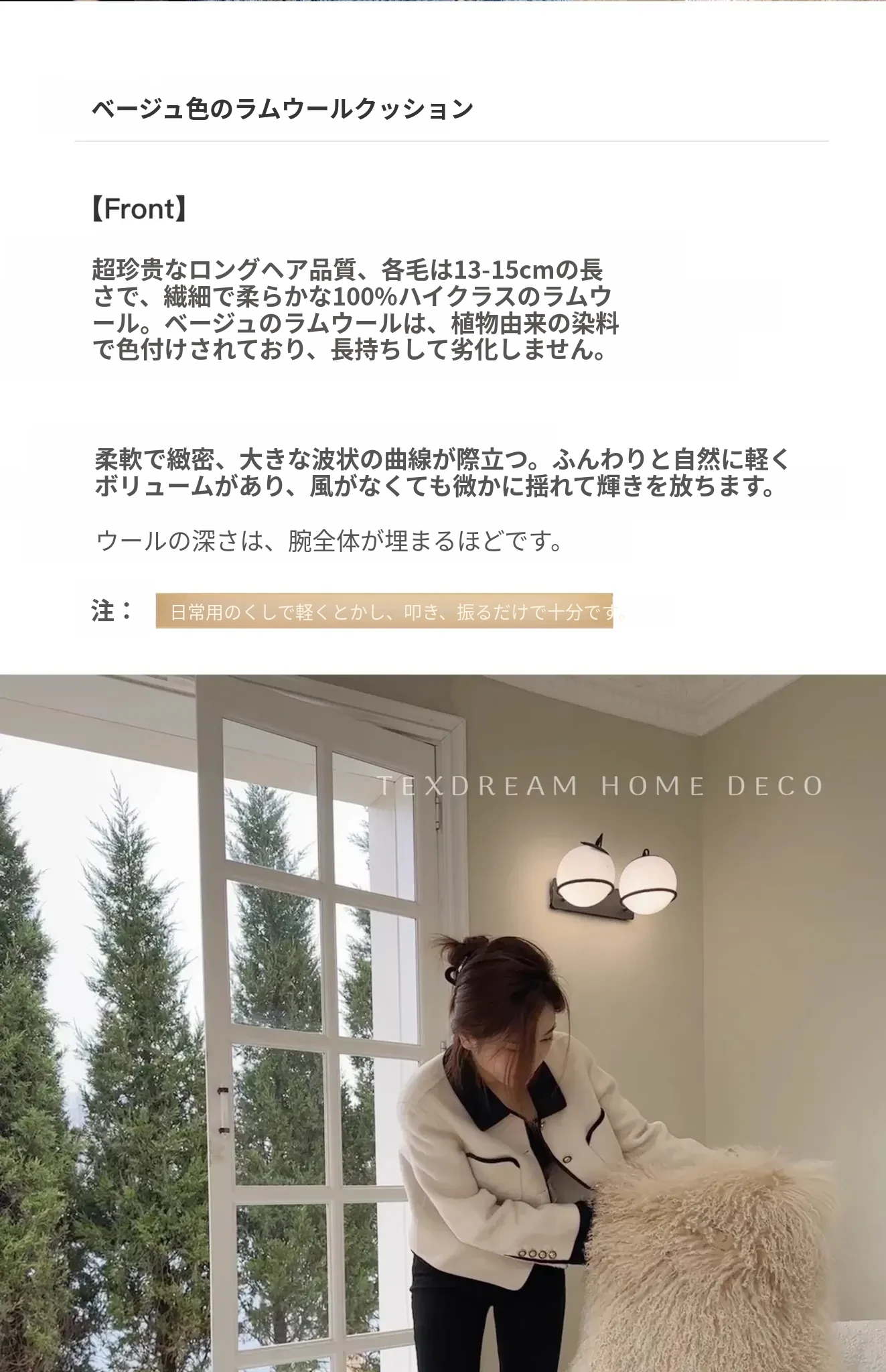 Texdream アティチュード サンドビーチ ベージュ ラグジュアリー 羊毛ファー クッション 北欧シンプル ソファ リビング用 クッション くつろぎの空間を演出!