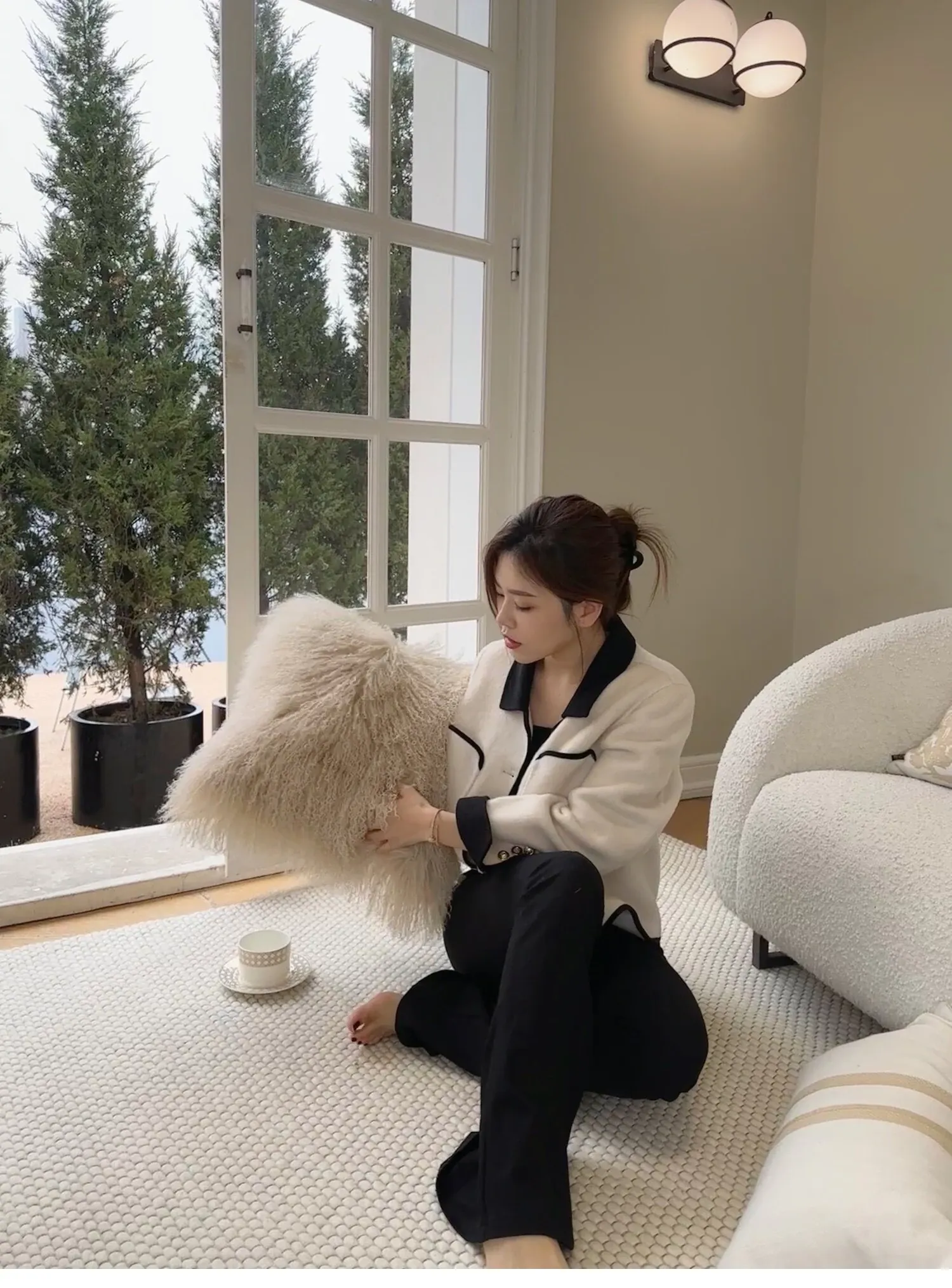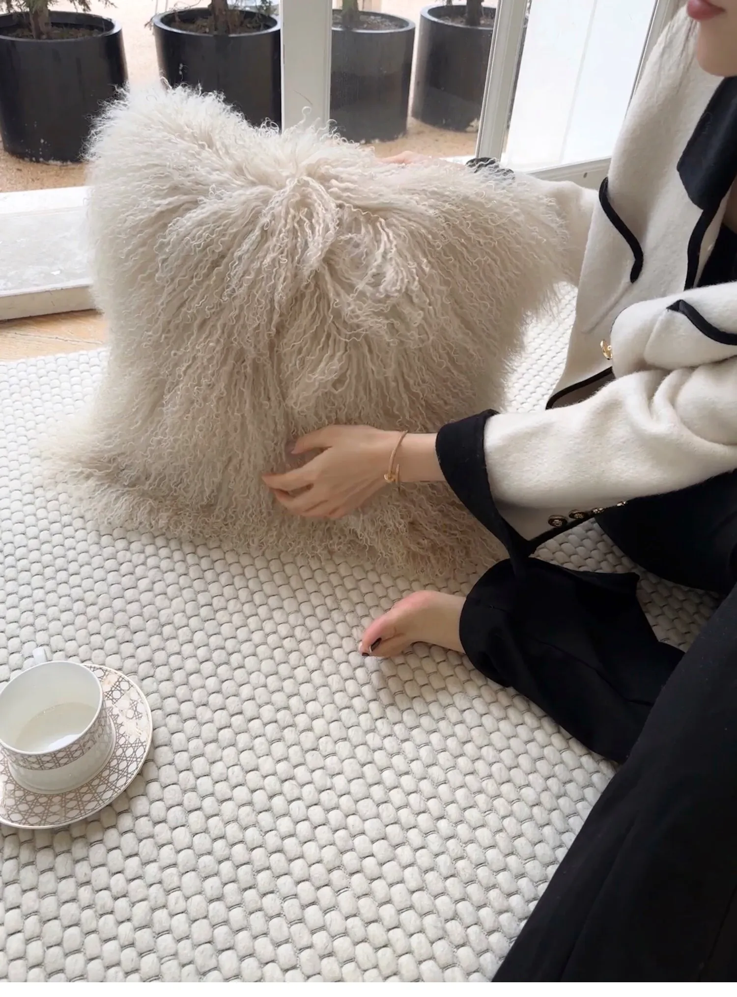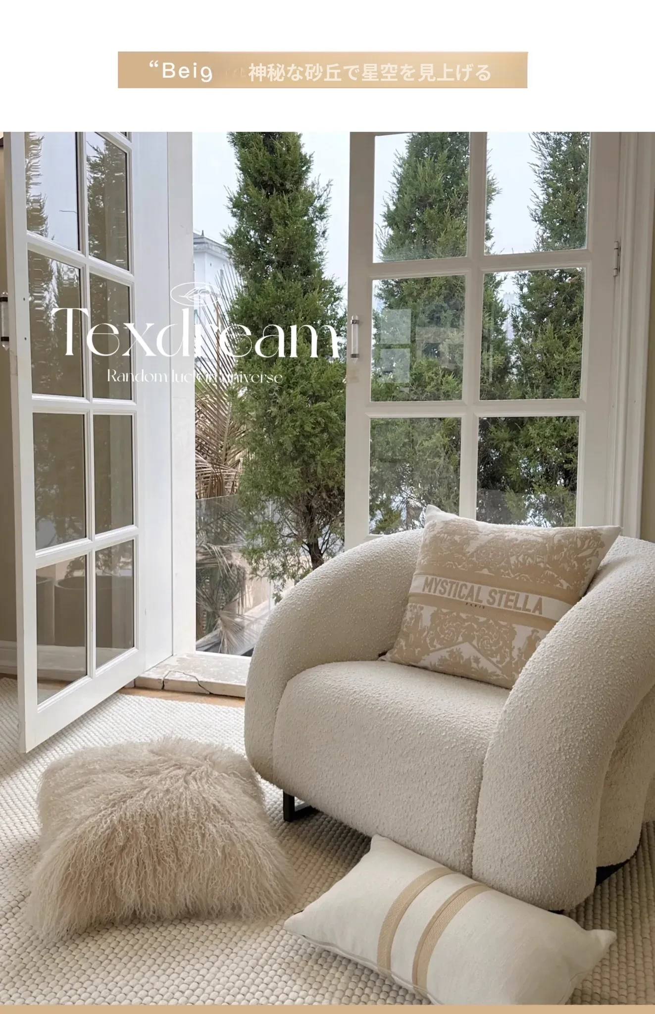 Texdream アティチュード サンドビーチ ベージュ ラグジュアリー 羊毛ファー クッション 北欧シンプル ソファ リビング用 クッション くつろぎの空間を演出!