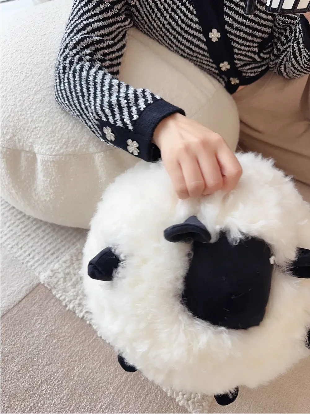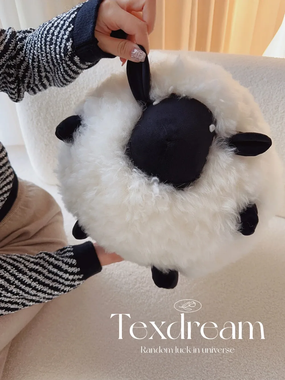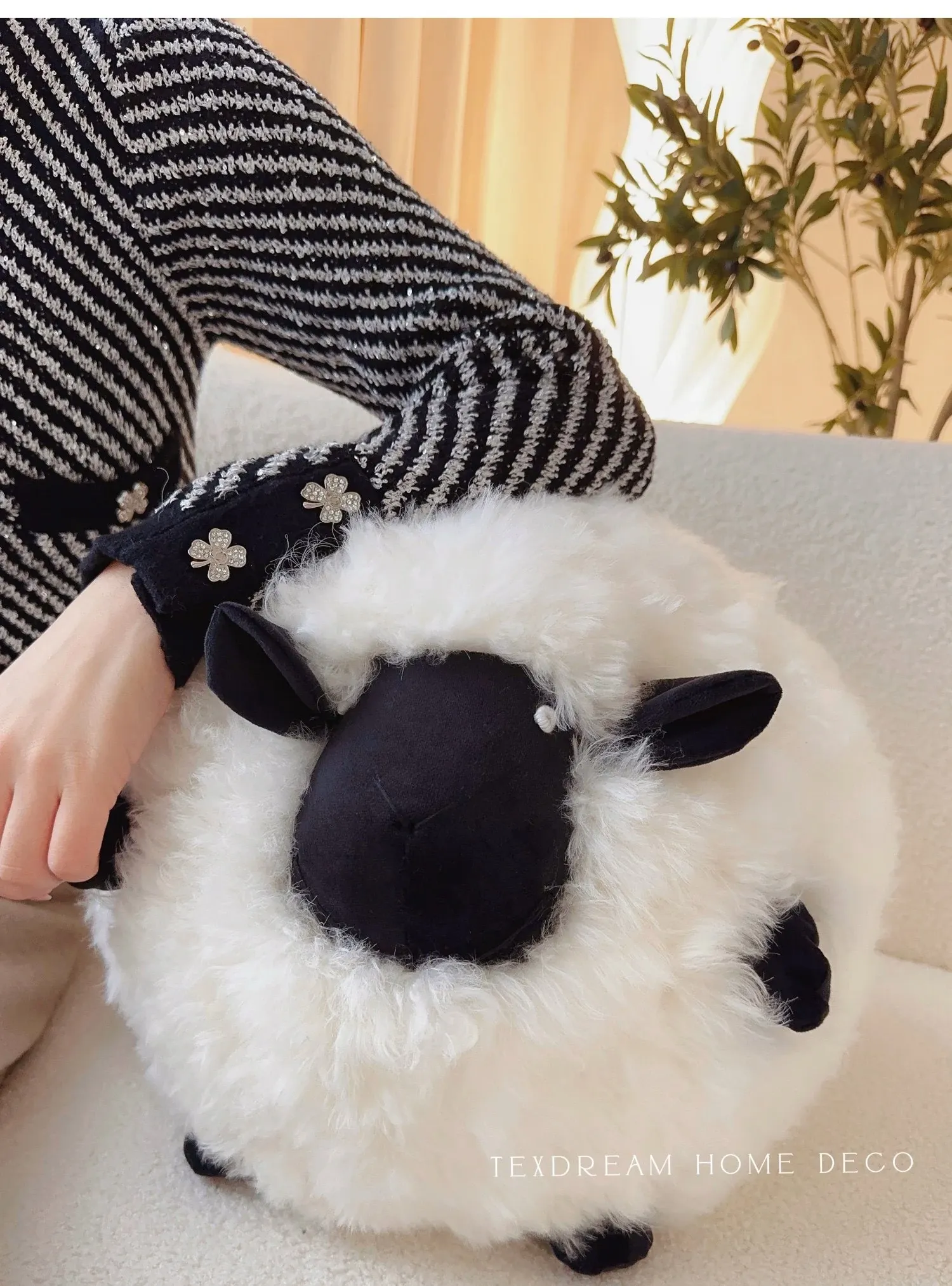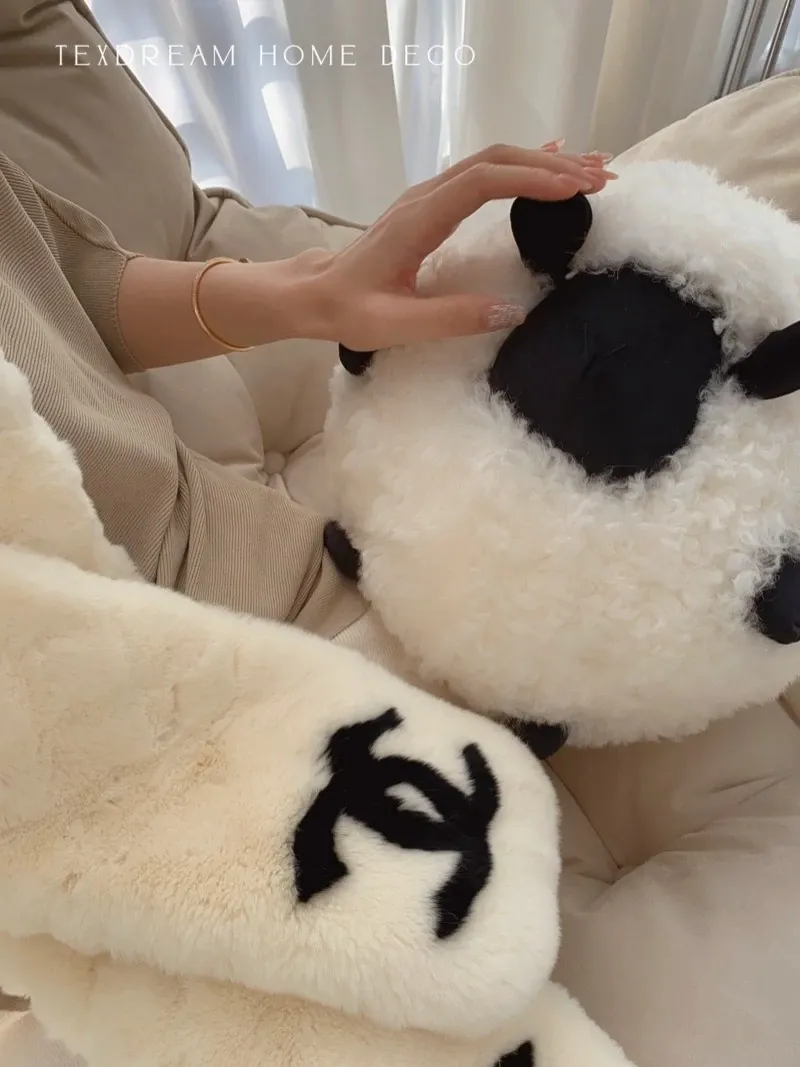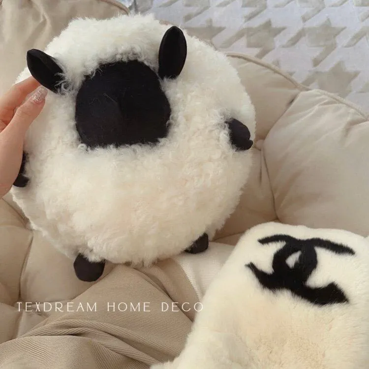 Texdreamのアティチュード ショーンのブラックシープ 超細ウール製ラウンドクッション 可愛いリビング用抱き枕 カートゥーンぬいぐるみで、あなたの空間に癒しと楽しさをプラス!