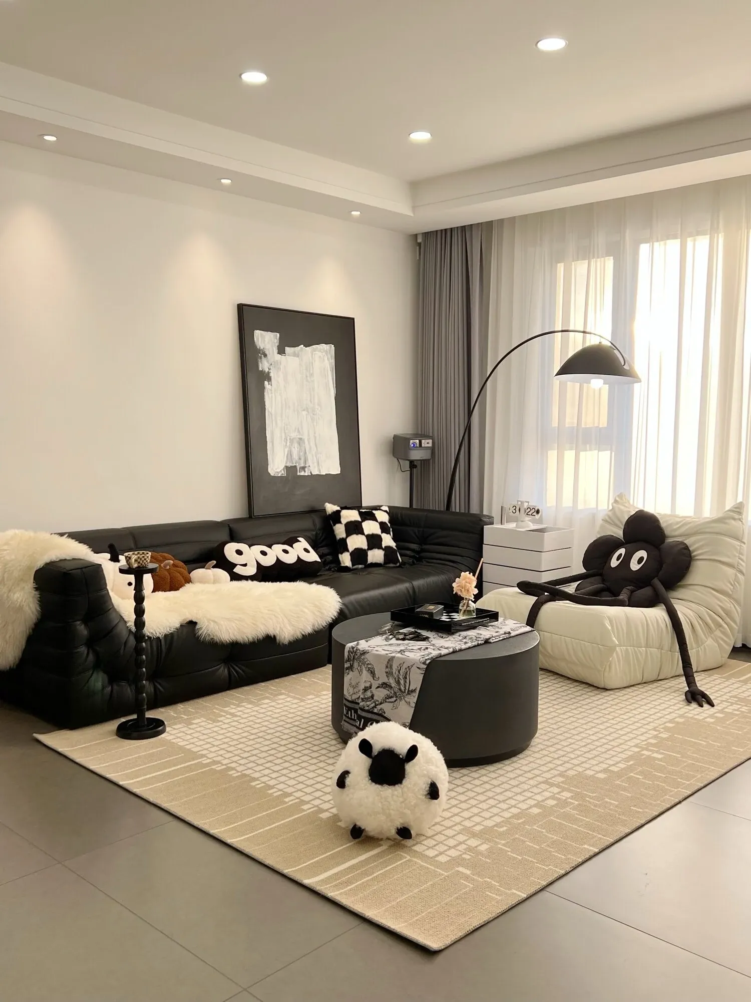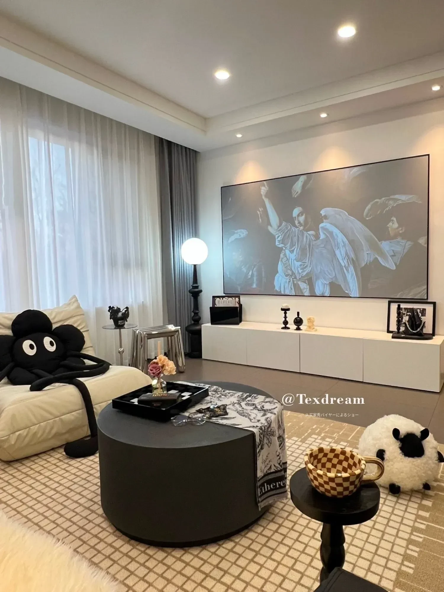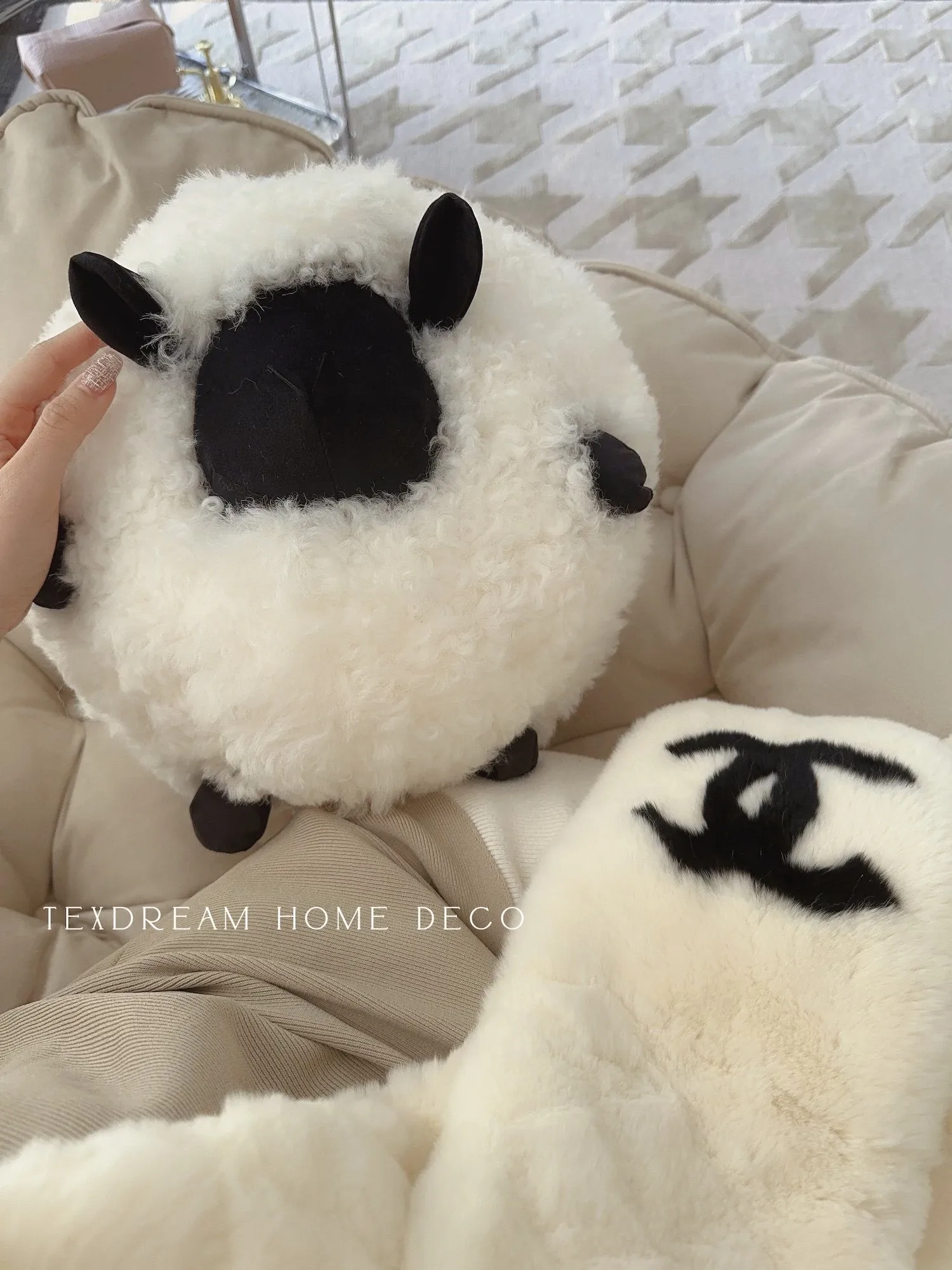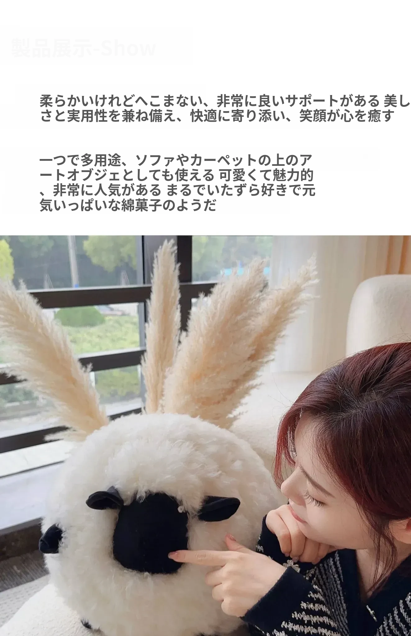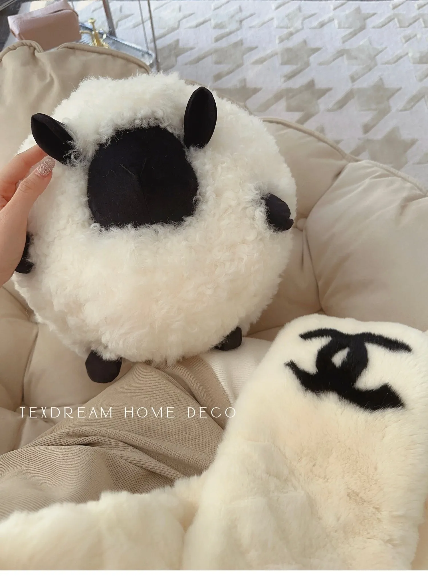 Texdreamのアティチュード ショーンのブラックシープ 超細ウール製ラウンドクッション 可愛いリビング用抱き枕 カートゥーンぬいぐるみで、あなたの空間に癒しと楽しさをプラス!
