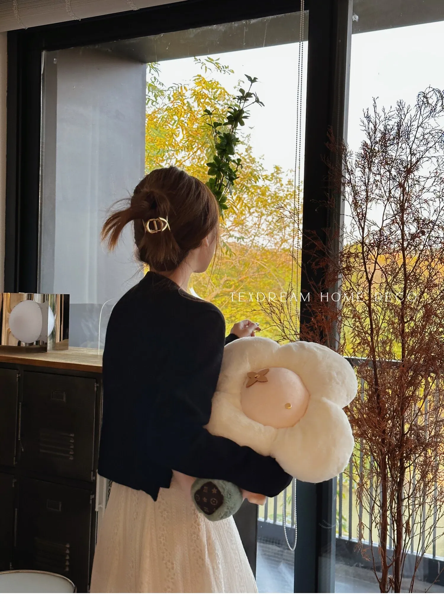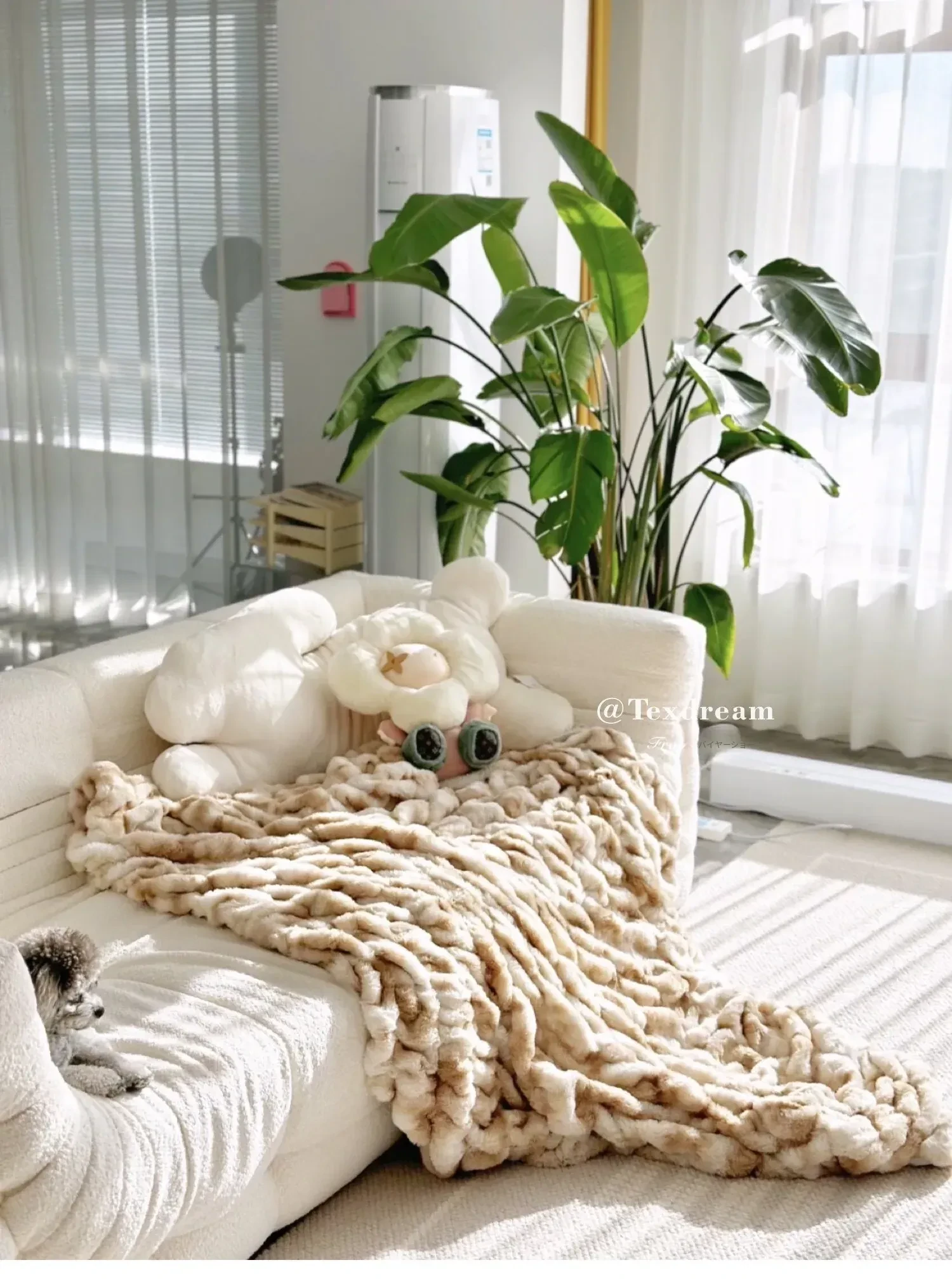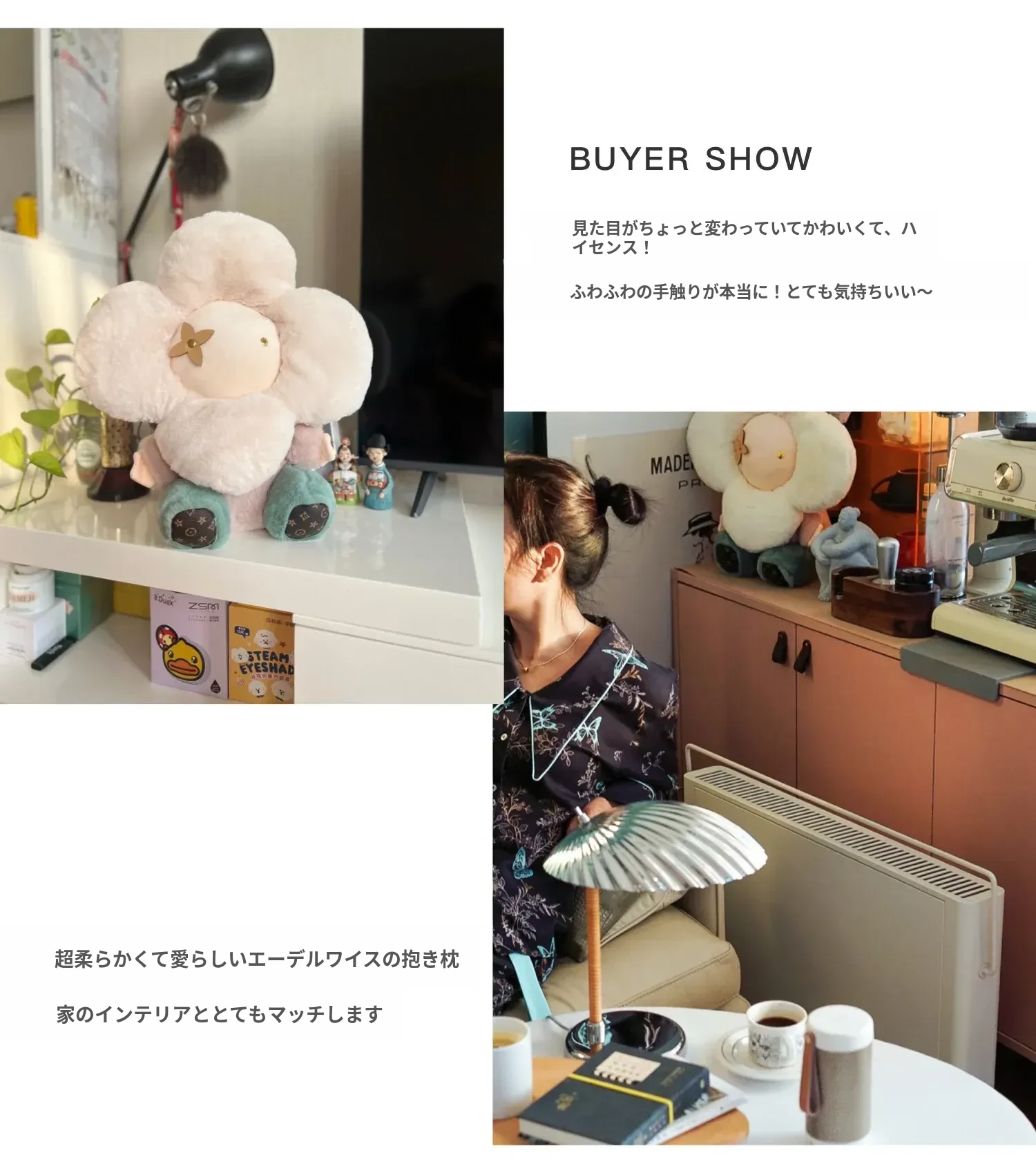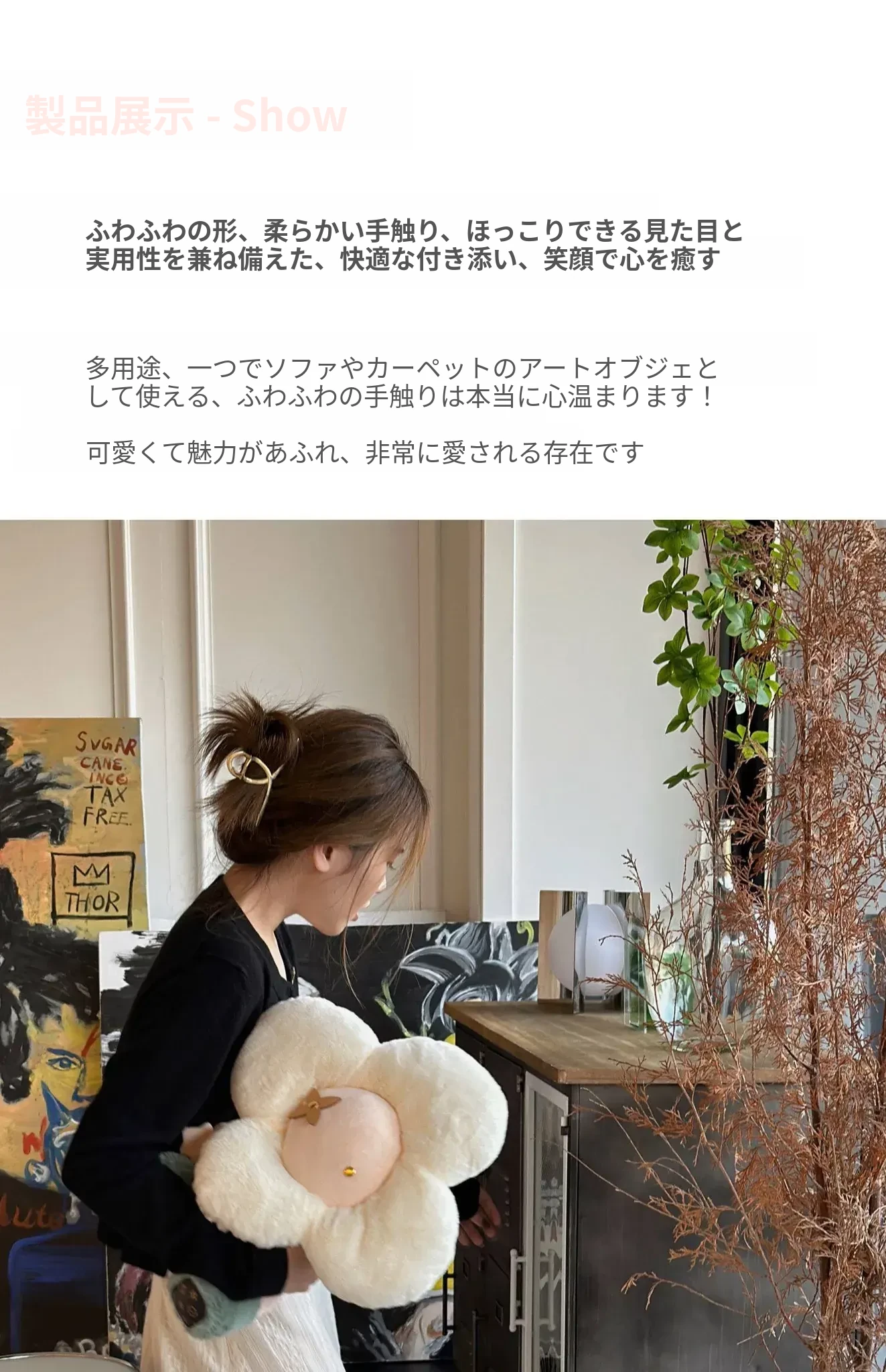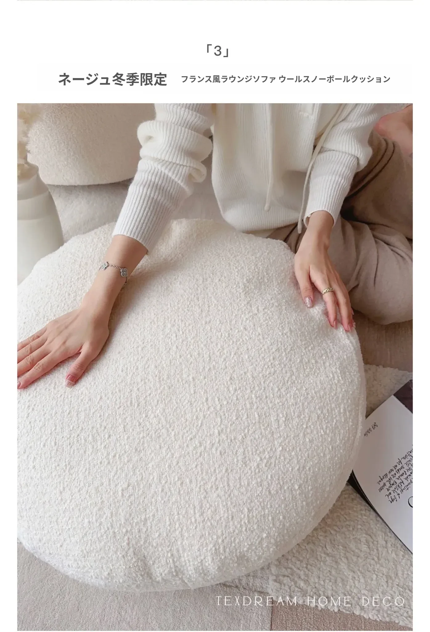 テックスドリームの雪の花クッション、かわいいカートゥーンデザインのふわふわラウンドぬいぐるみ!おしゃれなソファやリビングにぴったり!昼寝やリラックスタイムに最適な抱き枕です。