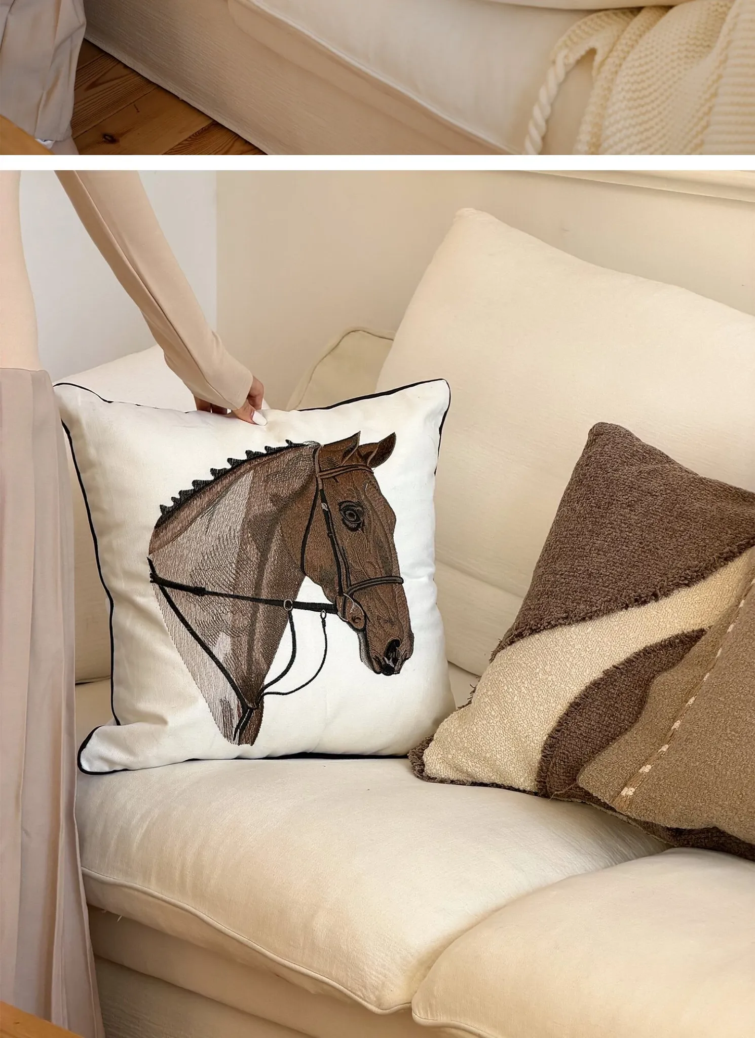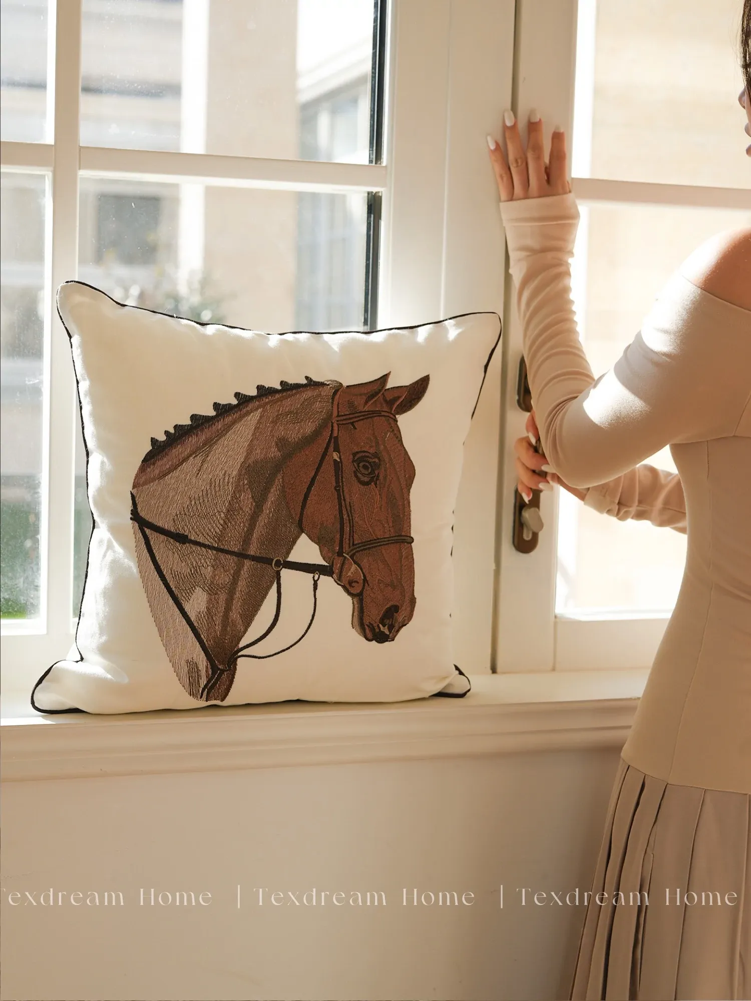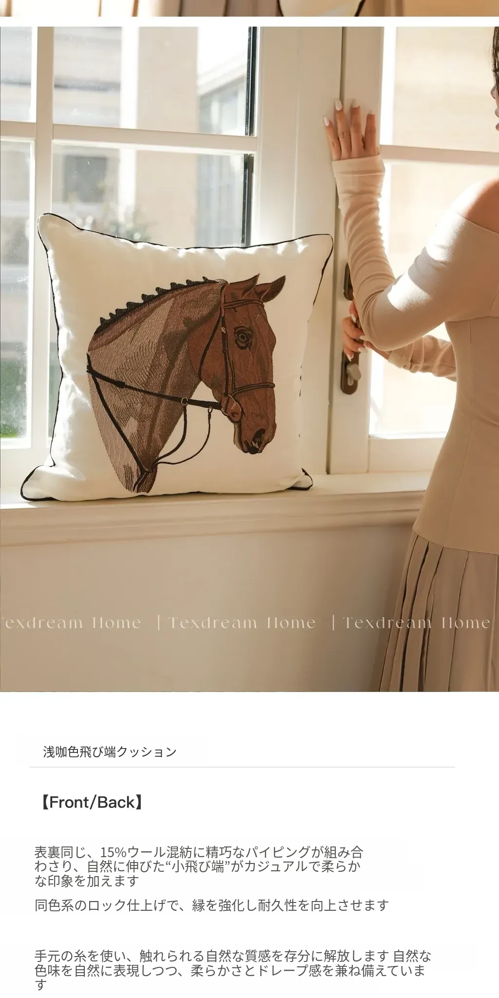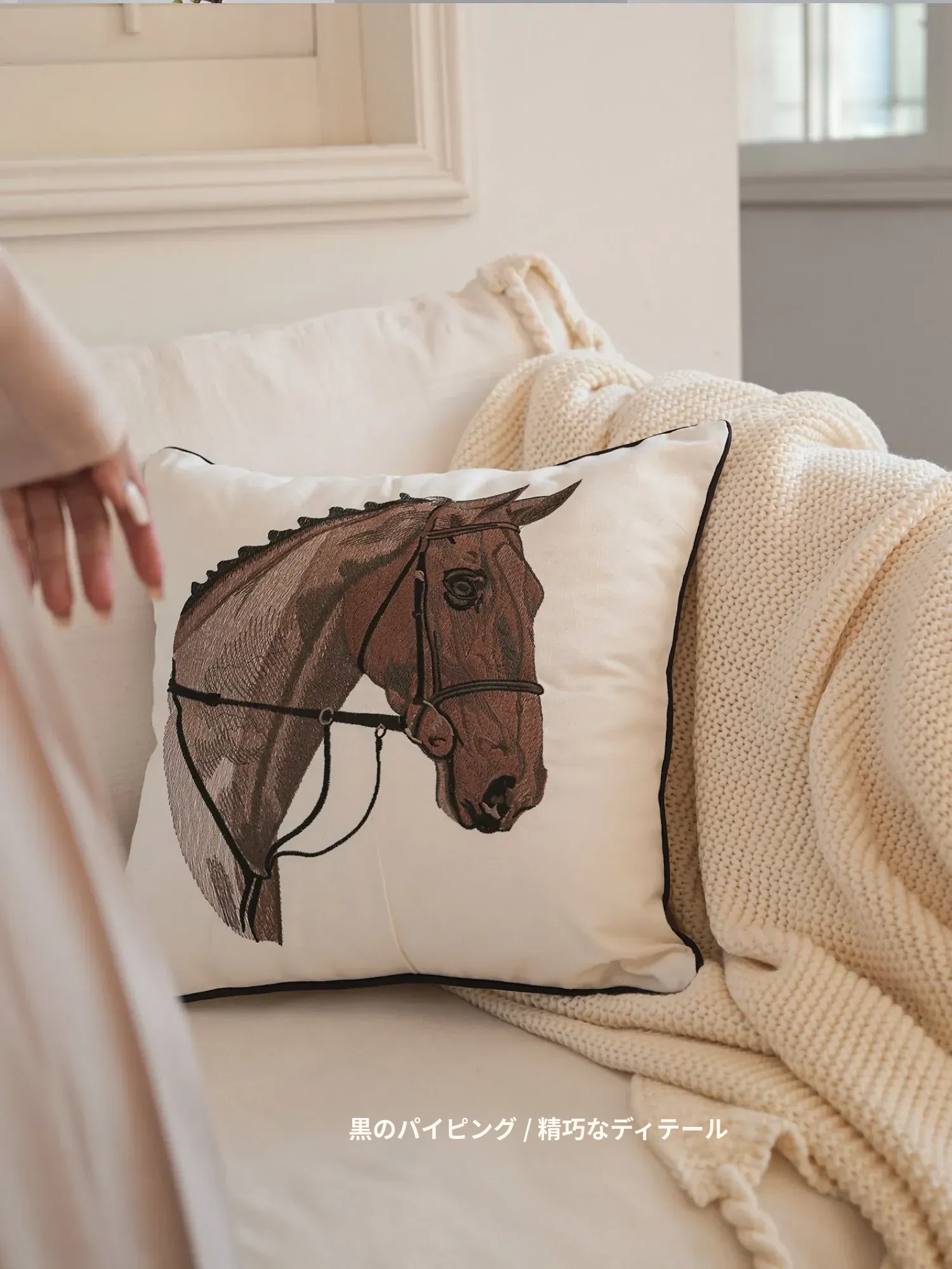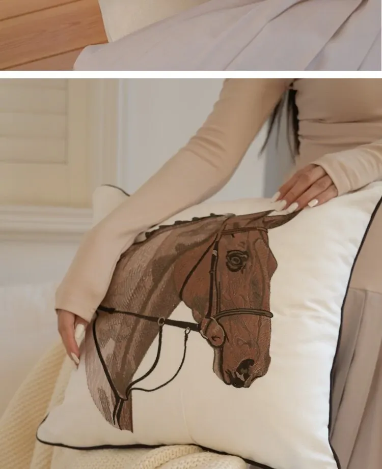 TEXDREAMアティチュード タクマ/刺繍馬装飾クッション フランス風ソファ用 高級リビングルーム用新年クッションで、おしゃれな空間を演出!