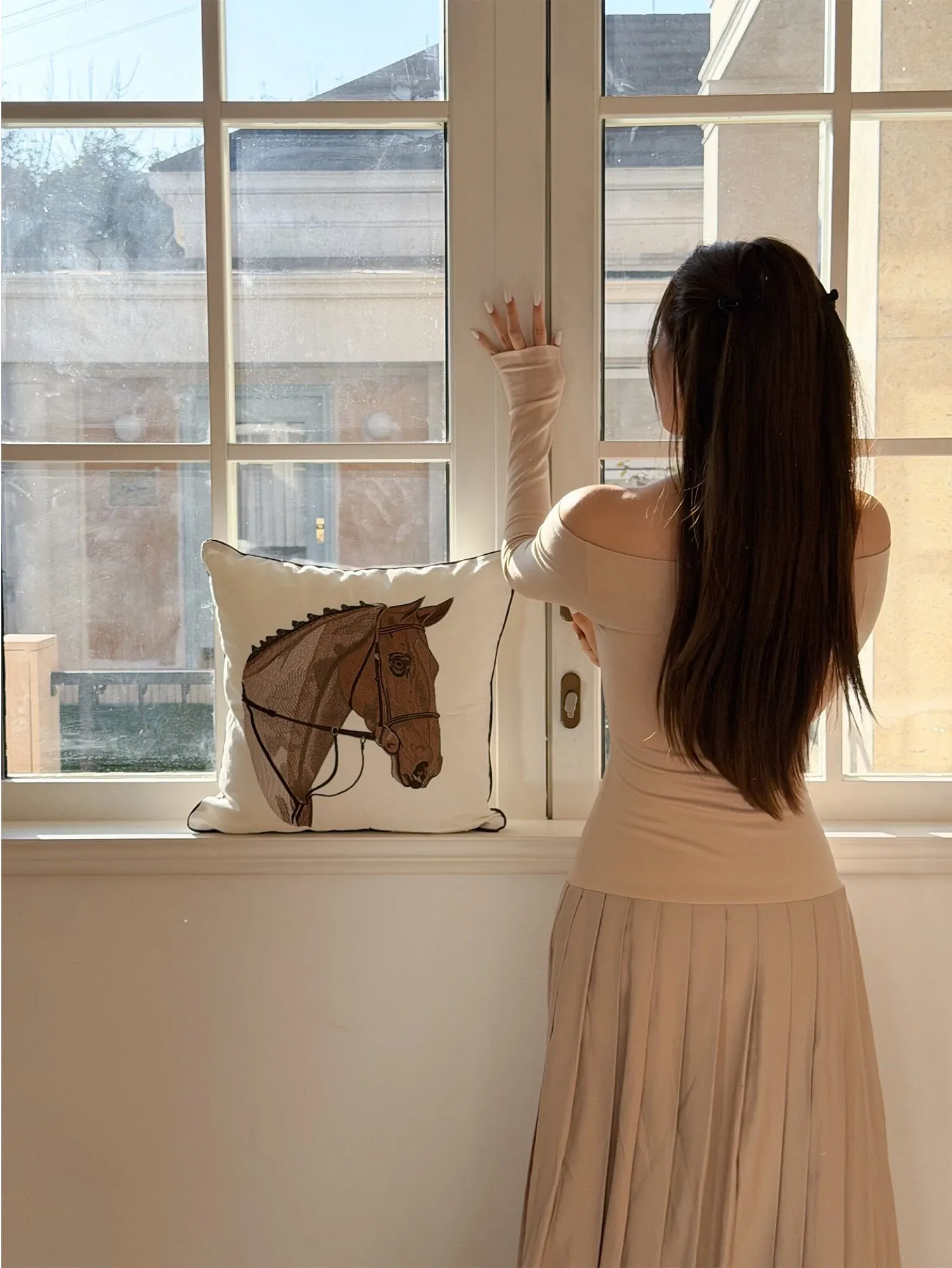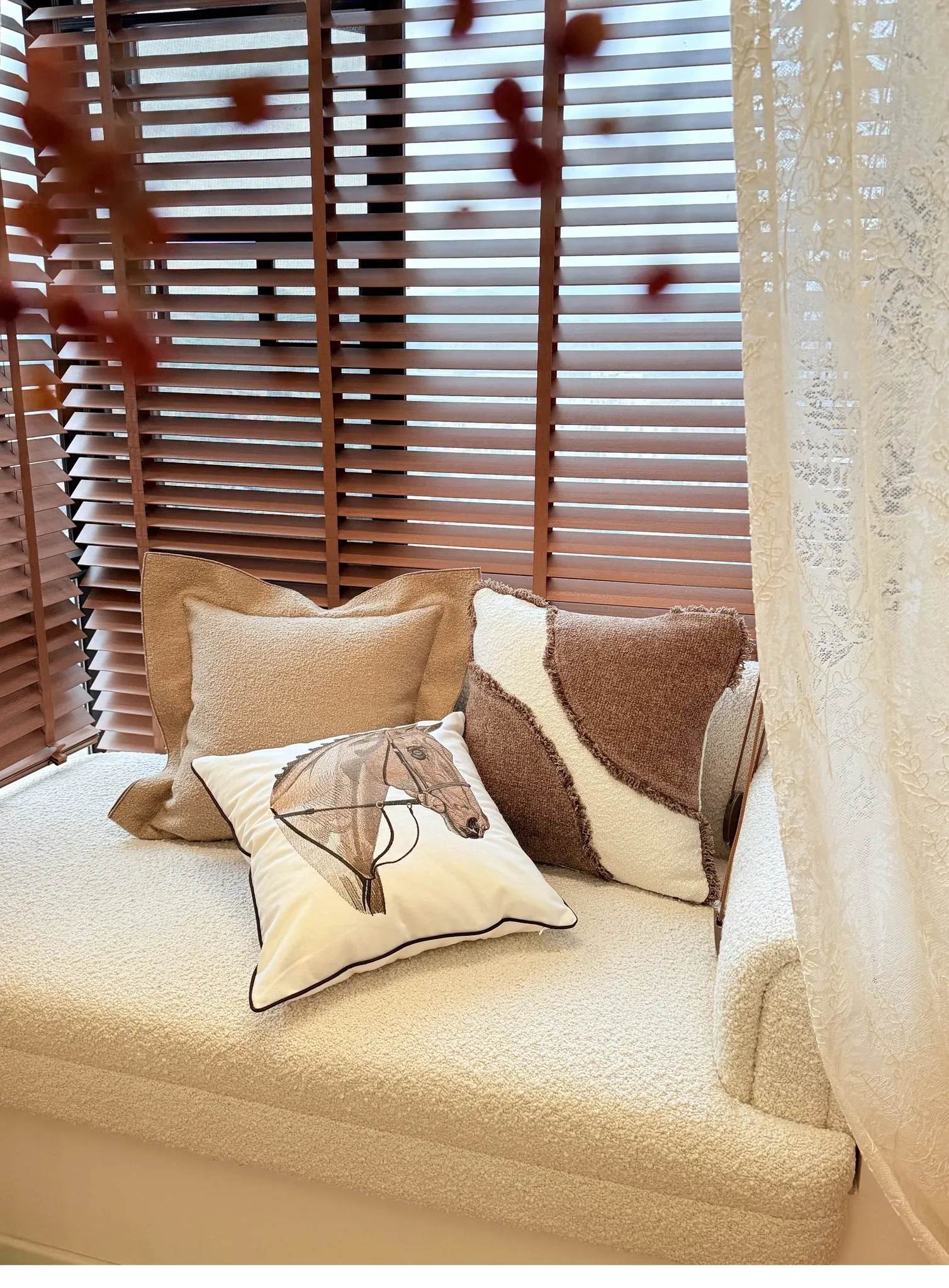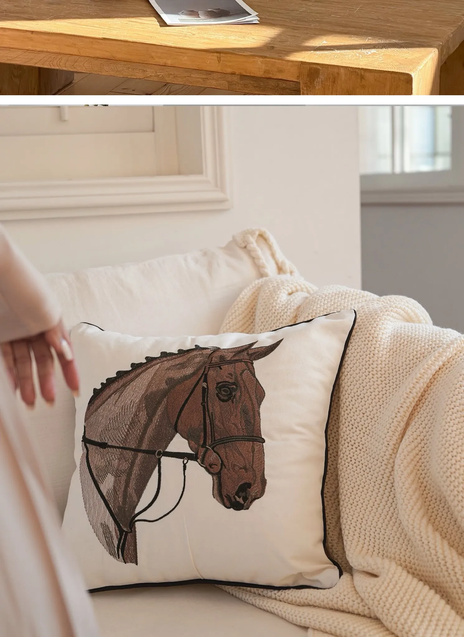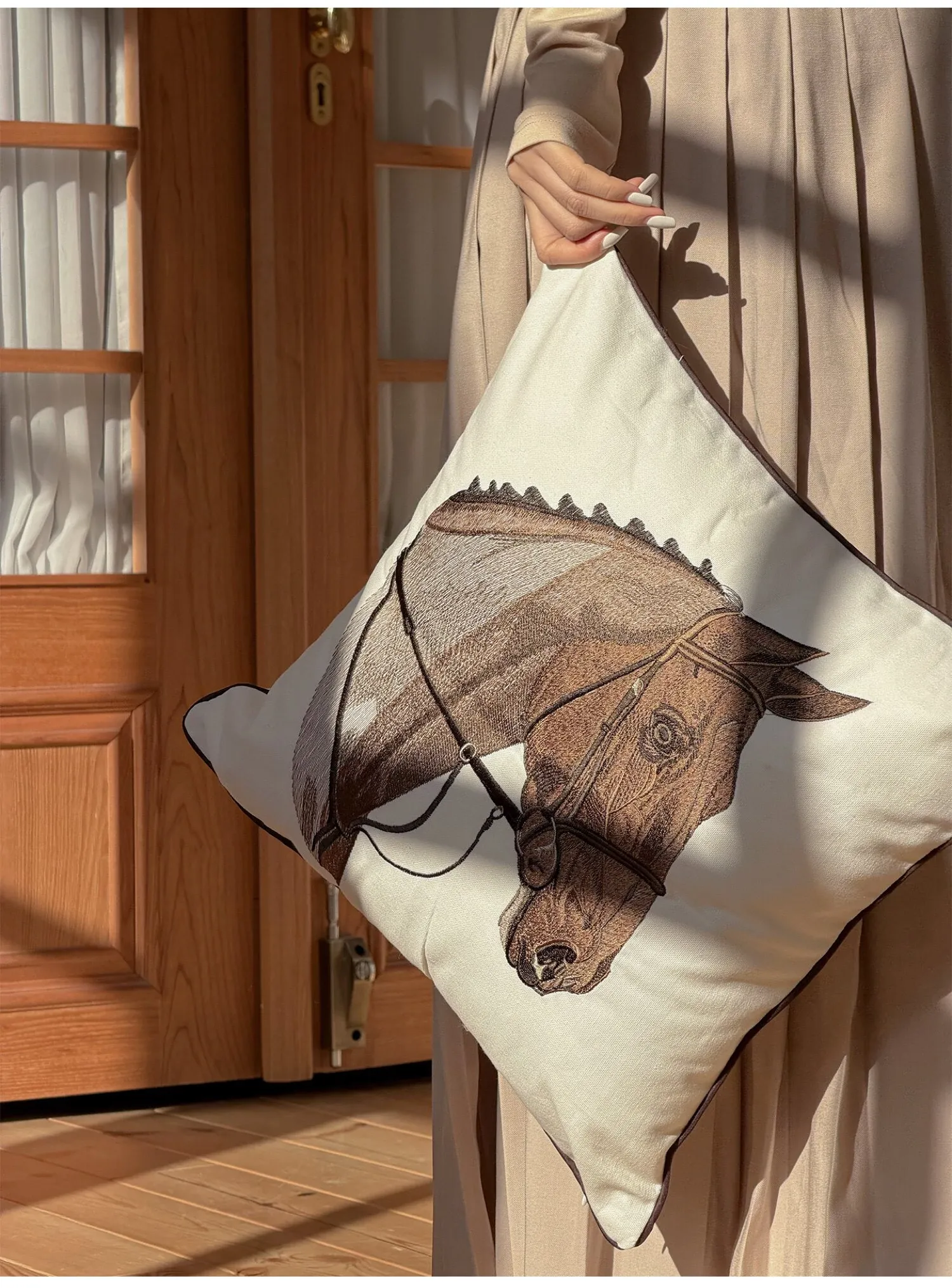 TEXDREAMアティチュード タクマ/刺繍馬装飾クッション フランス風ソファ用 高級リビングルーム用新年クッションで、おしゃれな空間を演出!