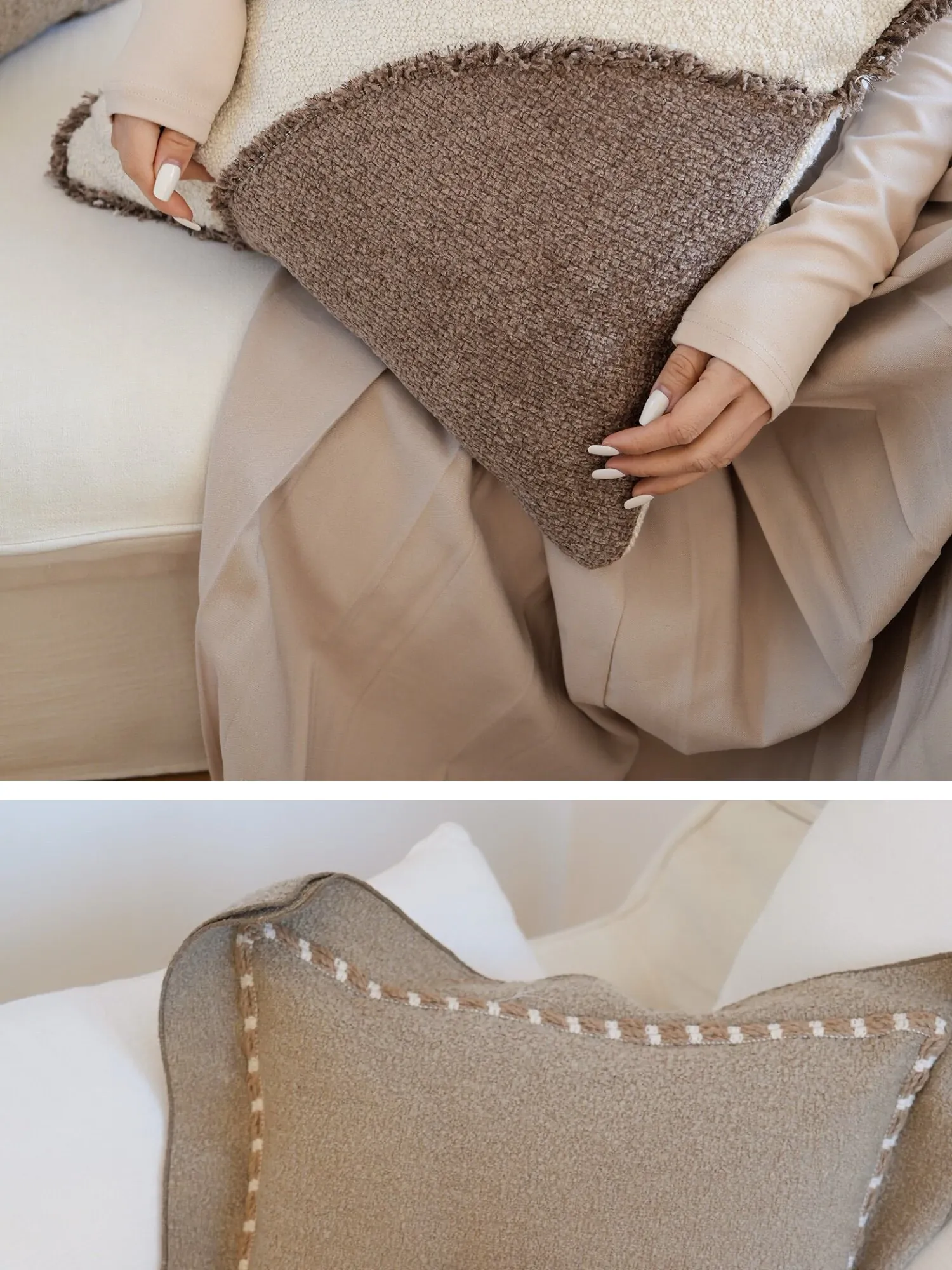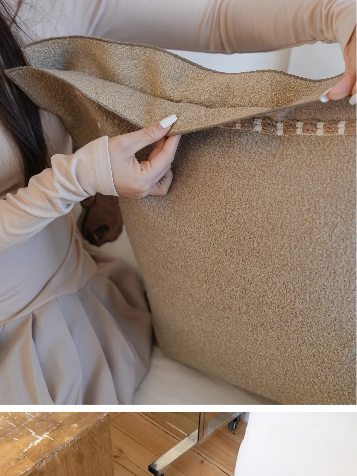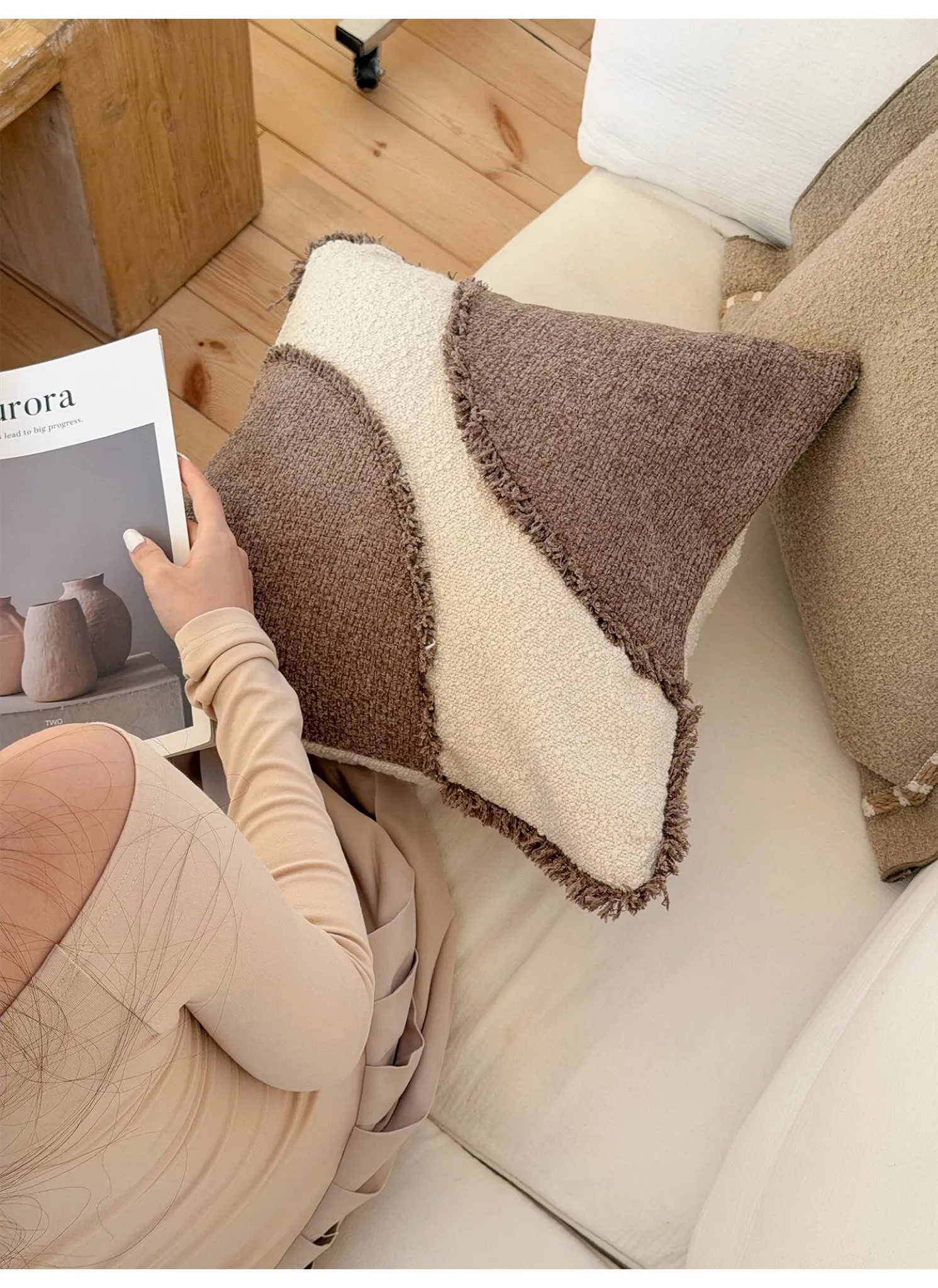 【モユ | ブラウンとホワイトのパッチワークテクスチャ】
