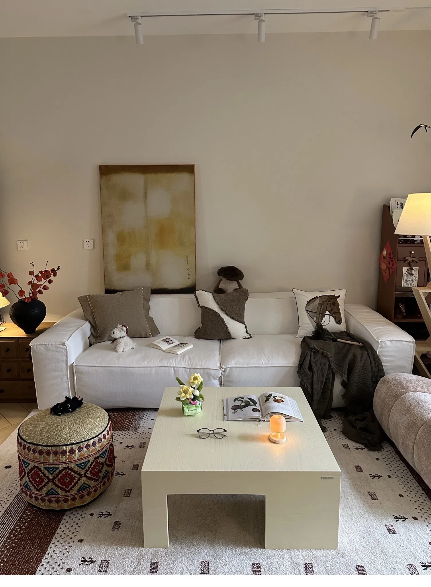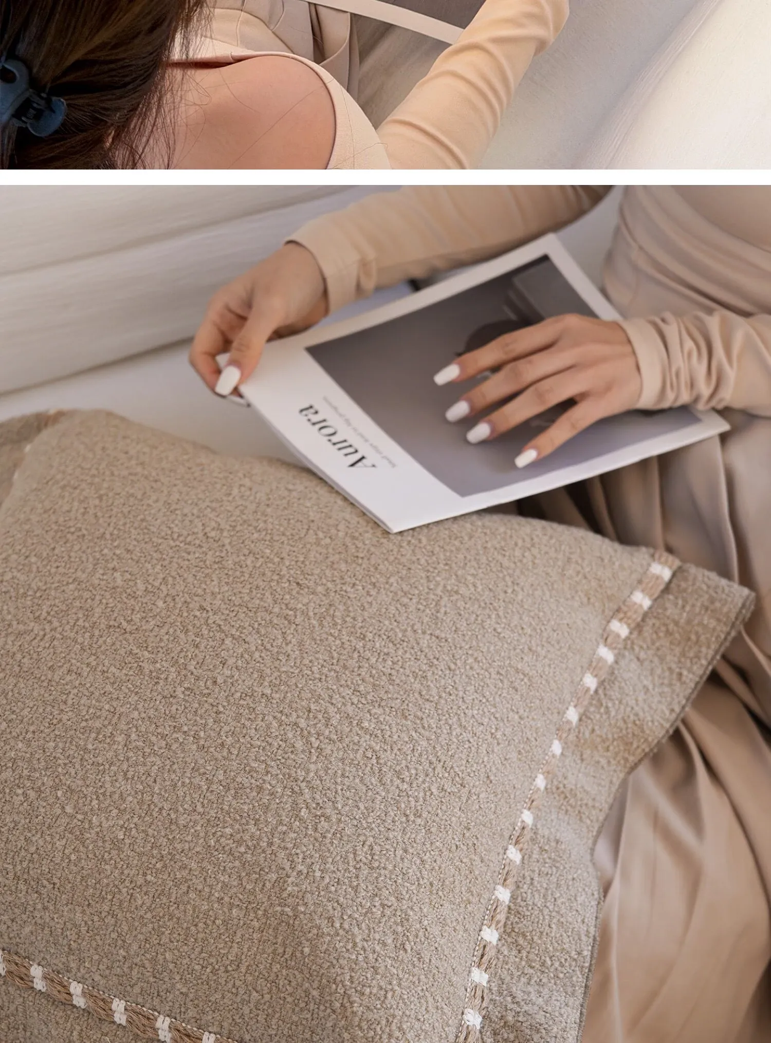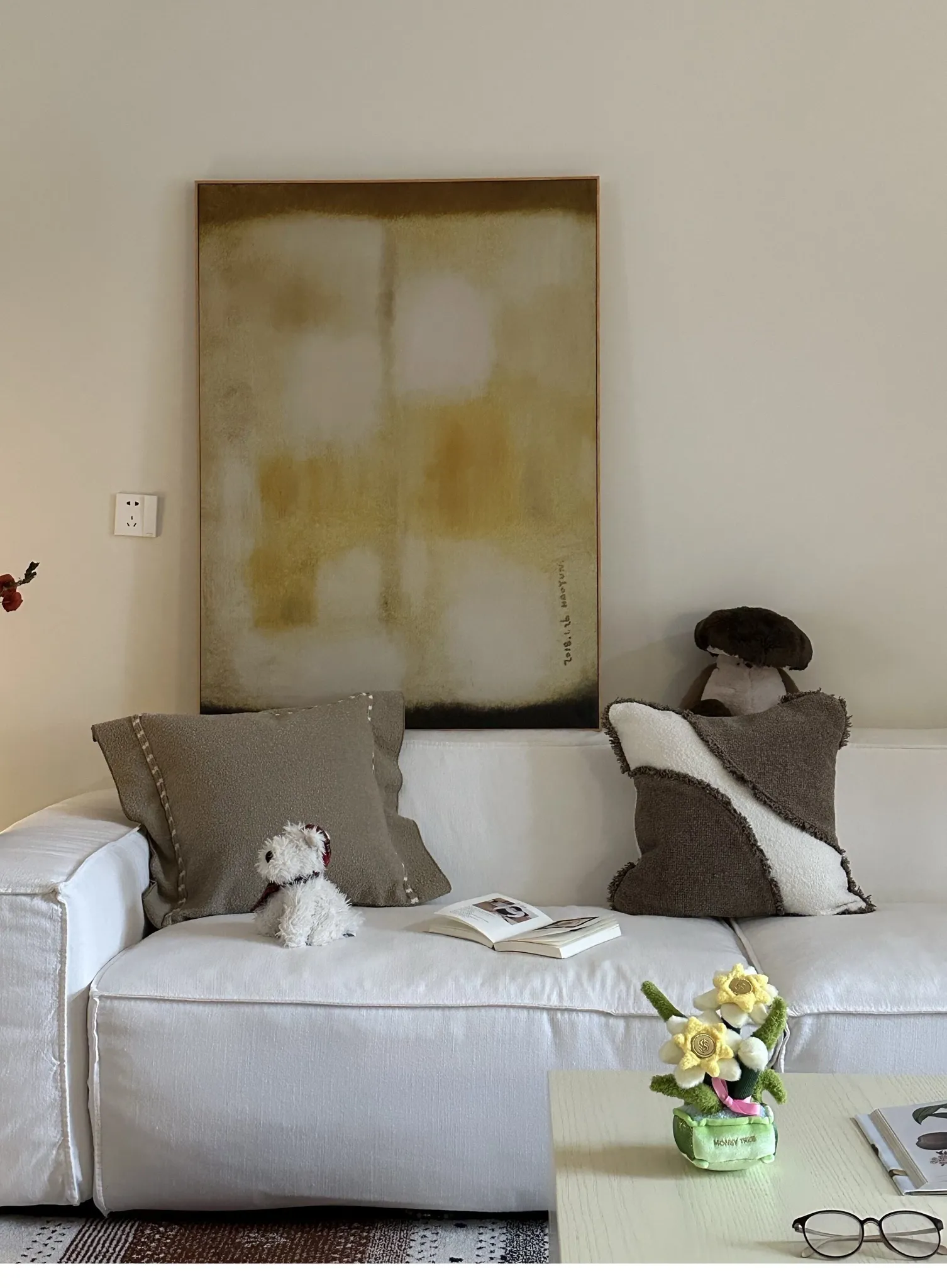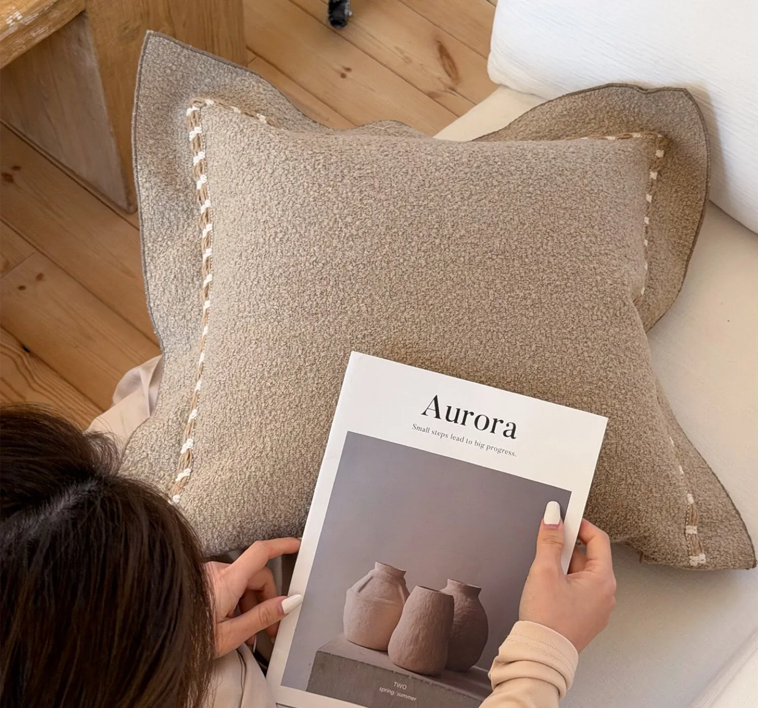 【モユ | ブラウンとホワイトのパッチワークテクスチャ】