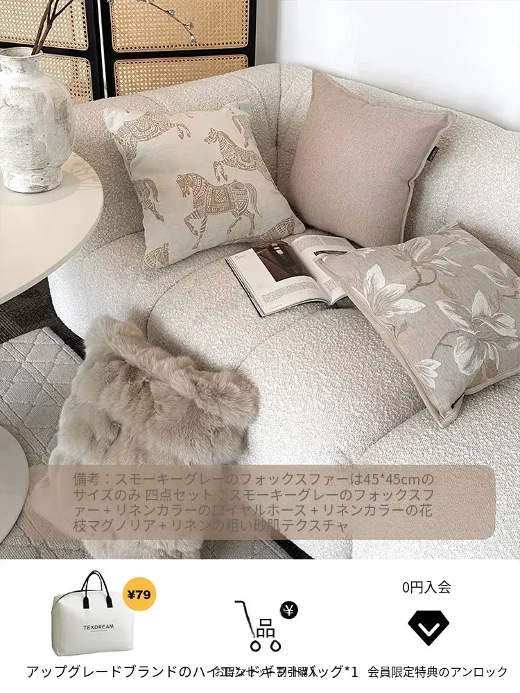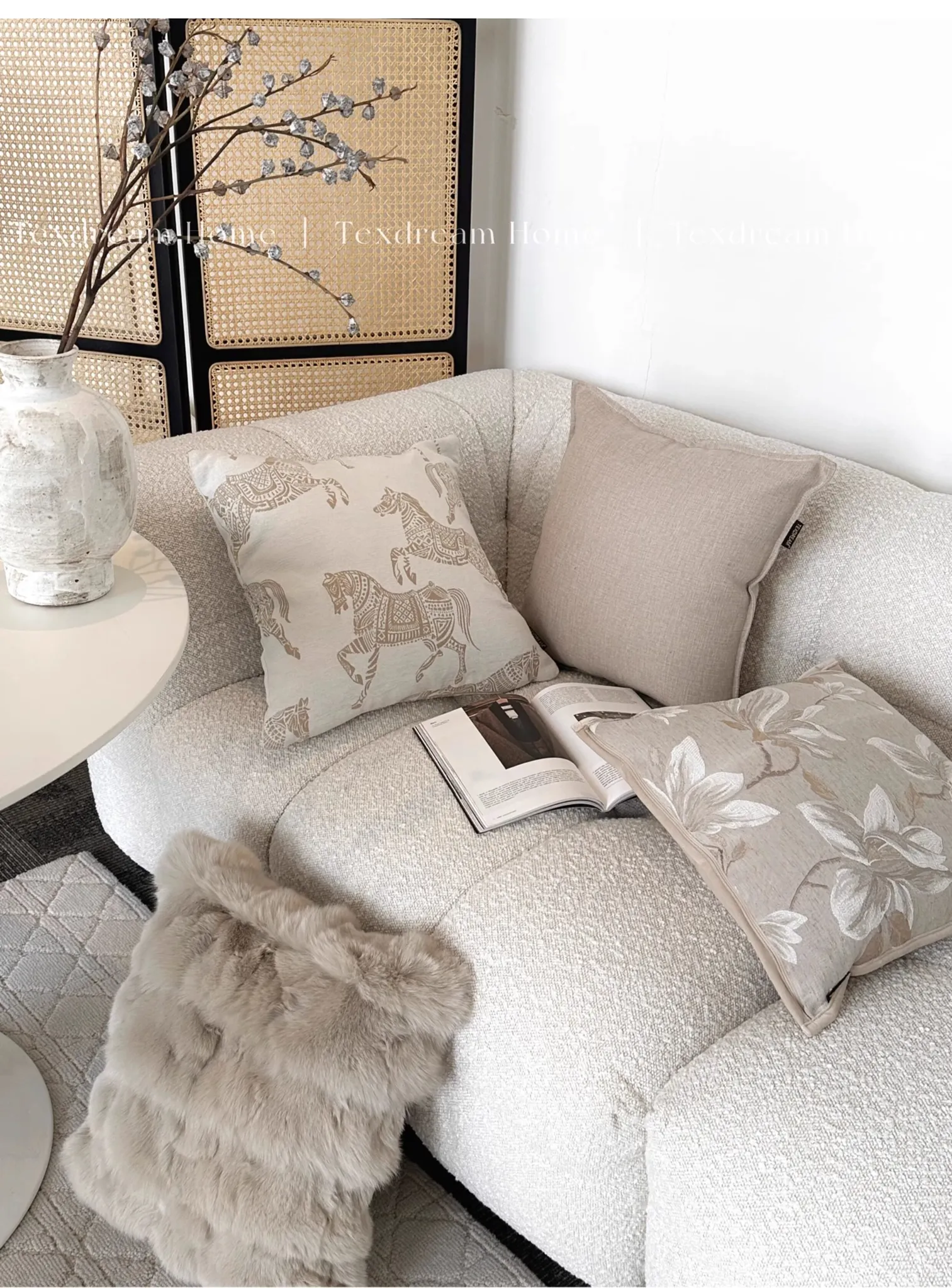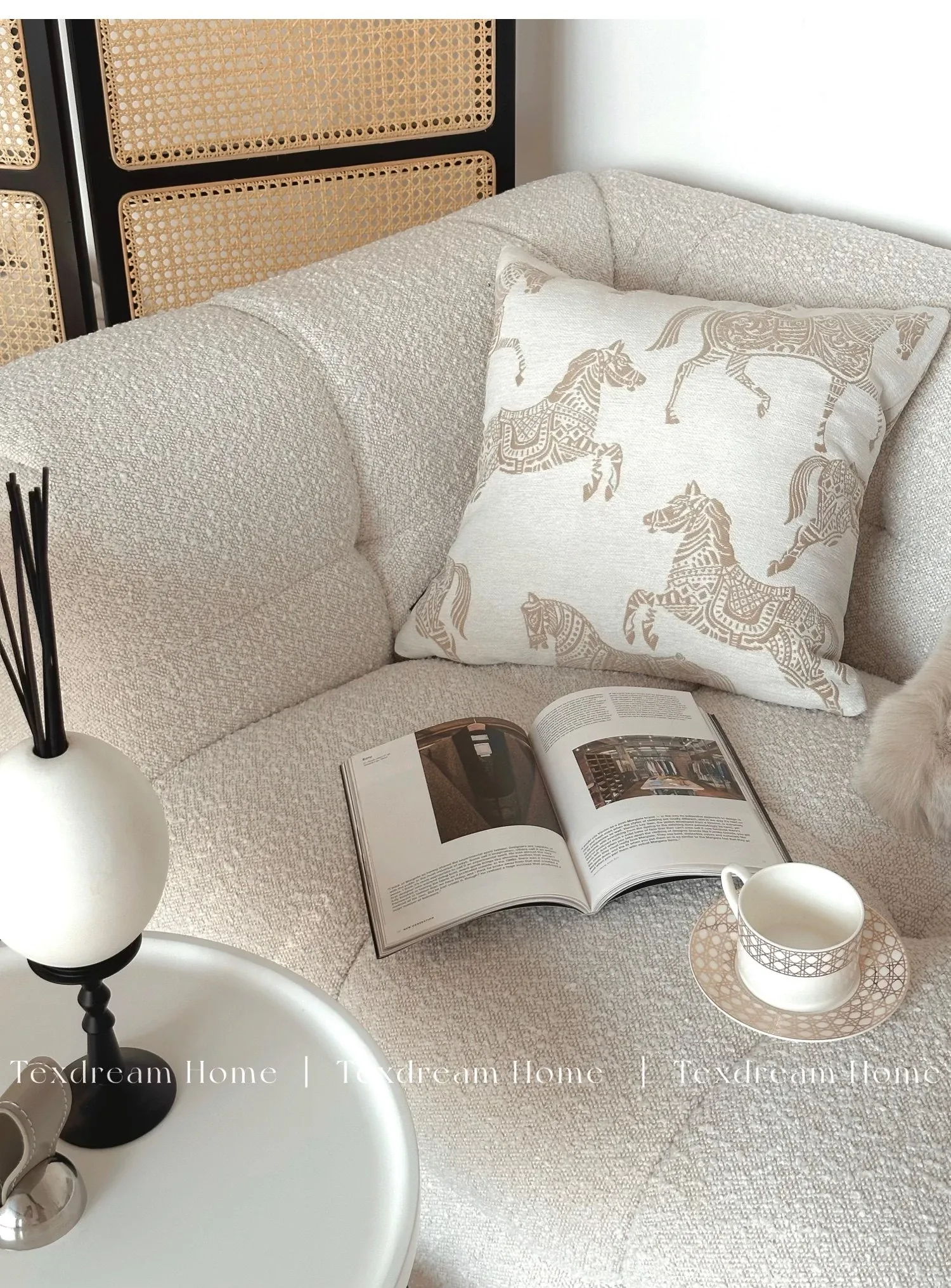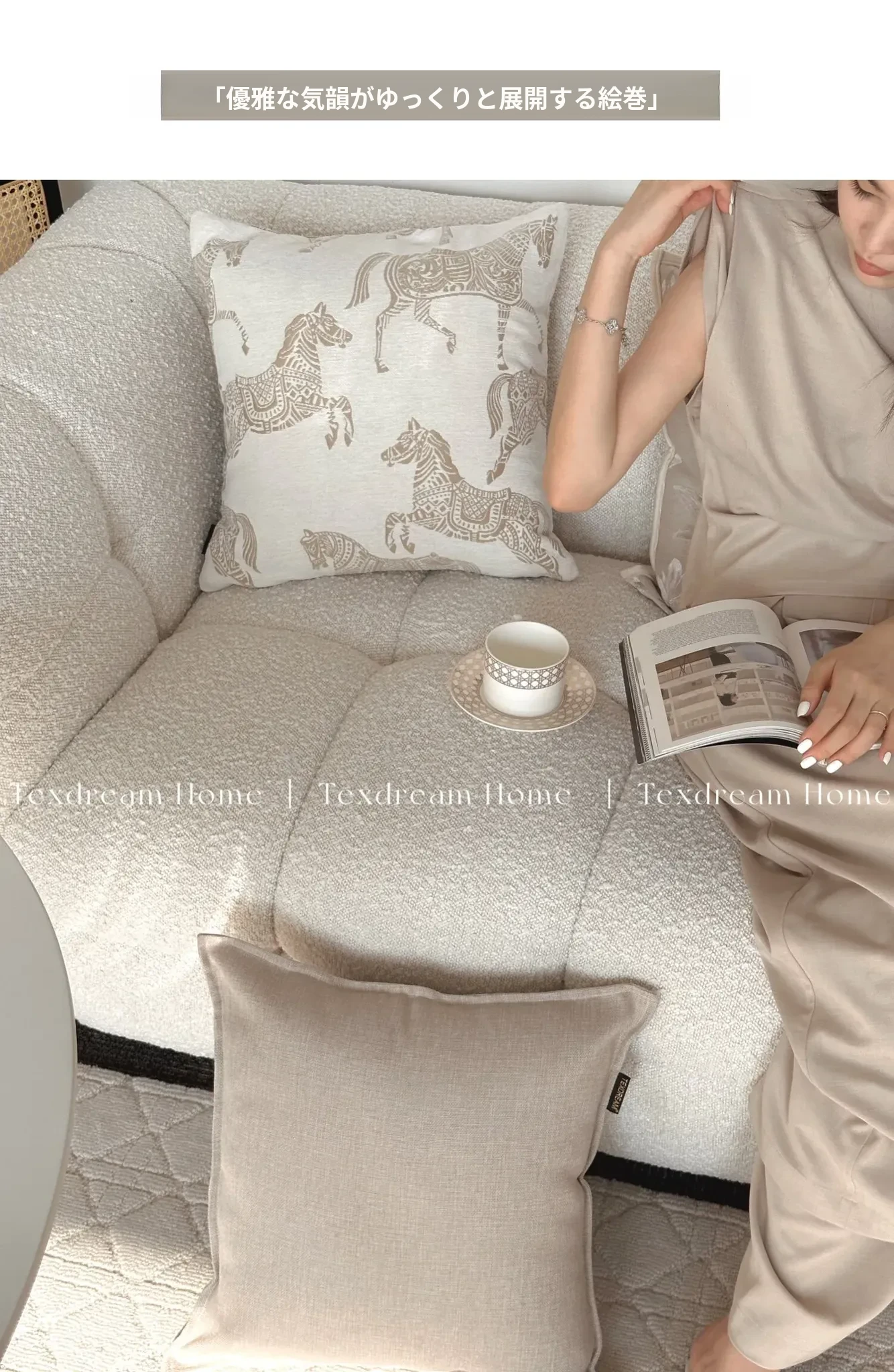Texdreamの侘寂風スタイル、シンプルな馬模様のソファクッション。インスタ風の軽やかなラグジュアリー、リビングやベッドサイドにぴったりの抱き枕カバー!快適さとスタイルを両立させた一品です。