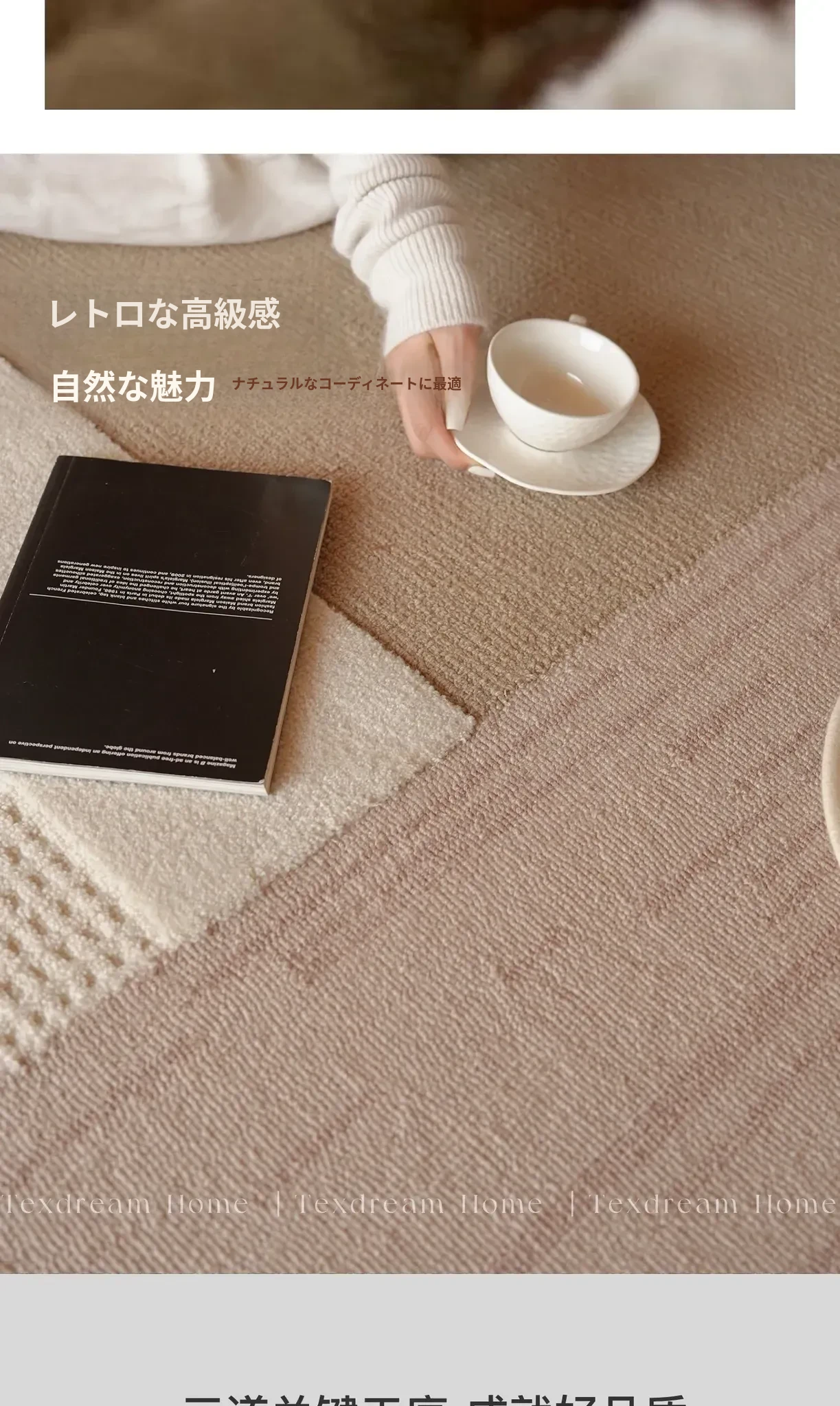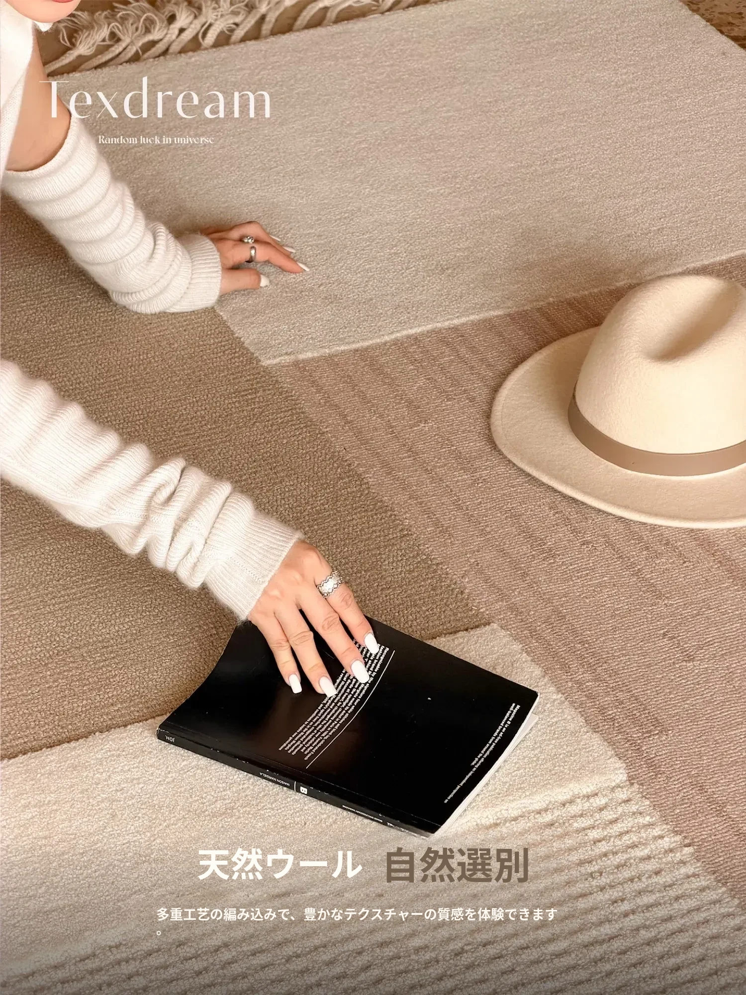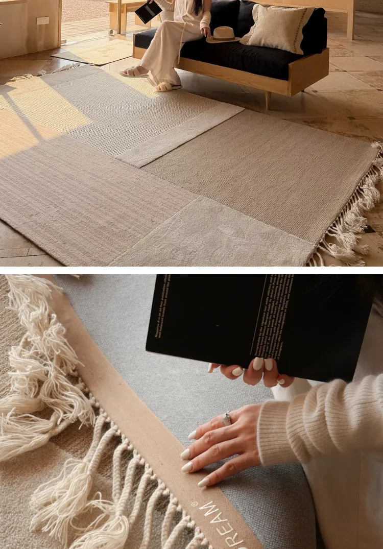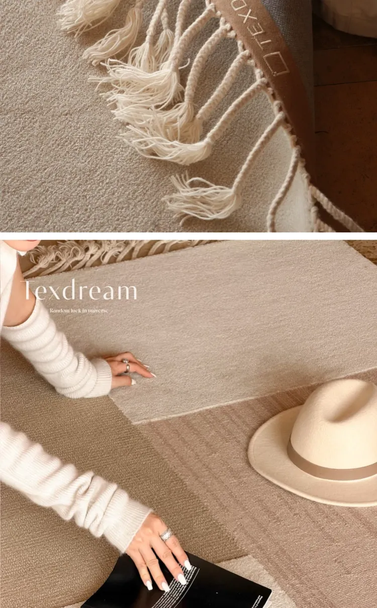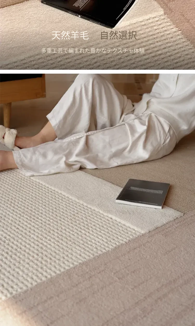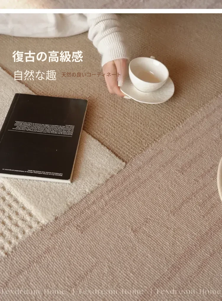 TEXDREAMのスタイルを感じる!侘寂風のウールラグ、フランス風のリビングソファマットとしても、寝室のベッドサイドにも最適。おしゃれで温かみのある空間を演出する、贅沢な一枚をお楽しみください。