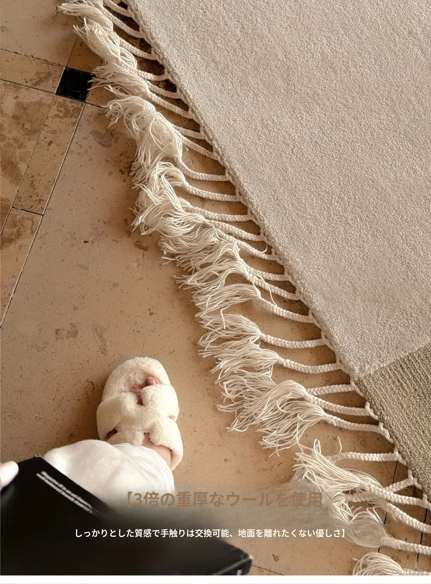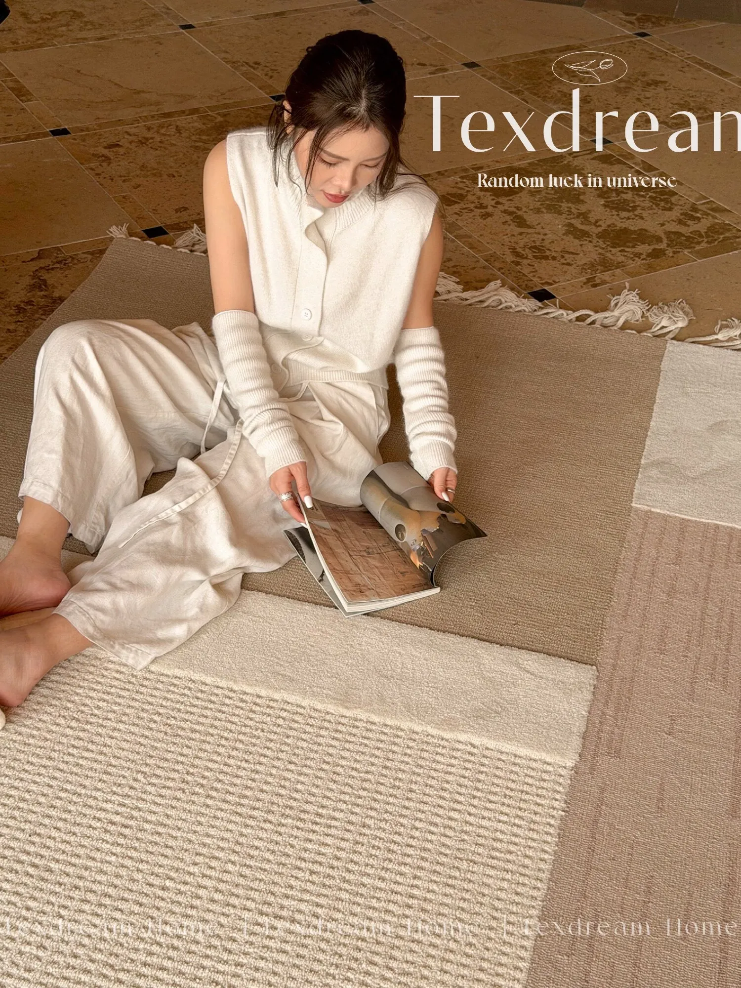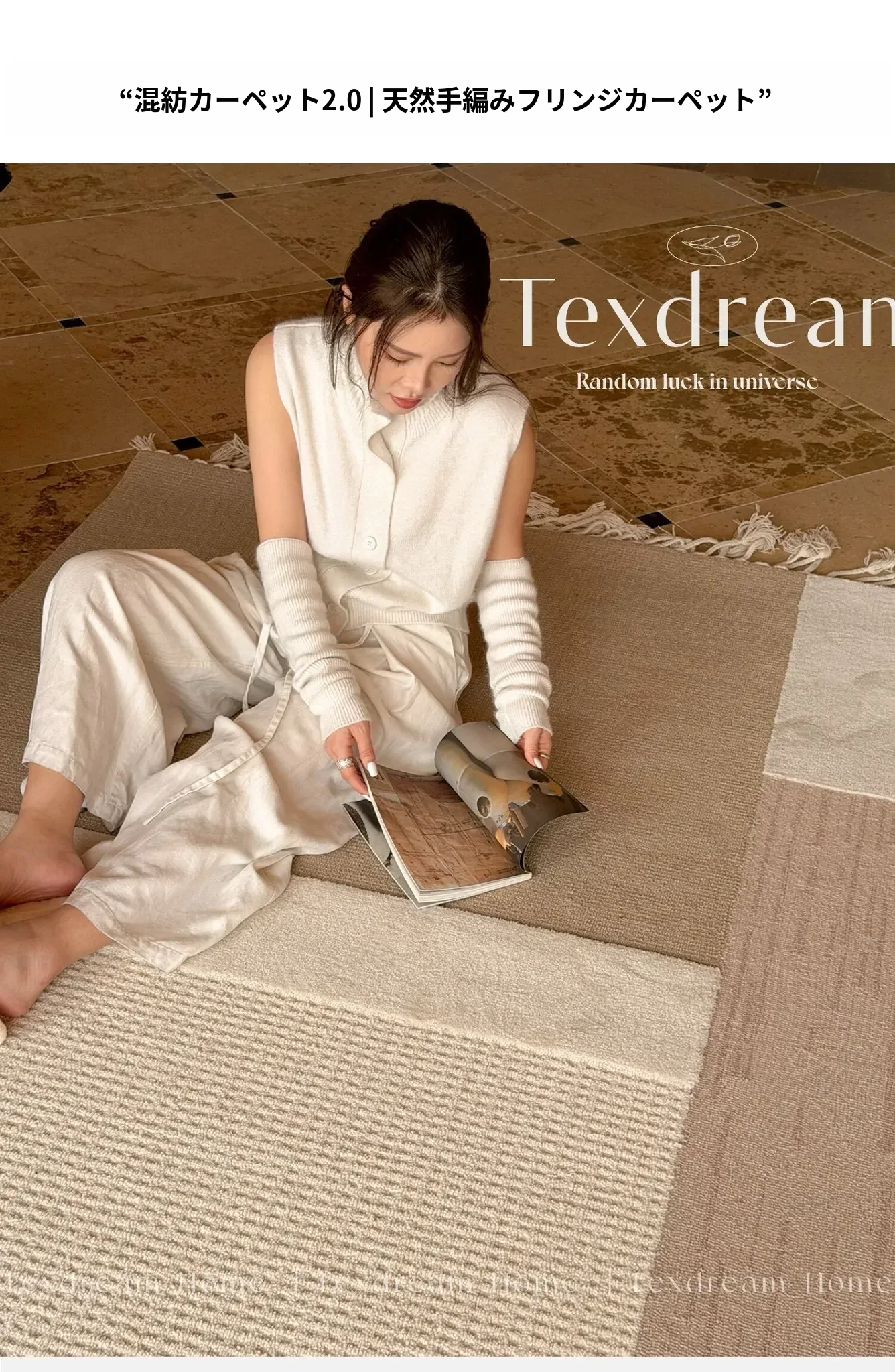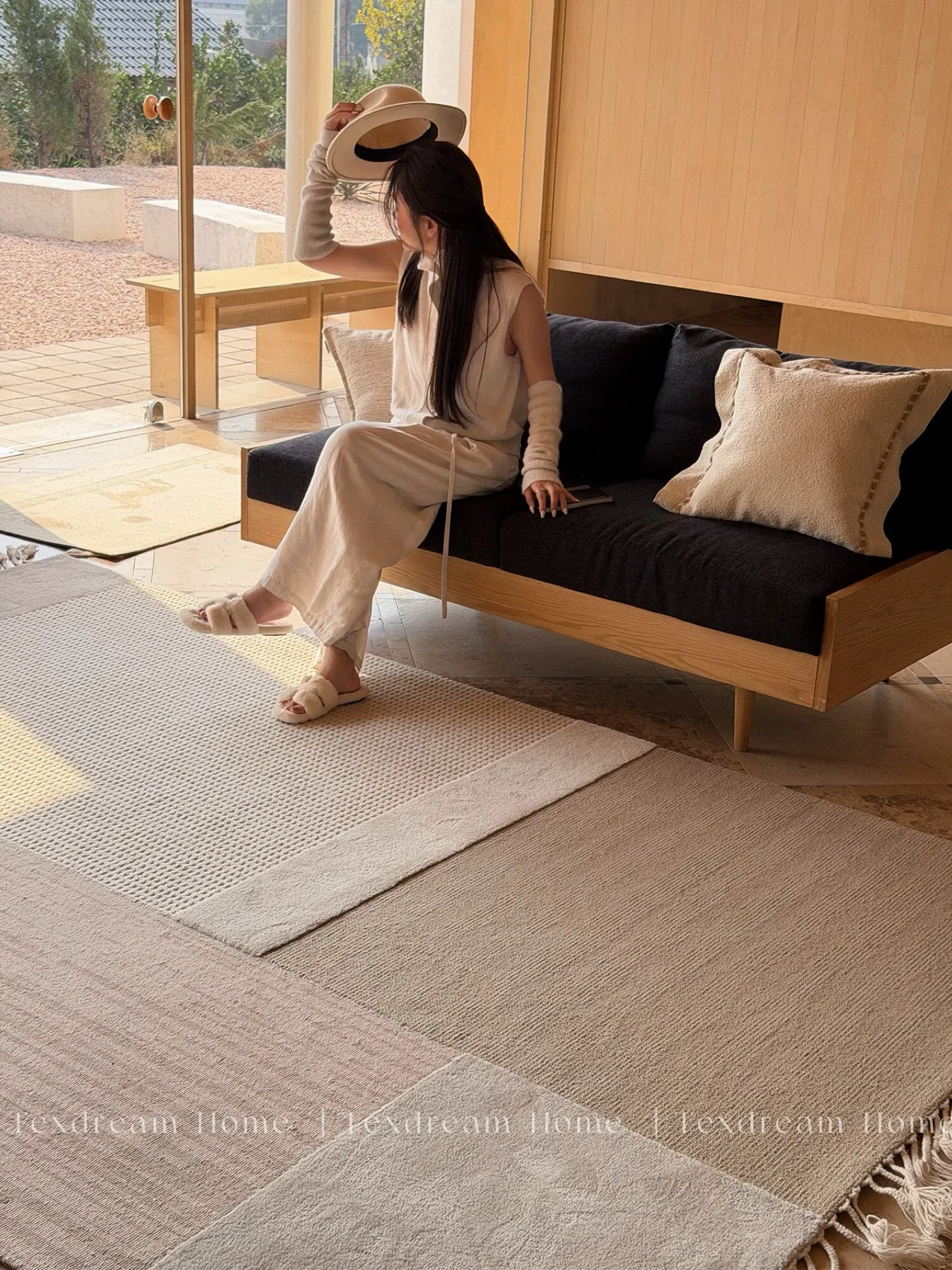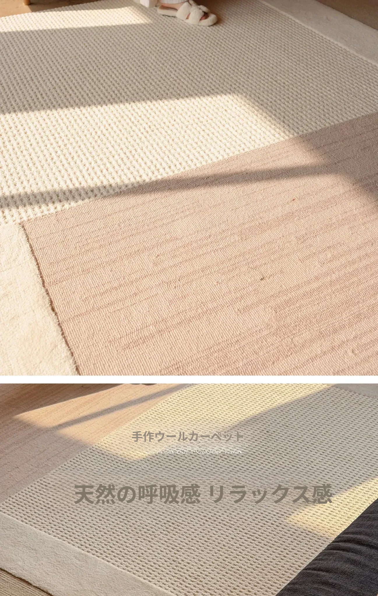 TEXDREAMのスタイルを感じる!侘寂風のウールラグ、フランス風のリビングソファマットとしても、寝室のベッドサイドにも最適。おしゃれで温かみのある空間を演出する、贅沢な一枚をお楽しみください。
