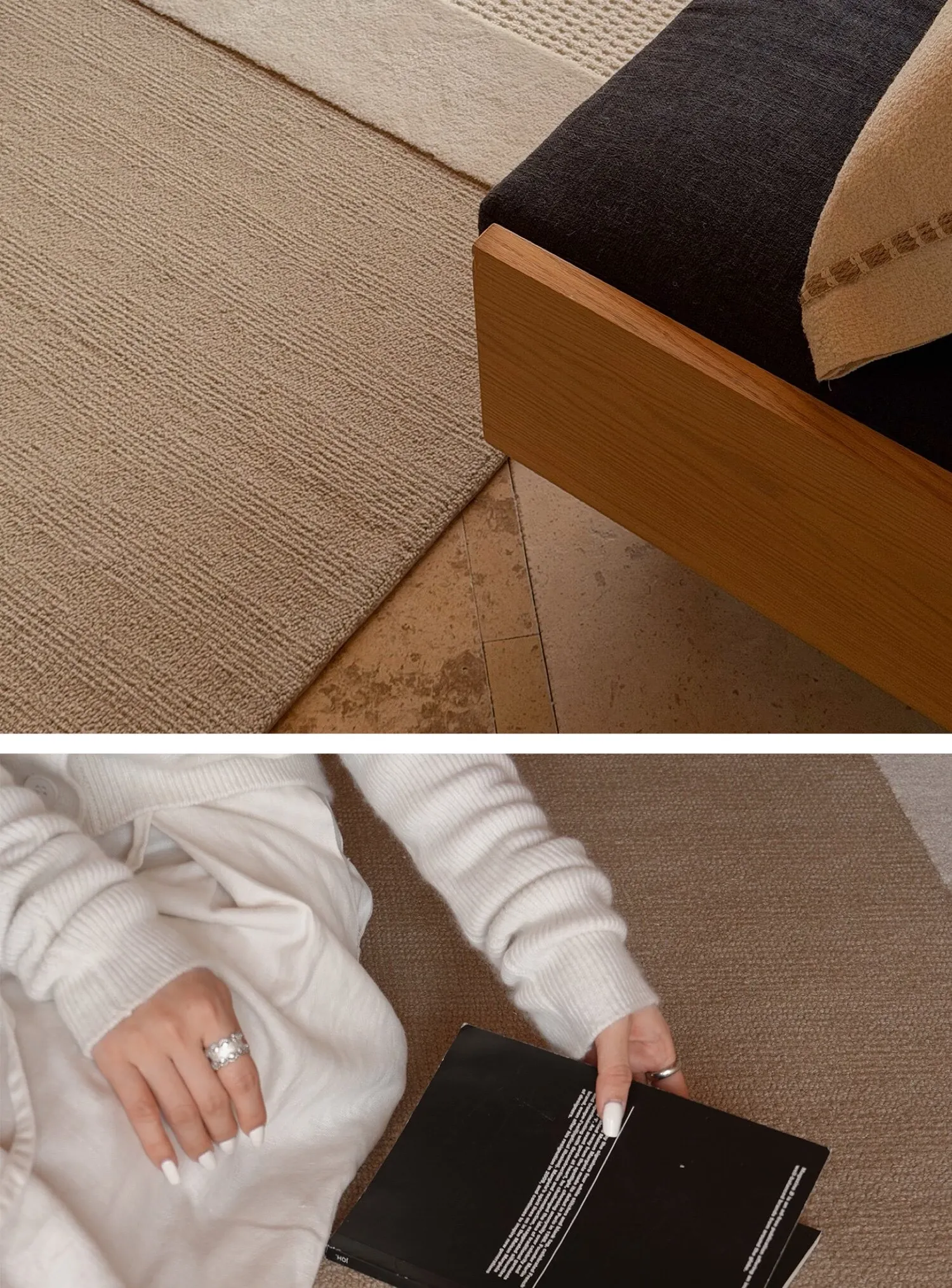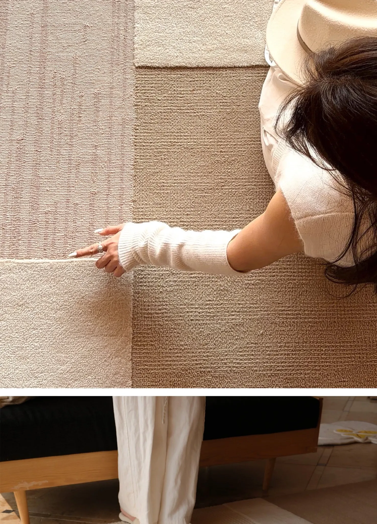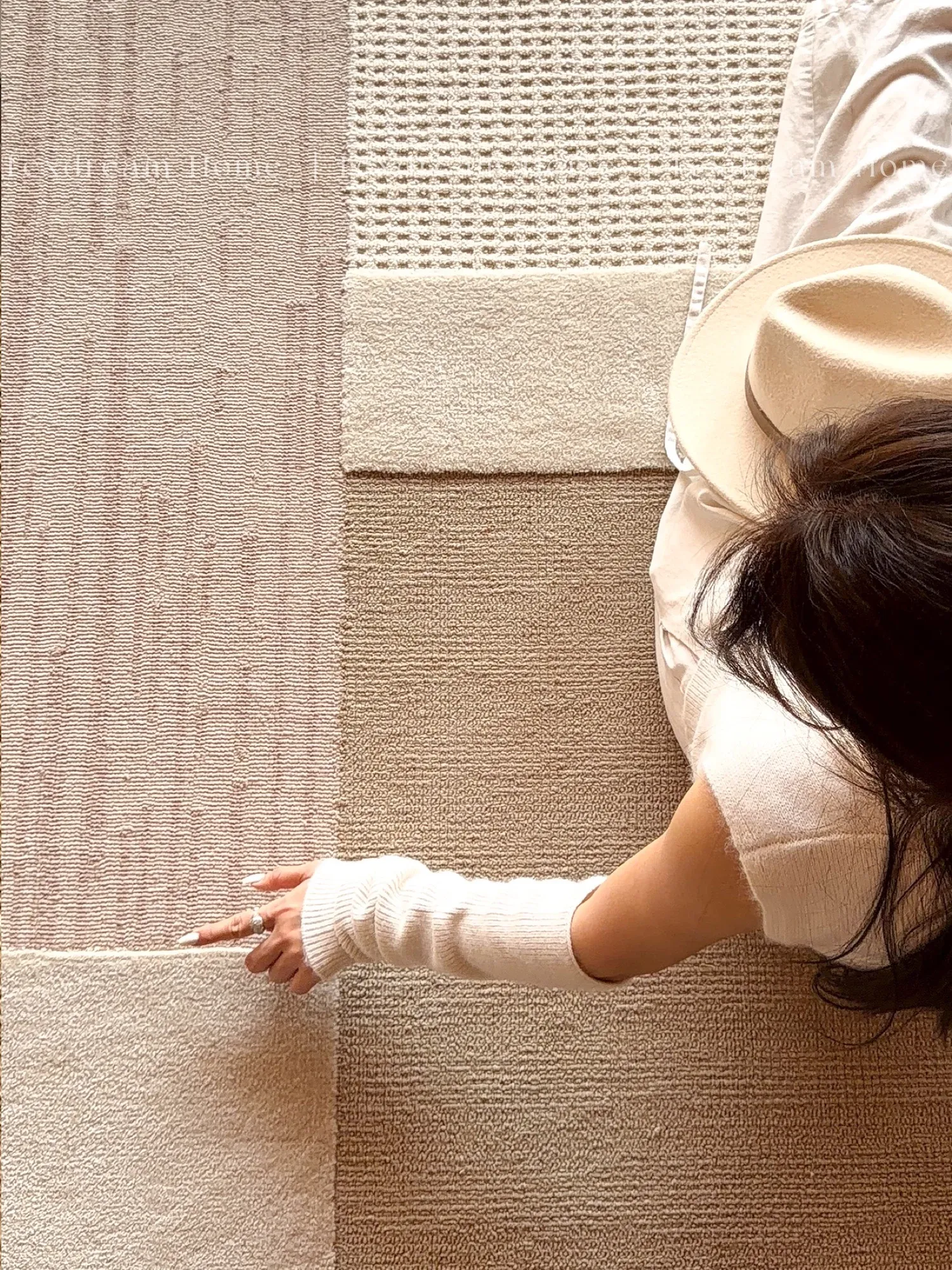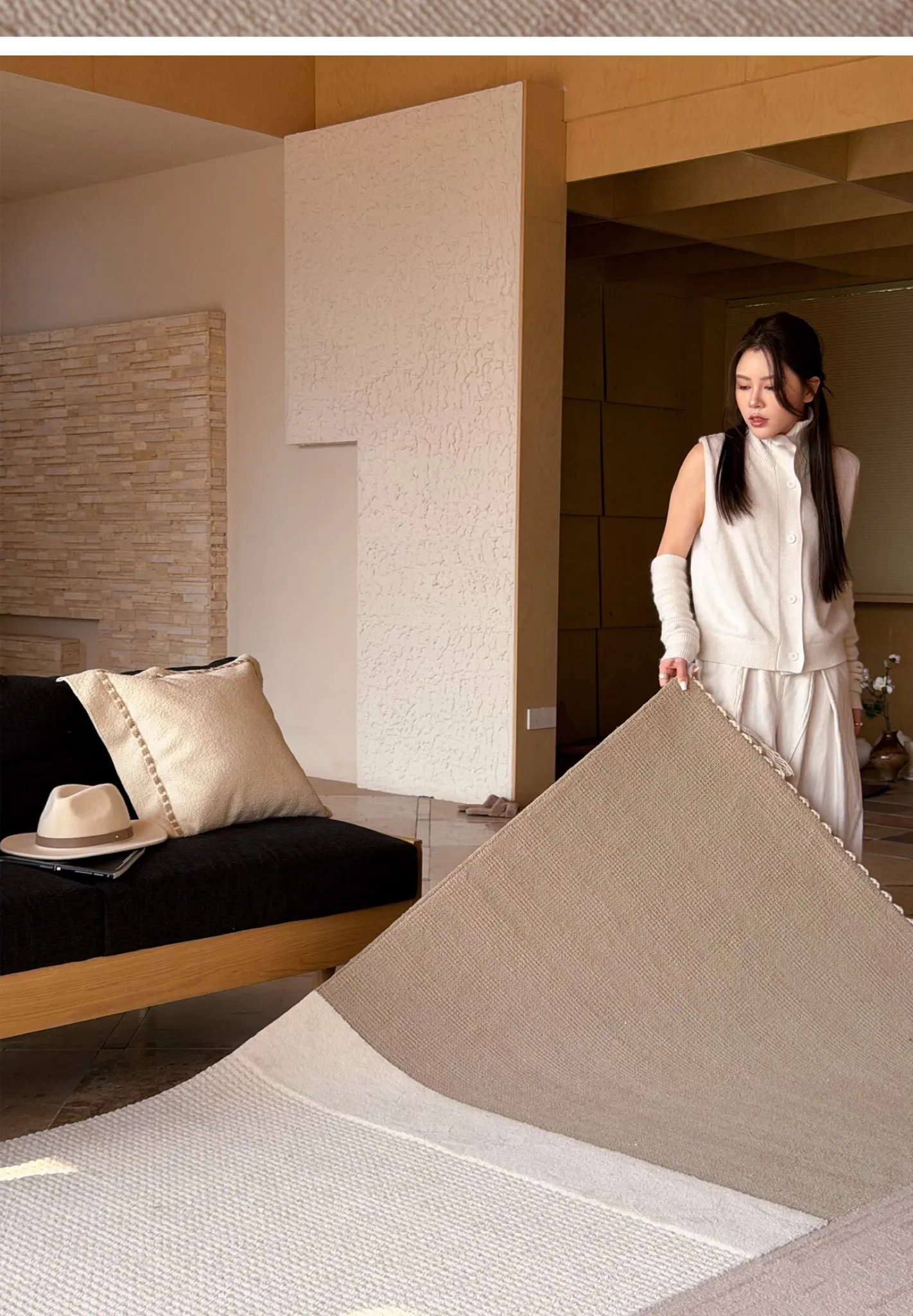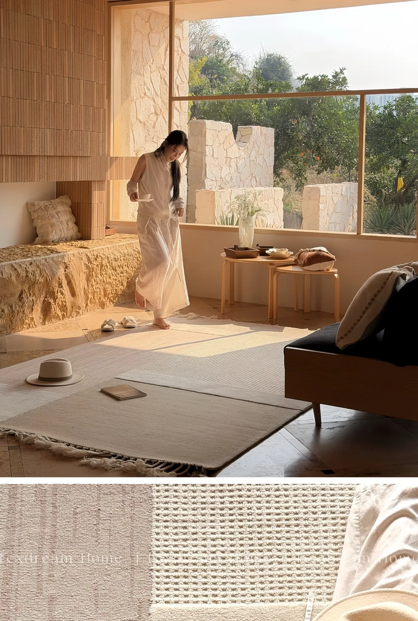 TEXDREAMのスタイルを感じる!侘寂風のウールラグ、フランス風のリビングソファマットとしても、寝室のベッドサイドにも最適。おしゃれで温かみのある空間を演出する、贅沢な一枚をお楽しみください。