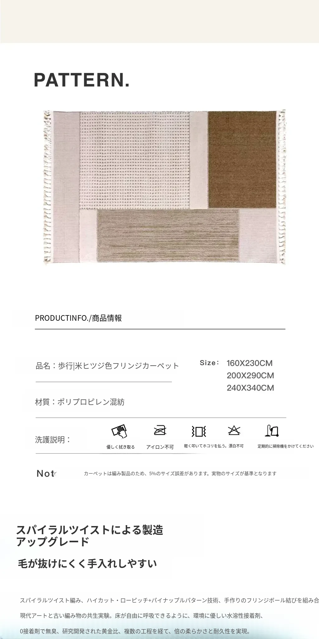 歩行|米トラ色フリンジウールカーペット
