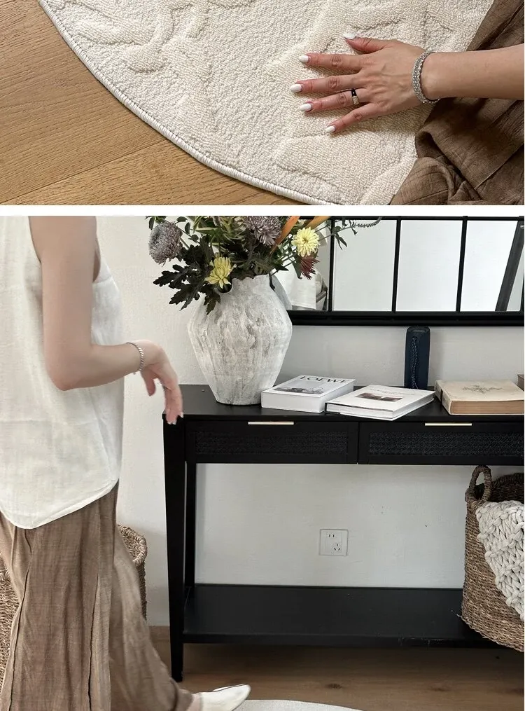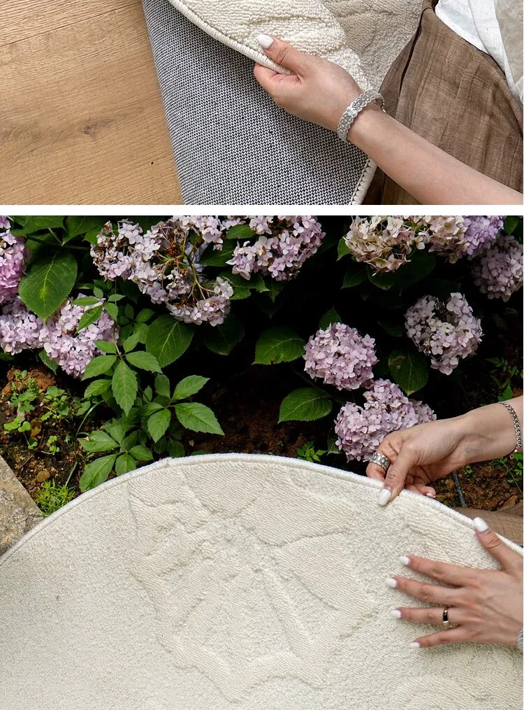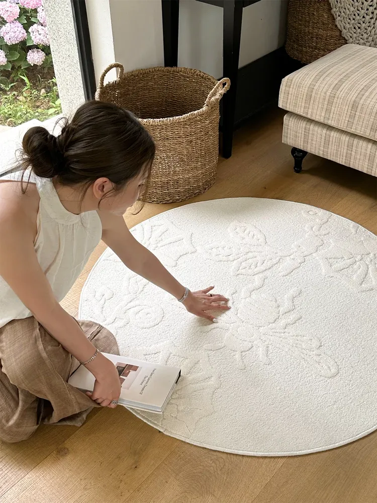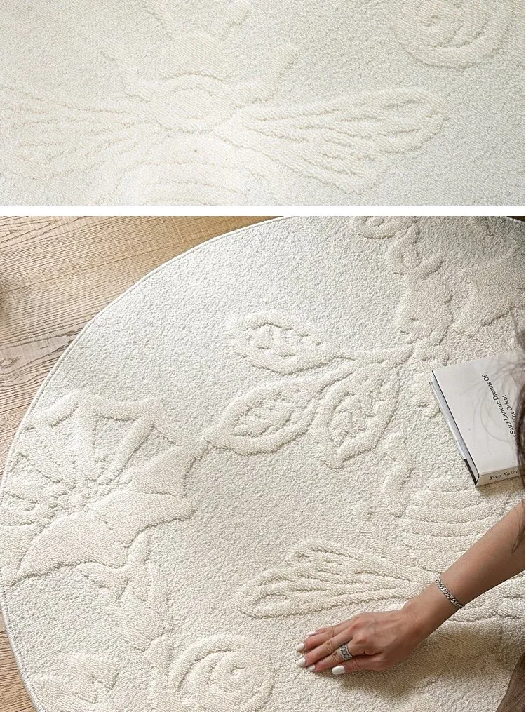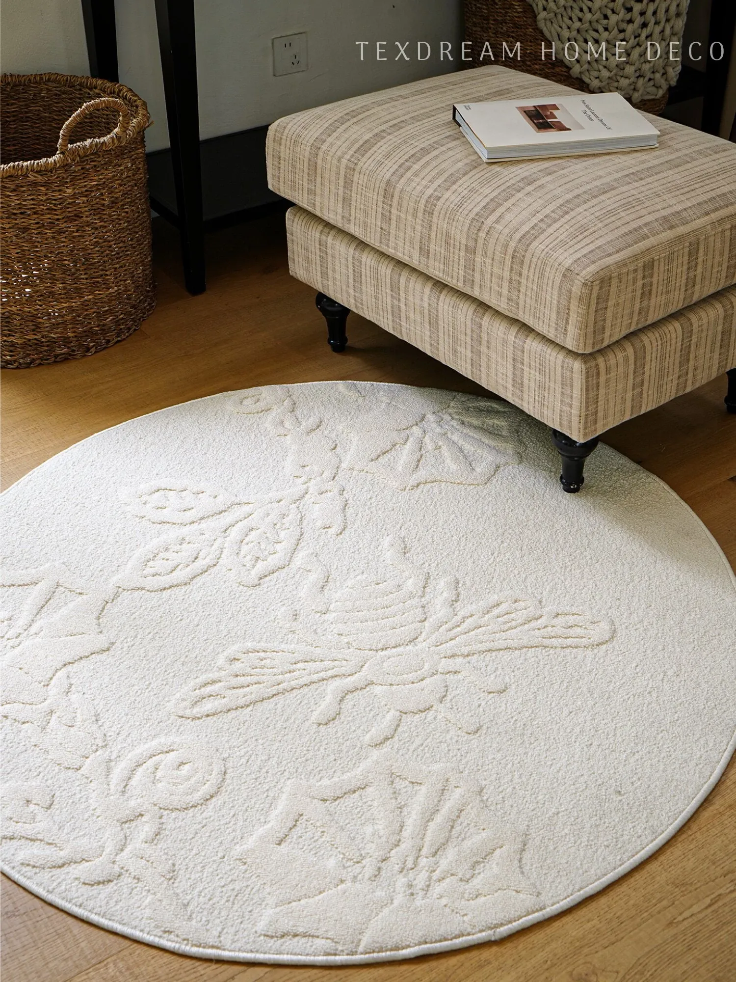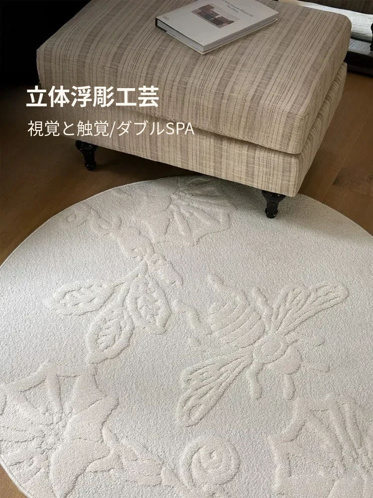 TEXDREAM 小蜜蜂デザインの浮彫ラグ - フランス風の丸型、クローゼットやチェアに最適!おしゃれで耐汚れ、音を吸収する機能性マット。ベッドサイドにぴったりのアイテム!