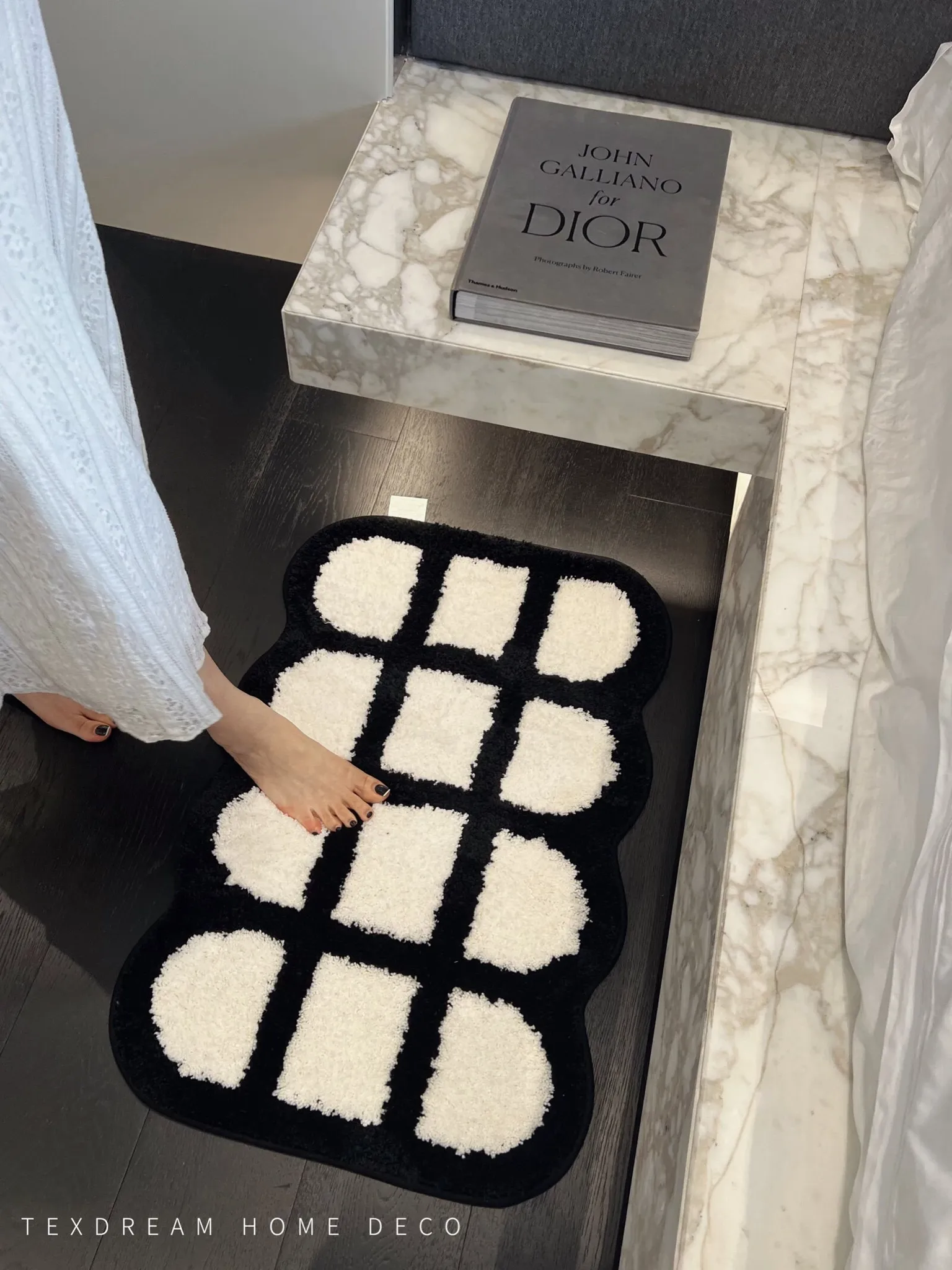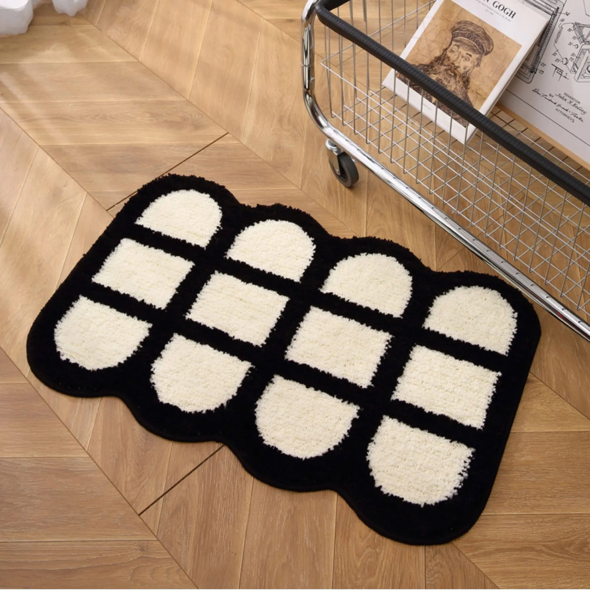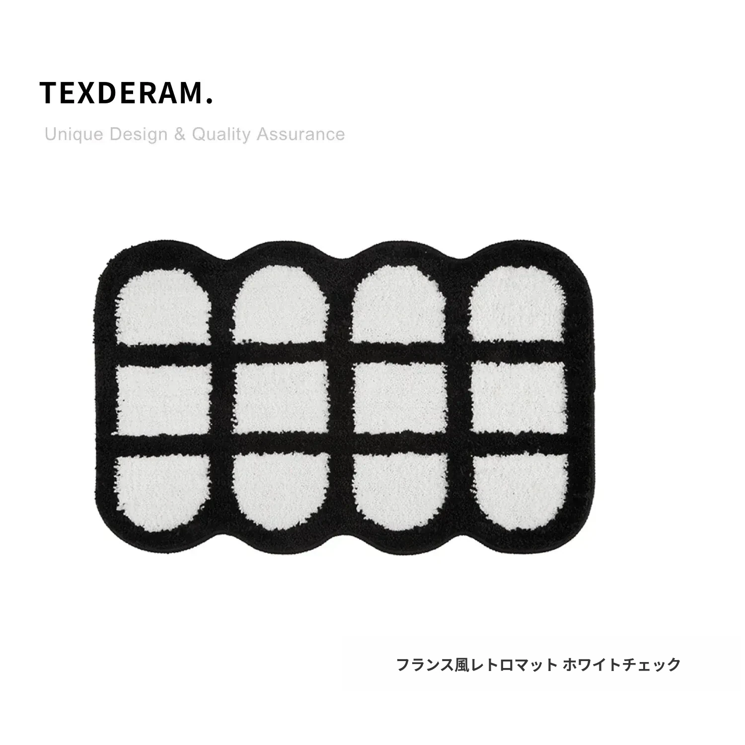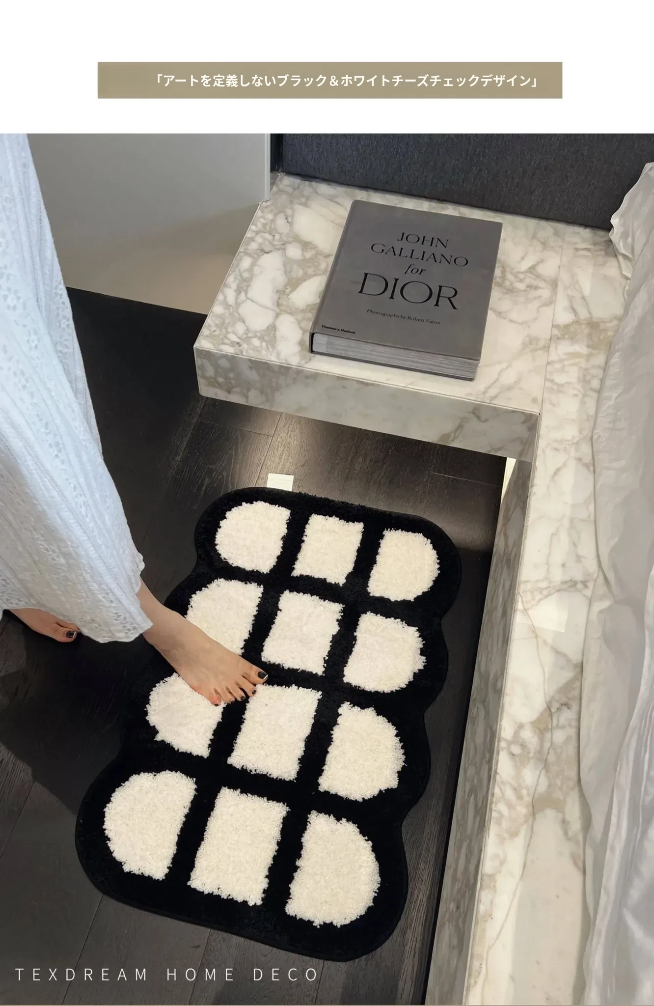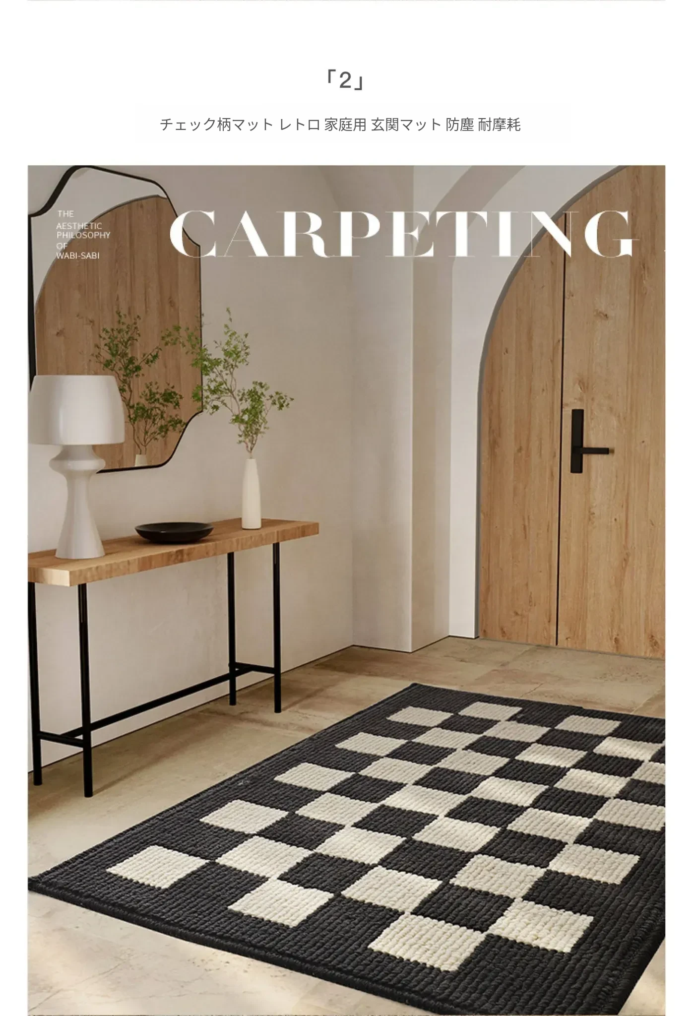 Texdreamのスタイリッシュなブラック&ホワイトチーズチェック玄関マット - 汚れに強く、耐久性抜群の家庭用フロアマットで、あなたのエントランスをおしゃれに演出!