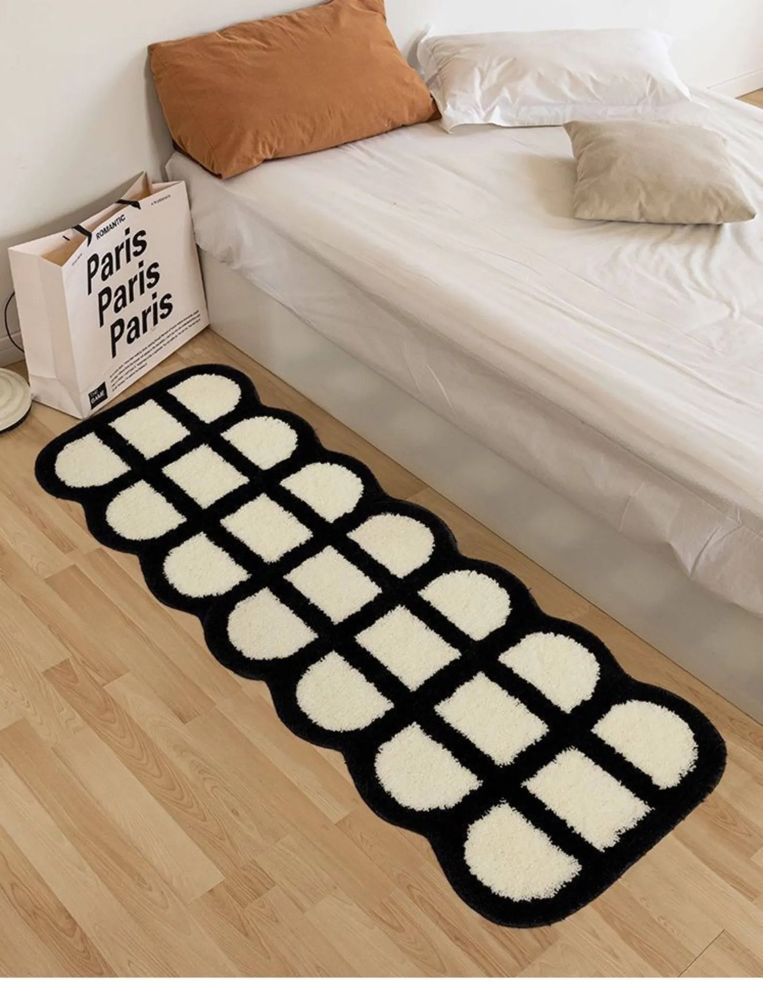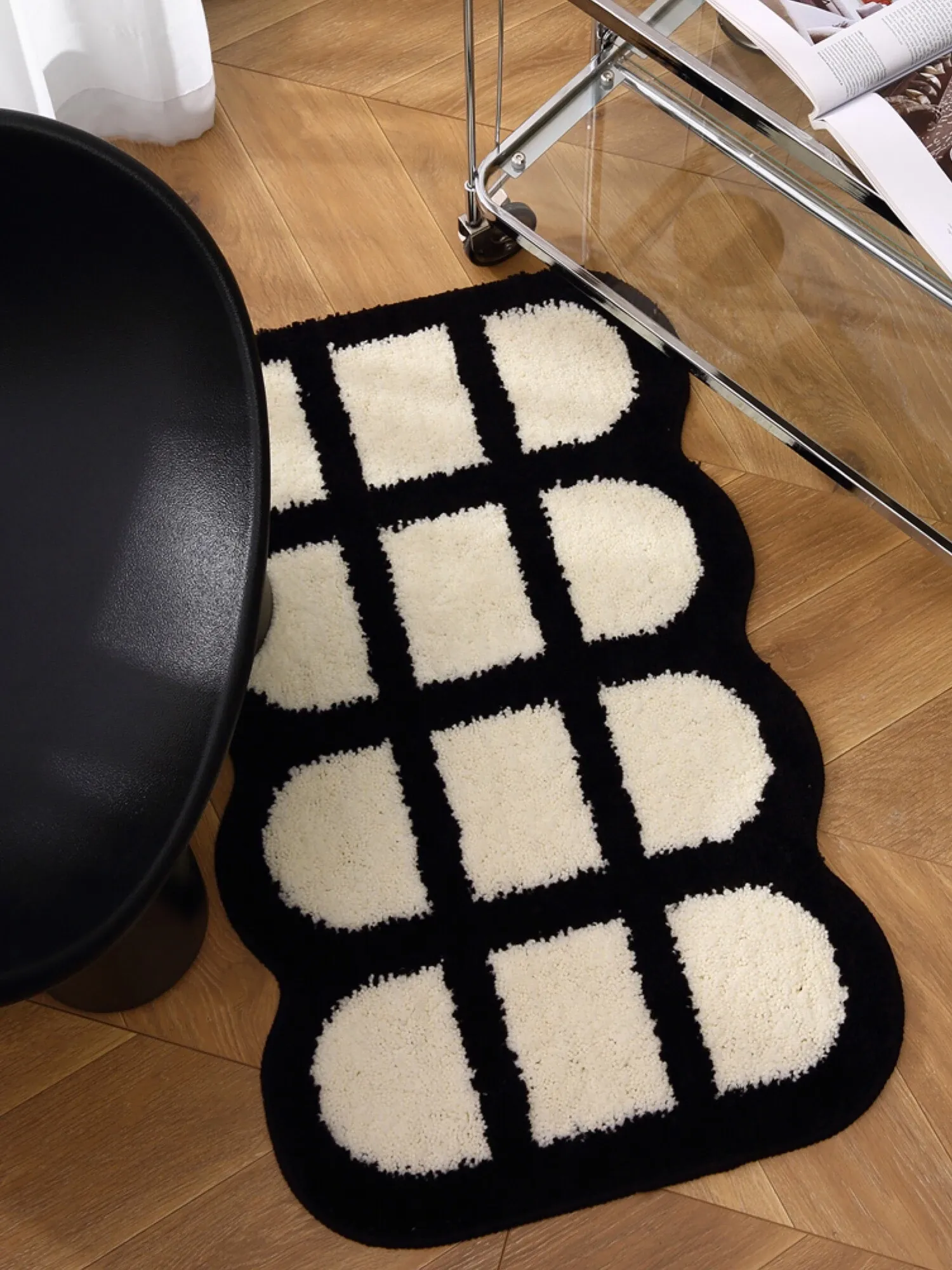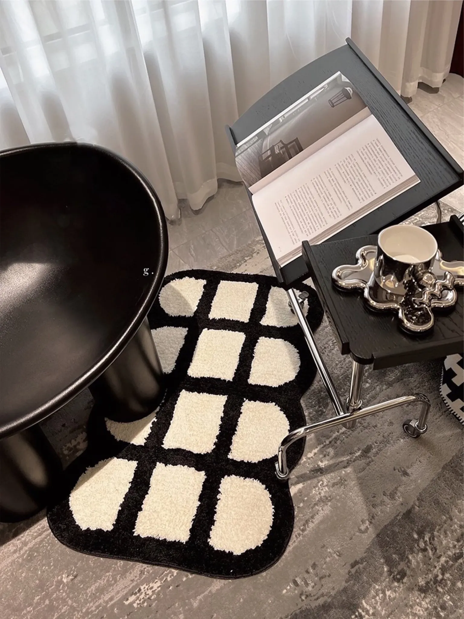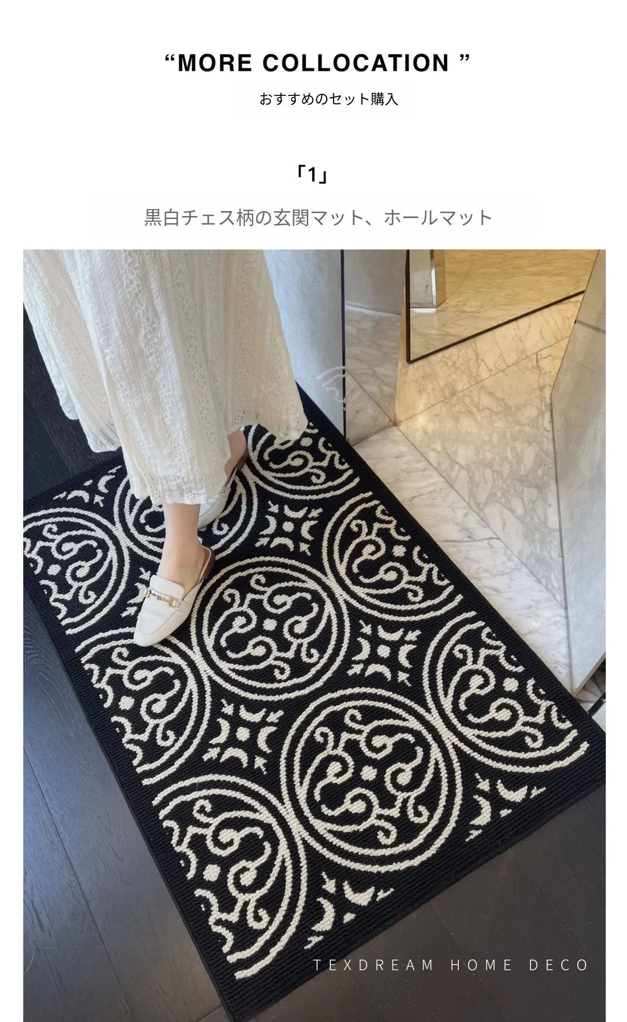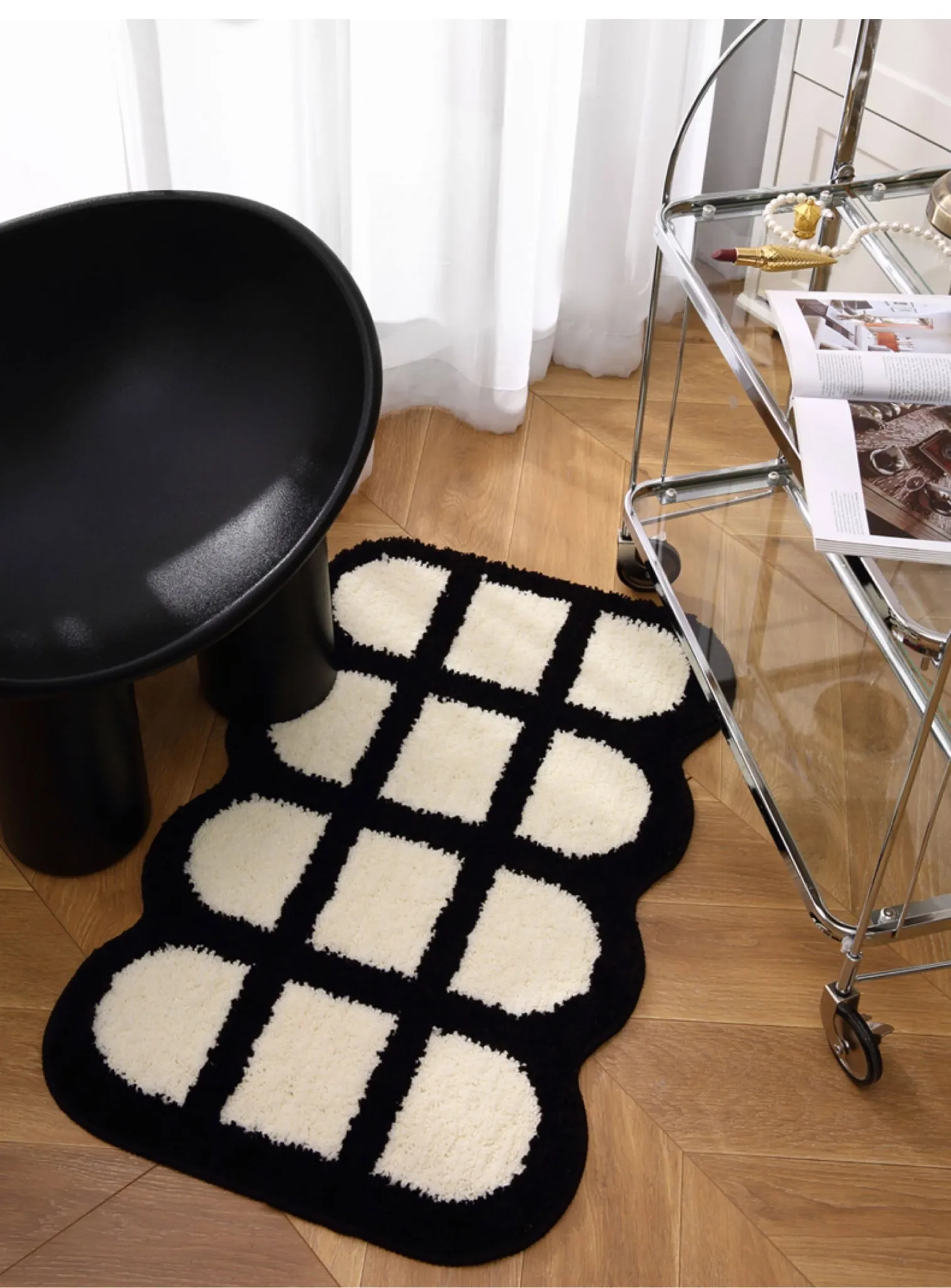 Texdreamのスタイリッシュなブラック&ホワイトチーズチェック玄関マット - 汚れに強く、耐久性抜群の家庭用フロアマットで、あなたのエントランスをおしゃれに演出!