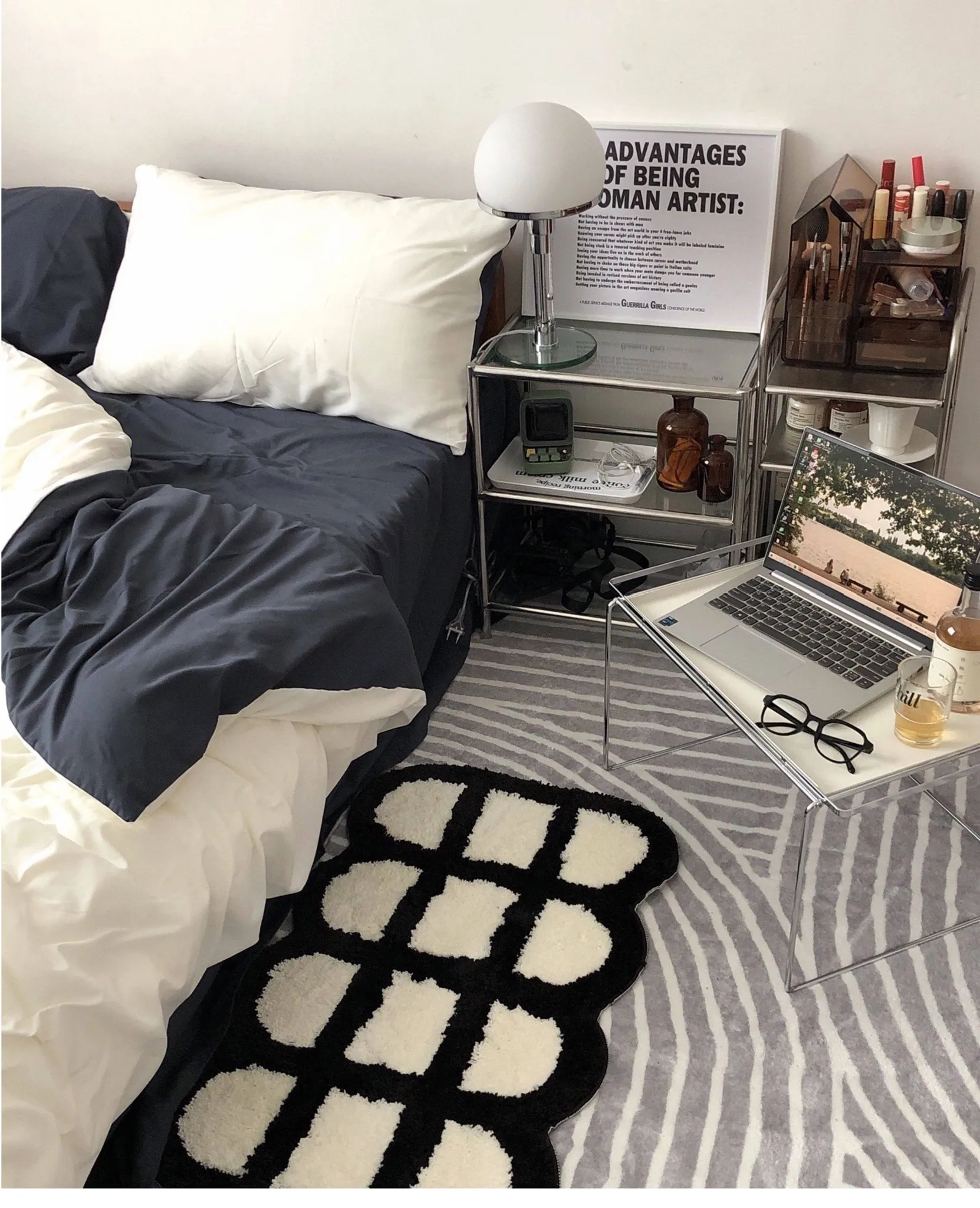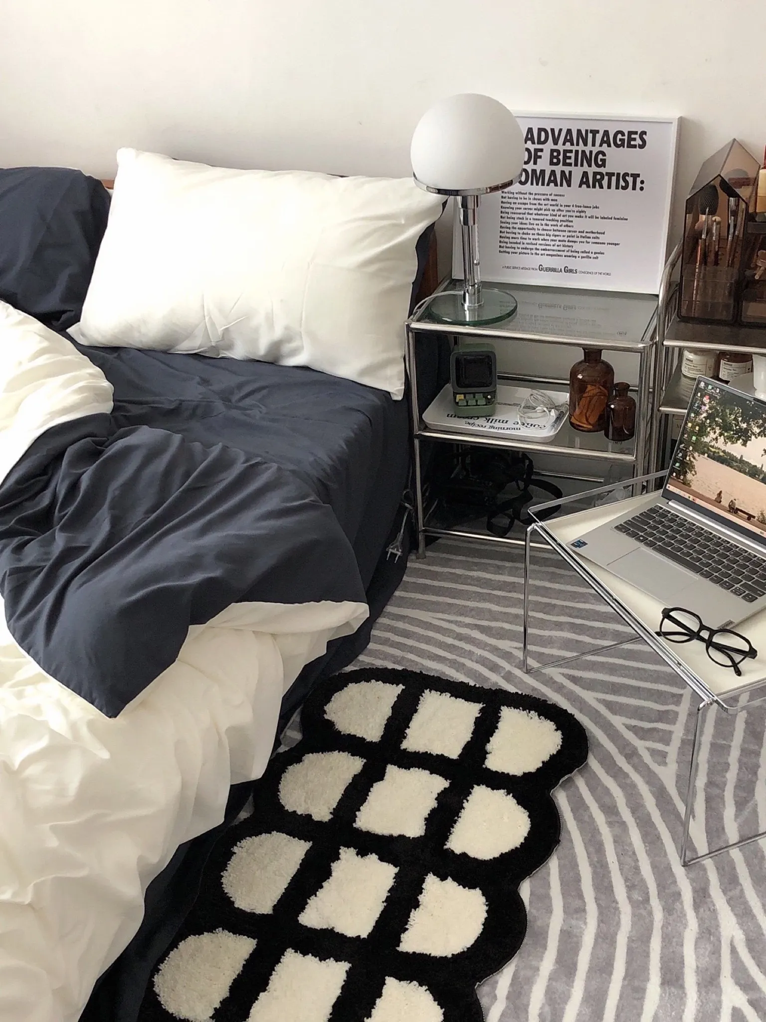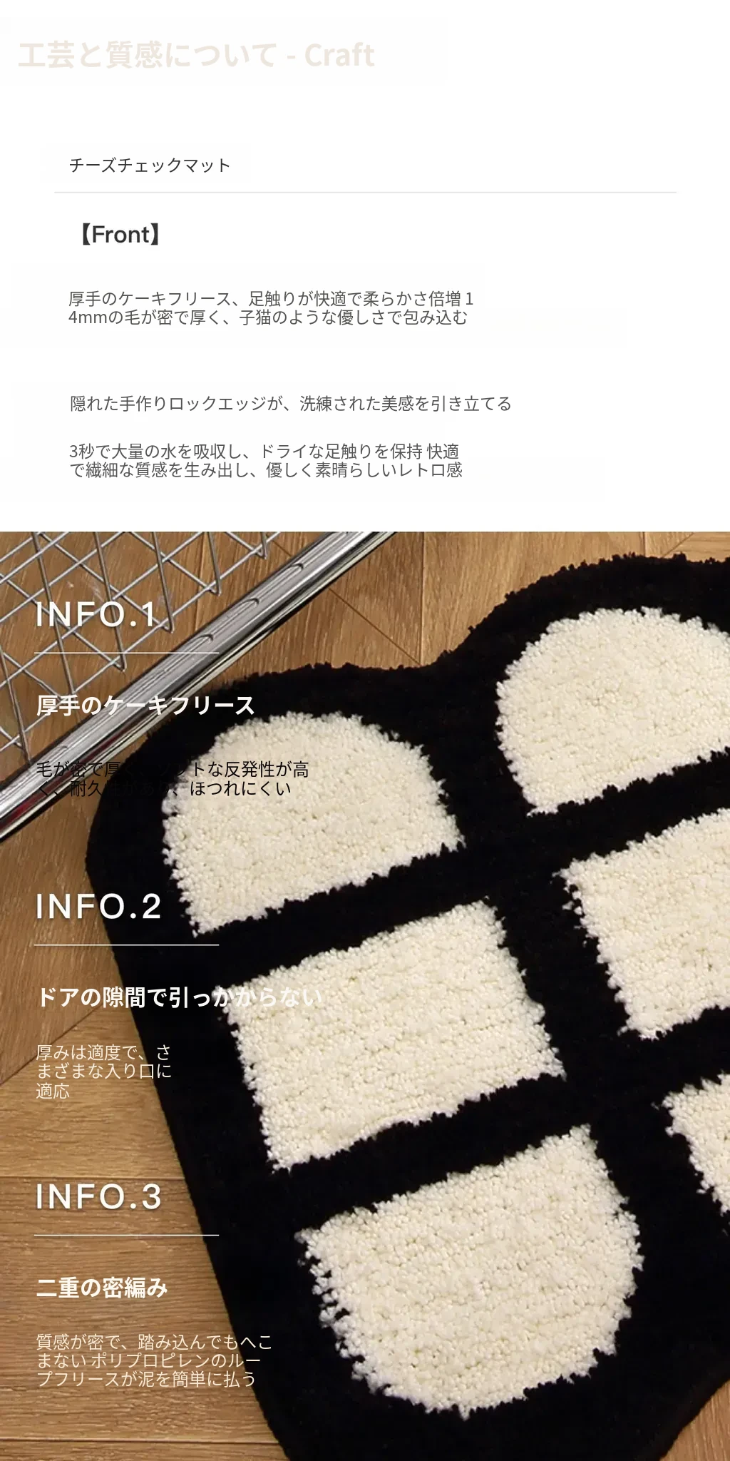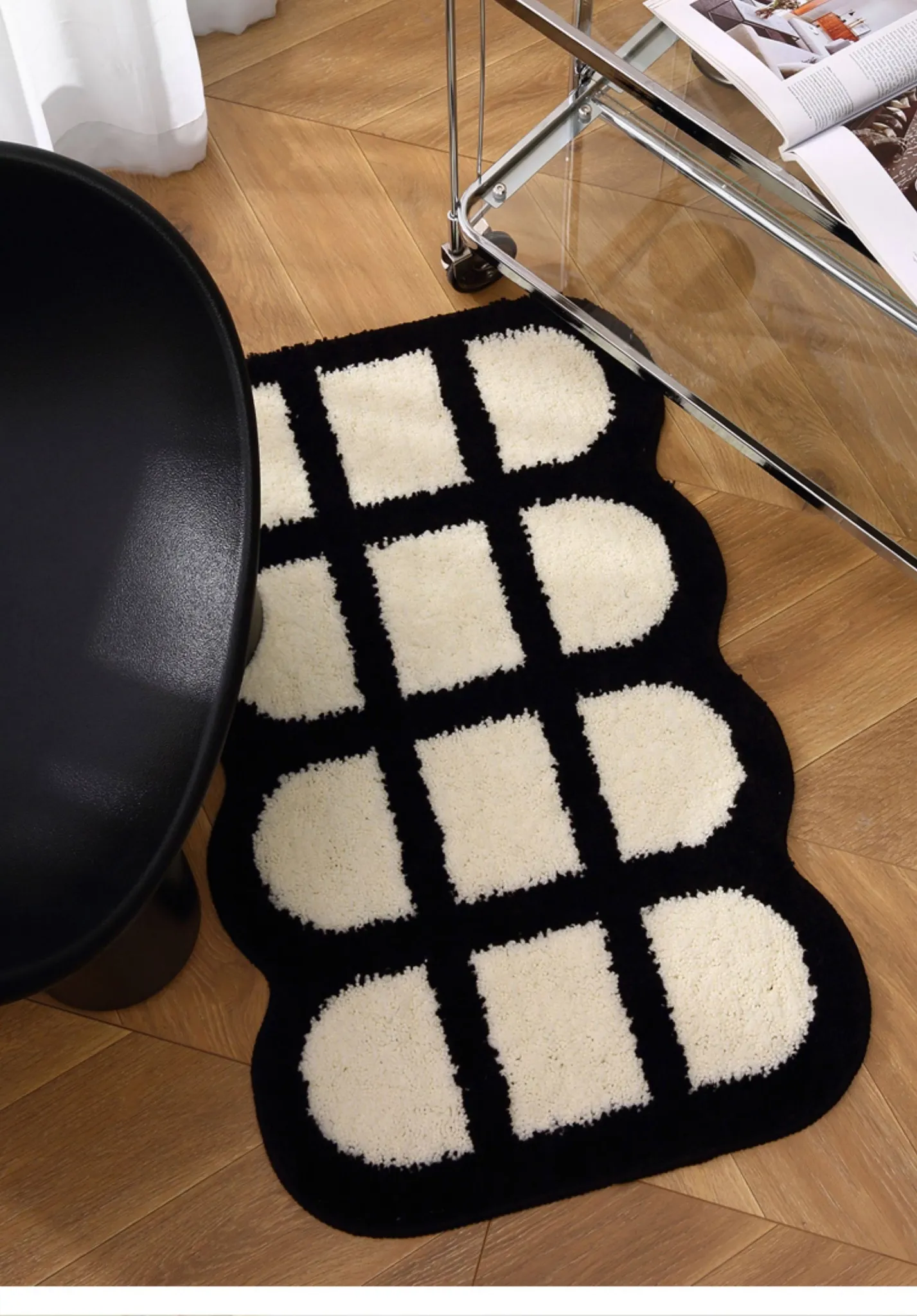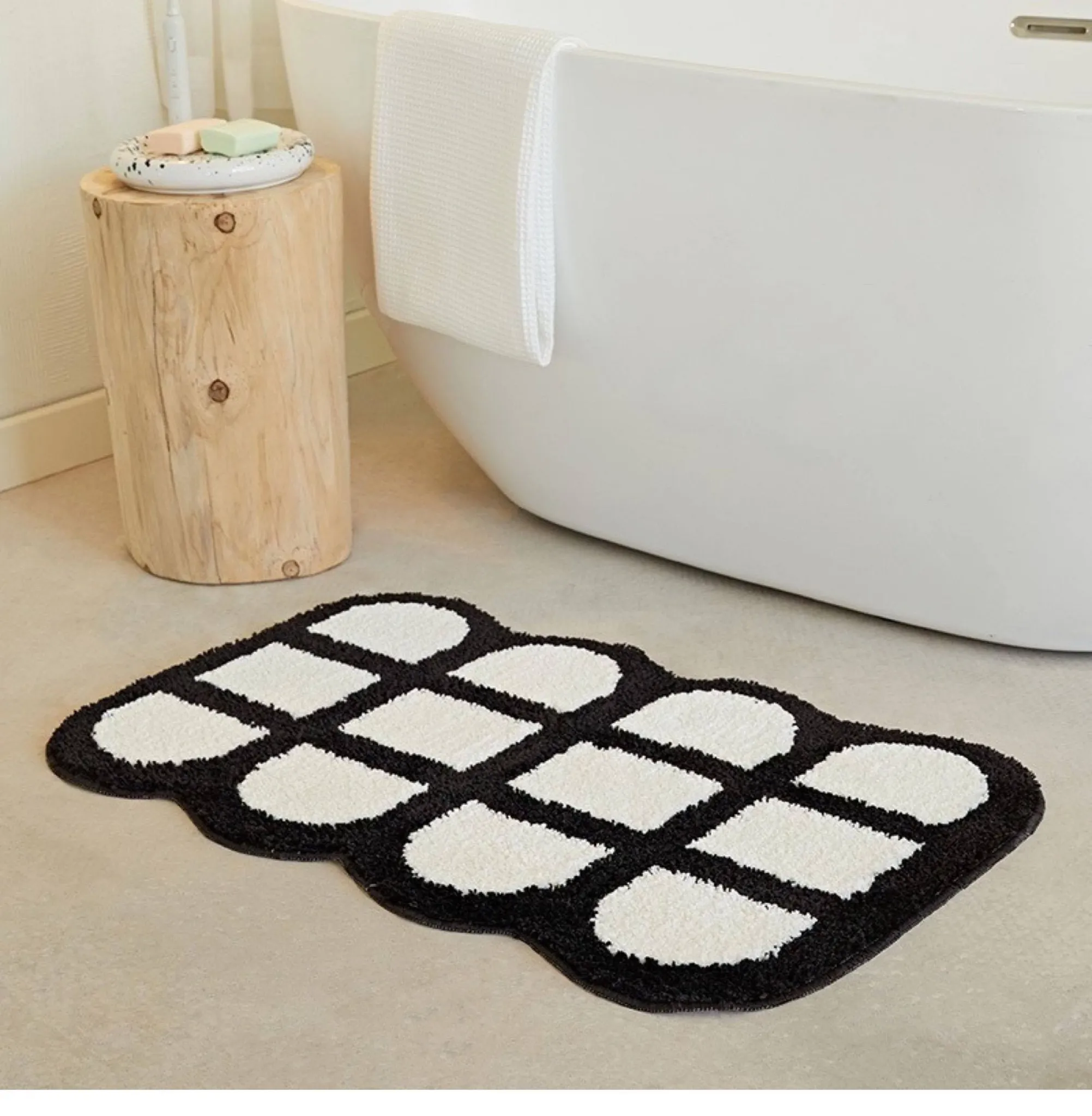 Texdreamのスタイリッシュなブラック&ホワイトチーズチェック玄関マット - 汚れに強く、耐久性抜群の家庭用フロアマットで、あなたのエントランスをおしゃれに演出!