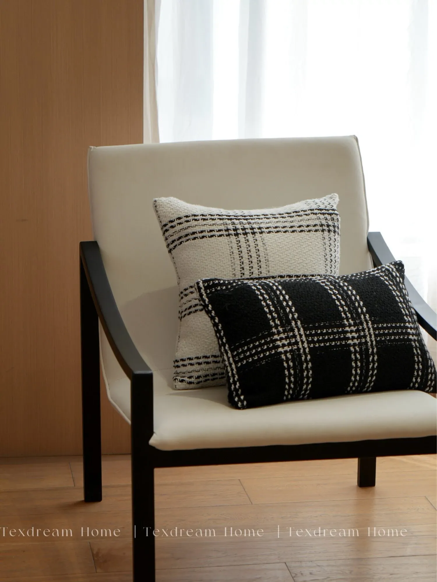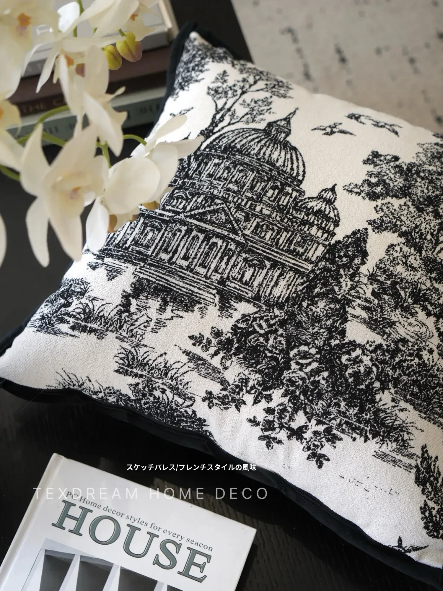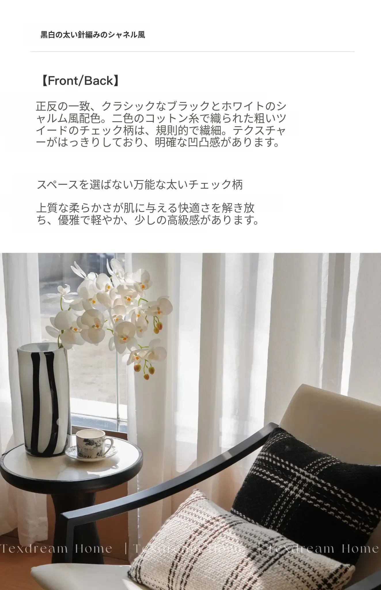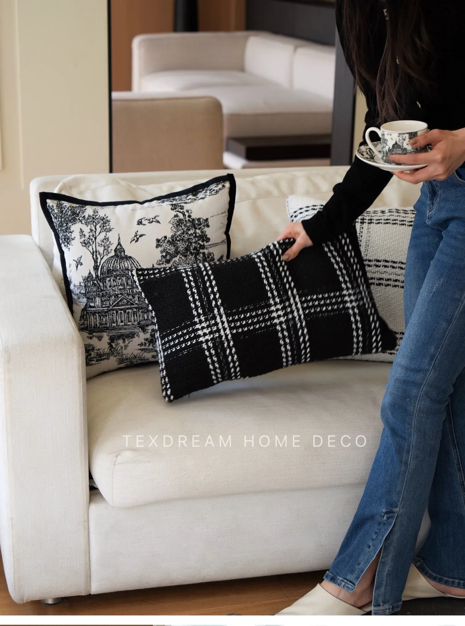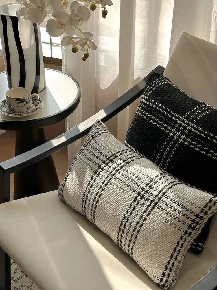 Texdreamスタイル モノクロシャネル風クッション 現代的なラグジュアリーリビングソファ用クッション ヘッドボードにぴったりな腰当て枕カバー