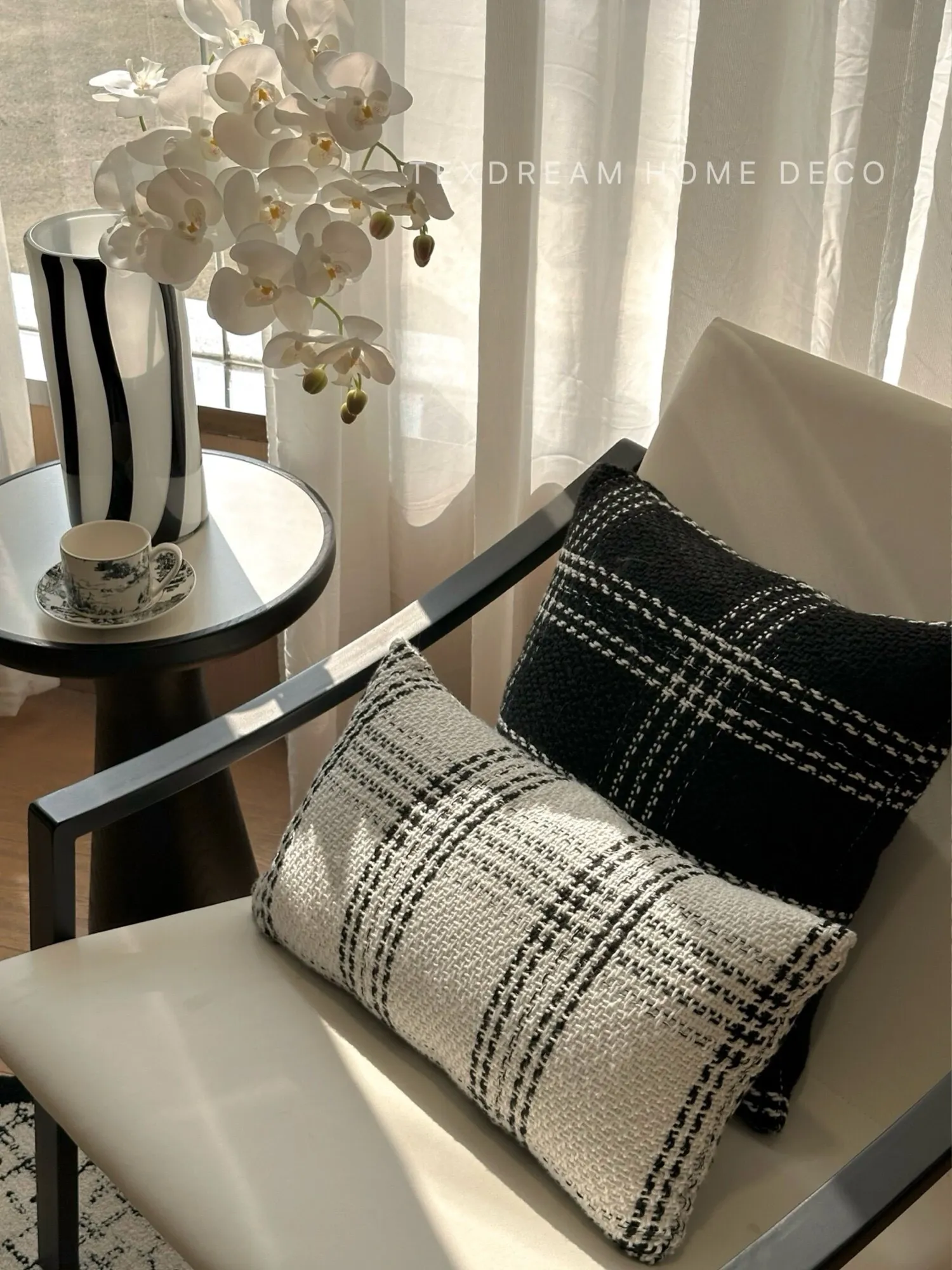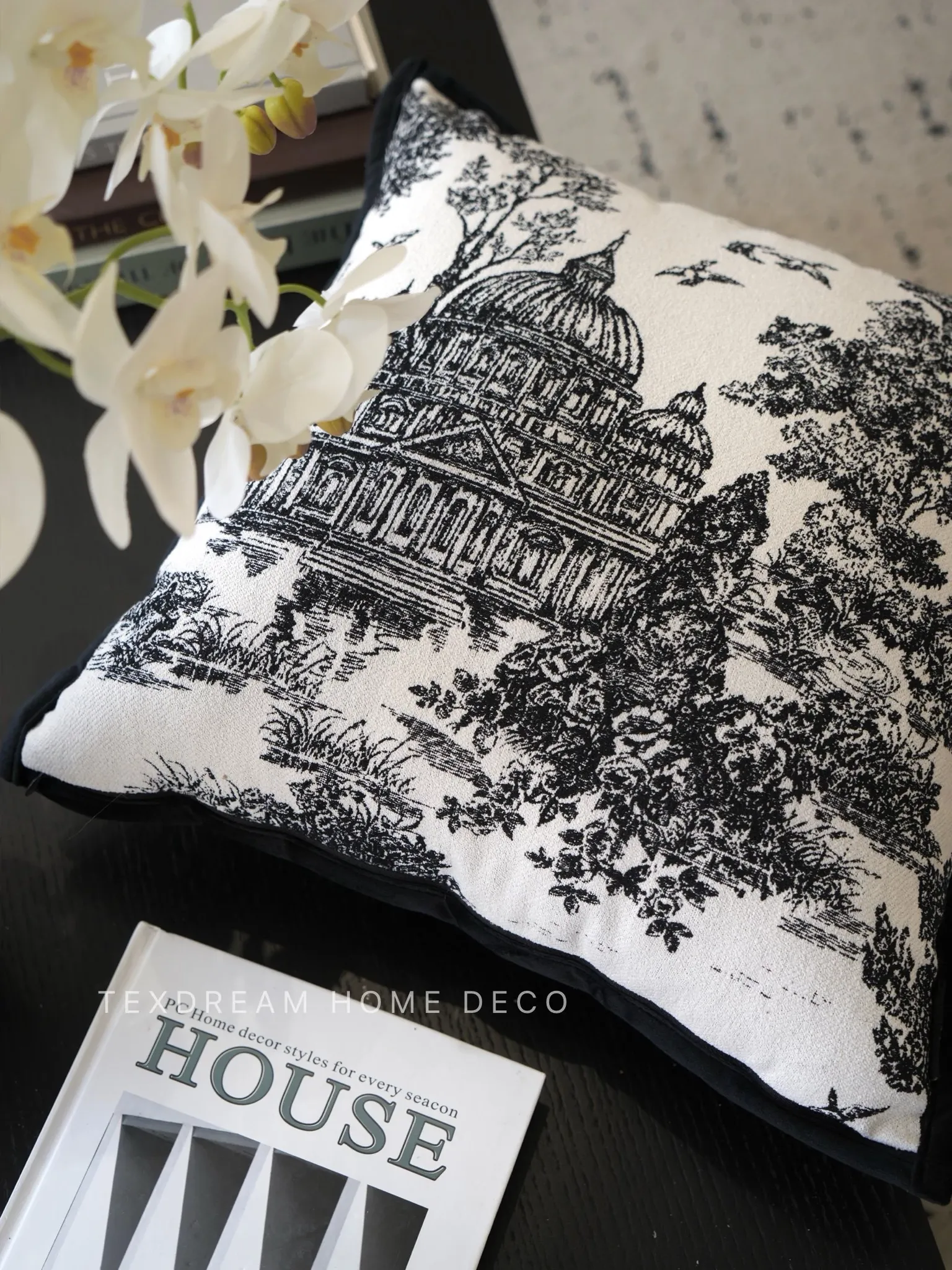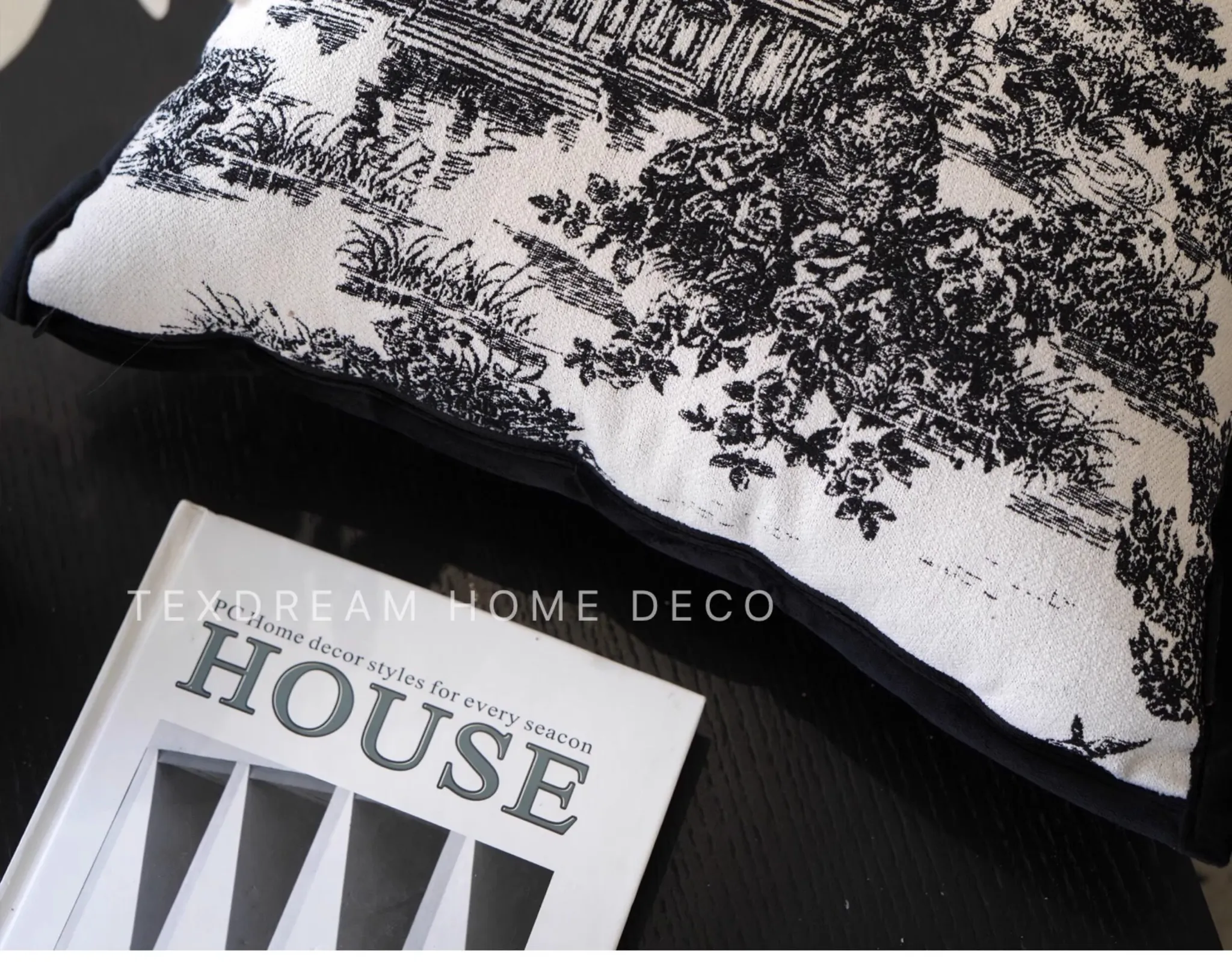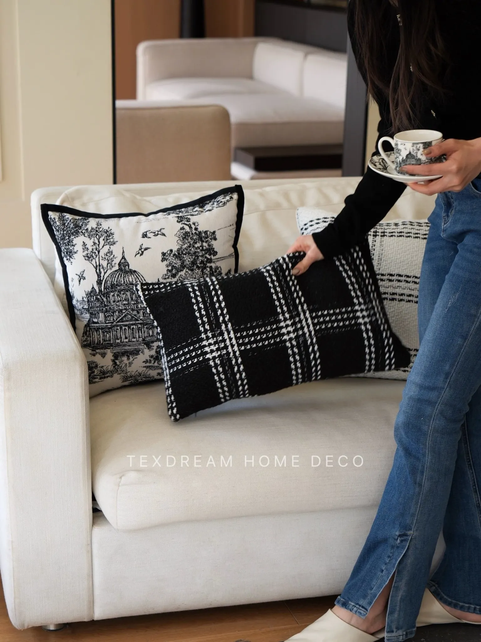 Texdreamスタイル モノクロシャネル風クッション 現代的なラグジュアリーリビングソファ用クッション ヘッドボードにぴったりな腰当て枕カバー