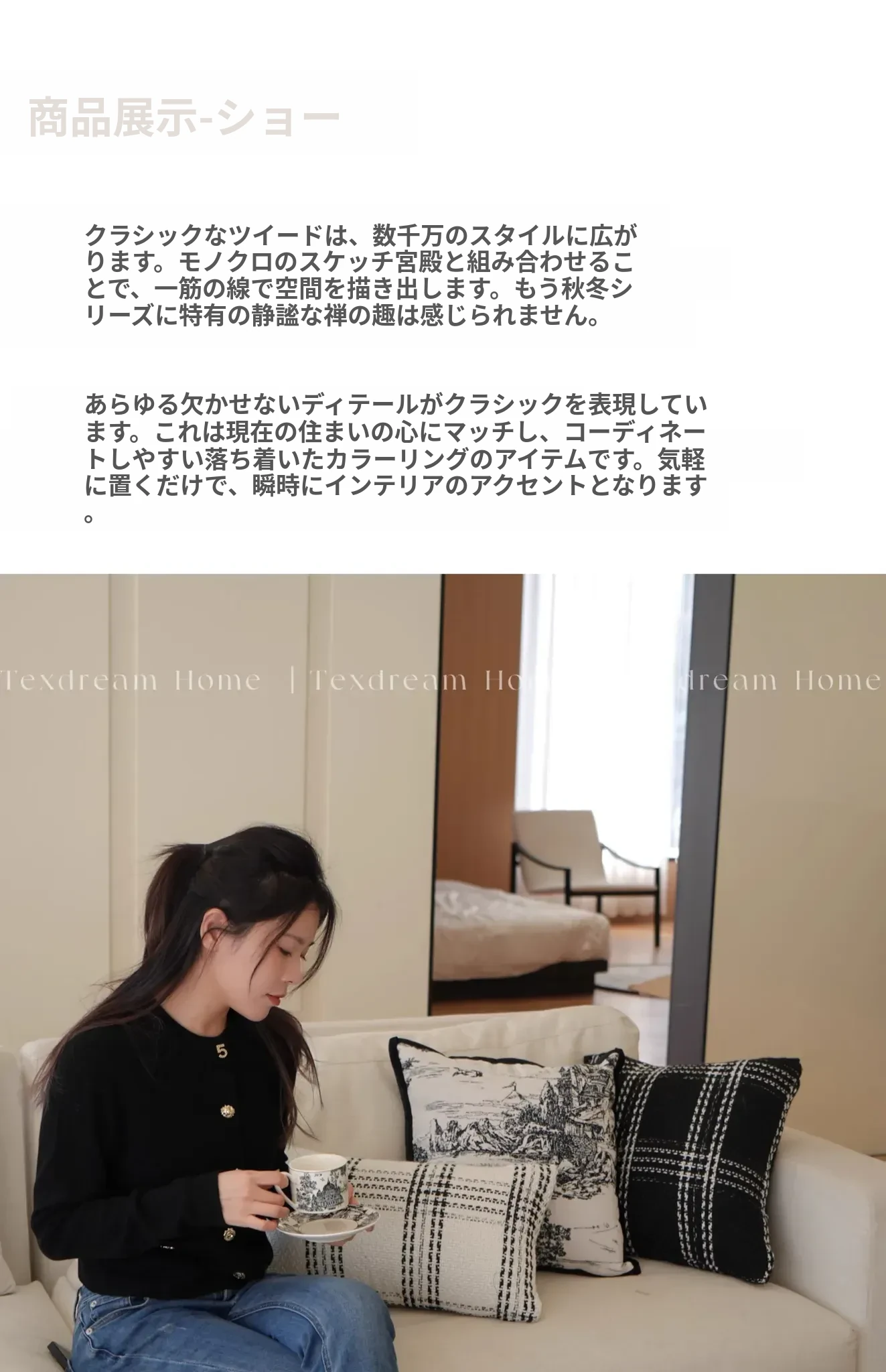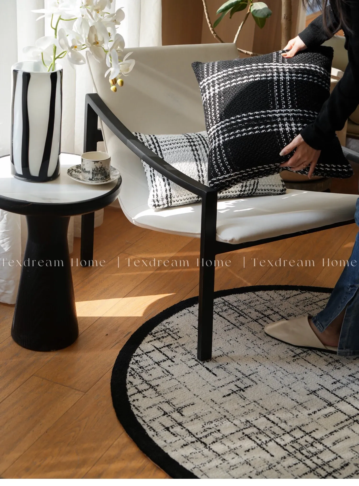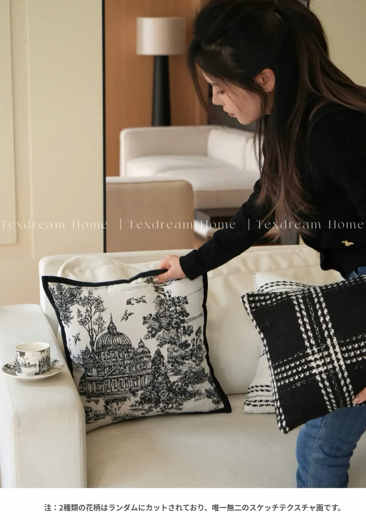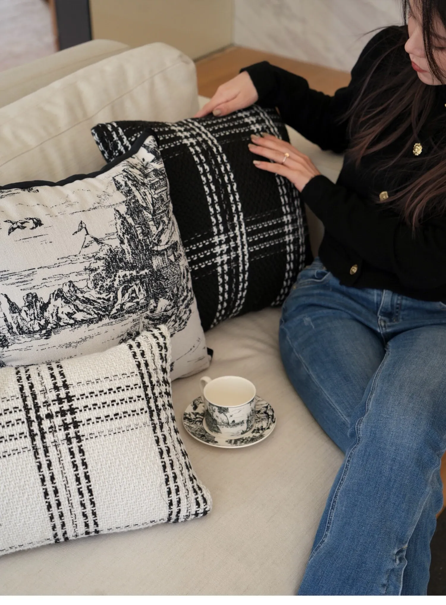 Texdreamスタイル モノクロシャネル風クッション 現代的なラグジュアリーリビングソファ用クッション ヘッドボードにぴったりな腰当て枕カバー