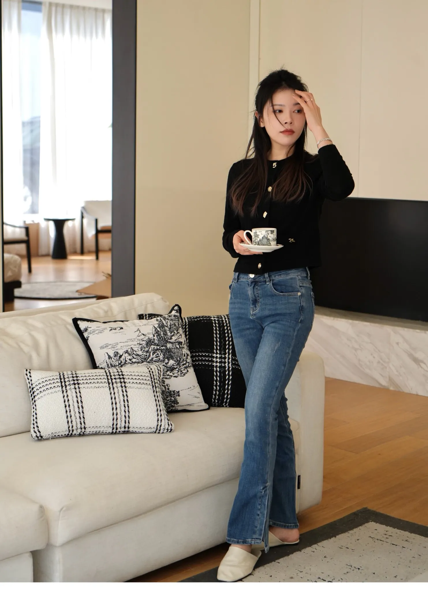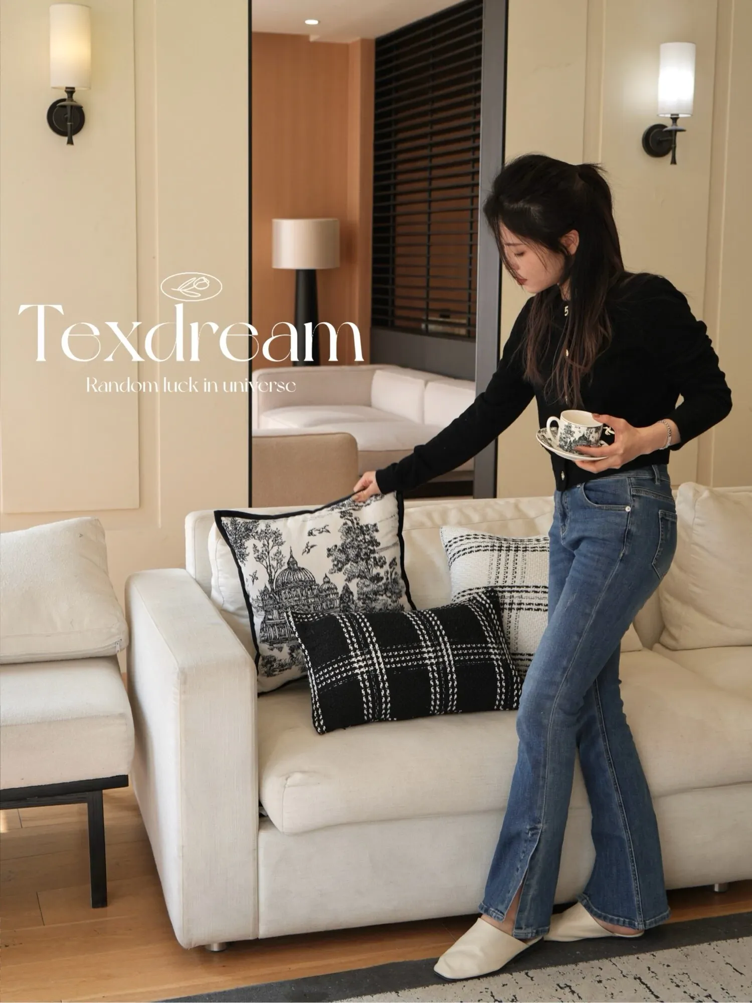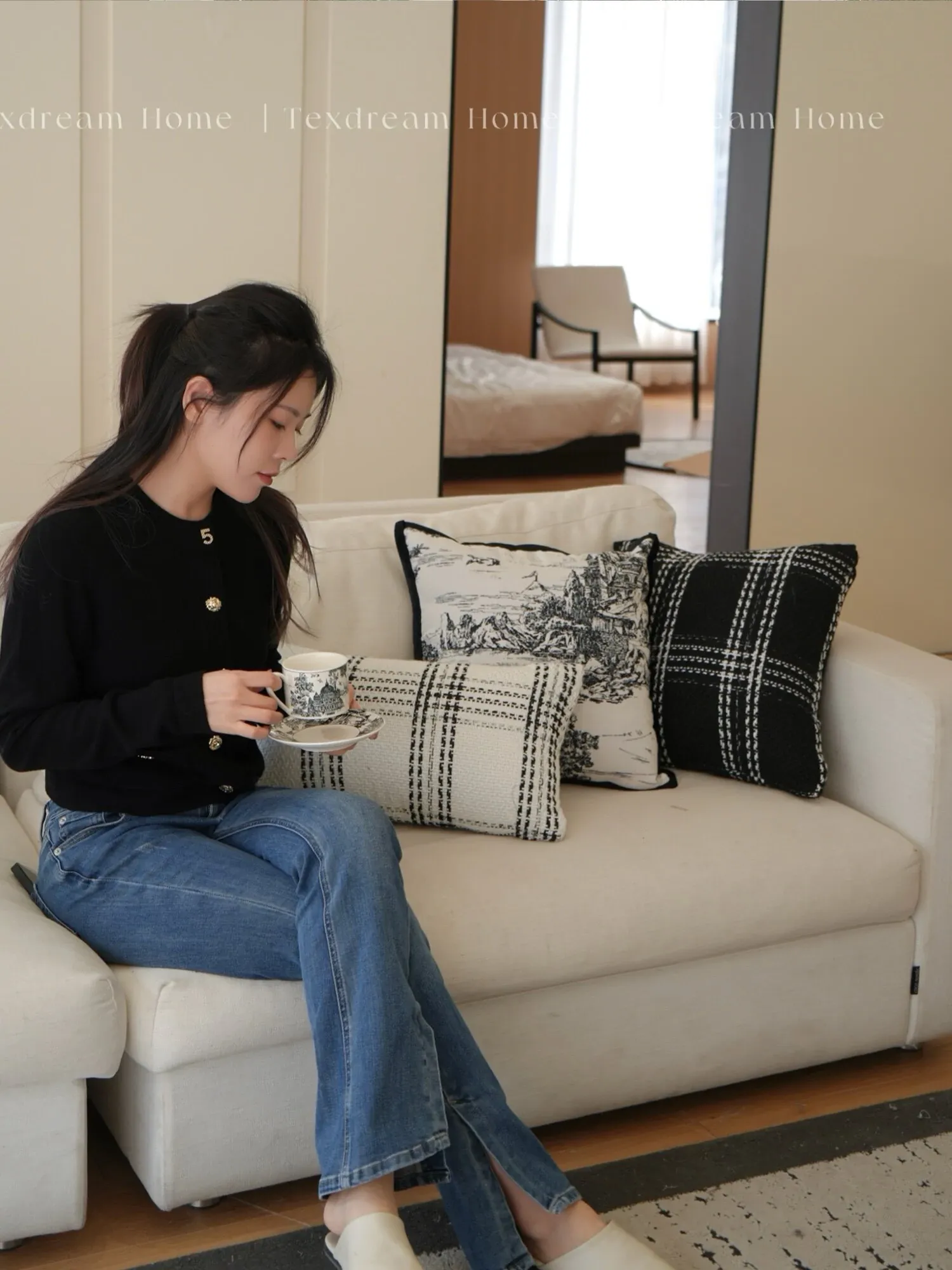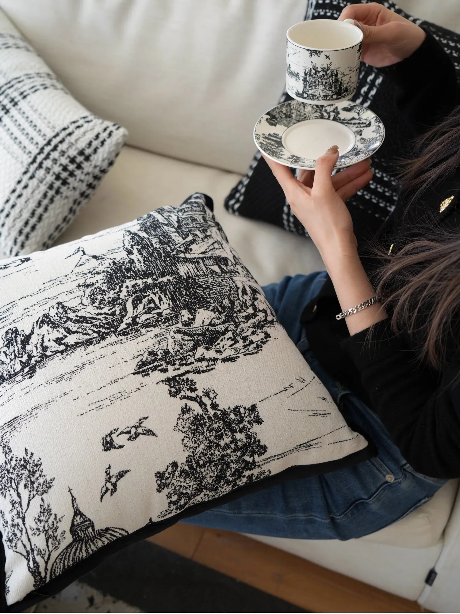 Texdreamスタイル モノクロシャネル風クッション 現代的なラグジュアリーリビングソファ用クッション ヘッドボードにぴったりな腰当て枕カバー