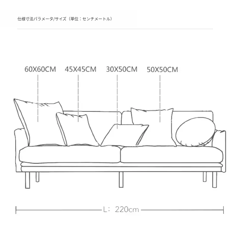 【クッションの紹介 | デフォルトのクッションはカバーより5cm大きい】