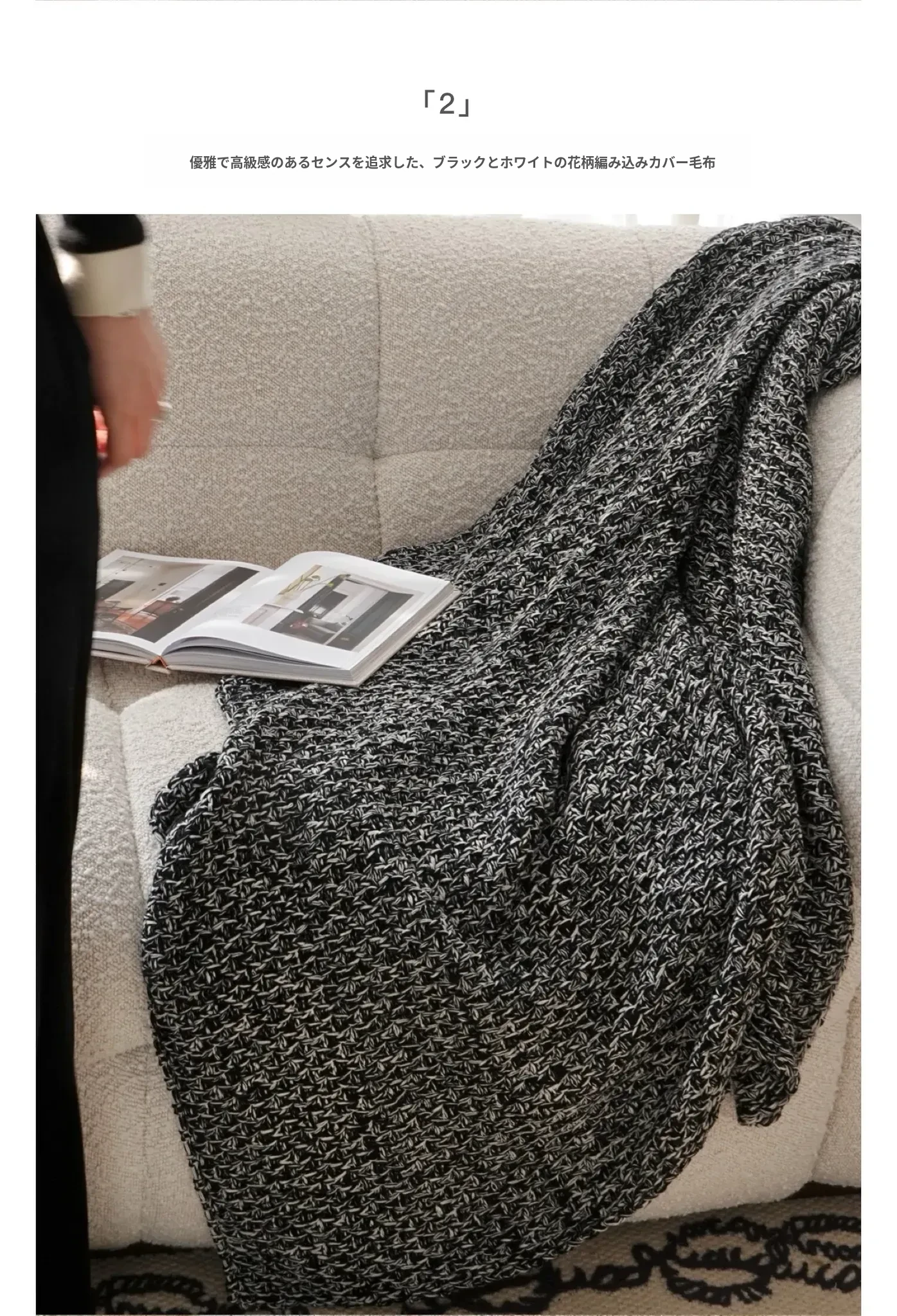 【白黒の粗い編み目のシャネル風】ブラック
