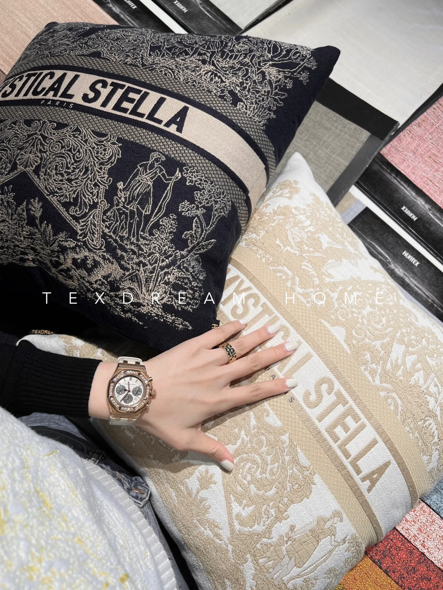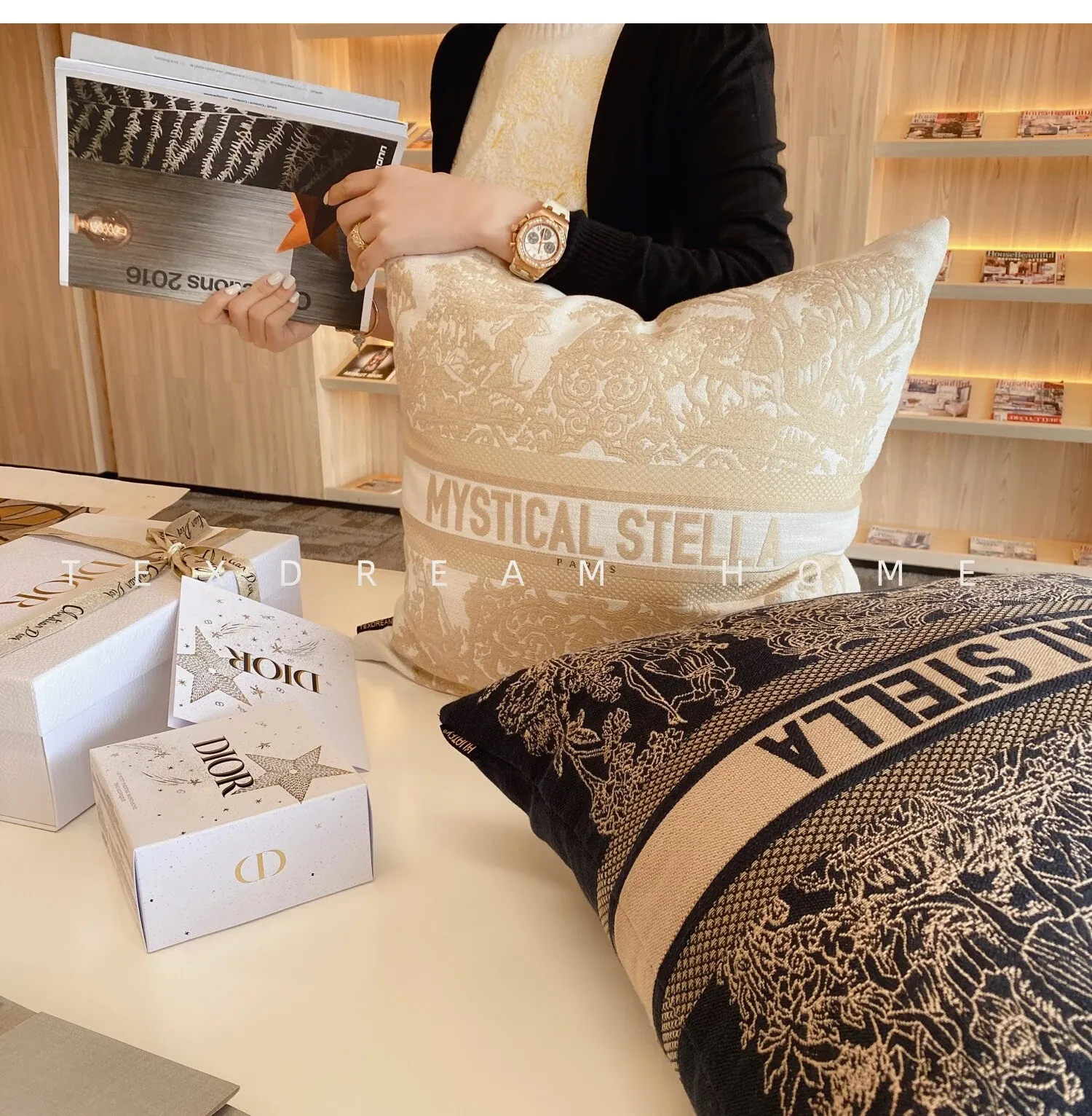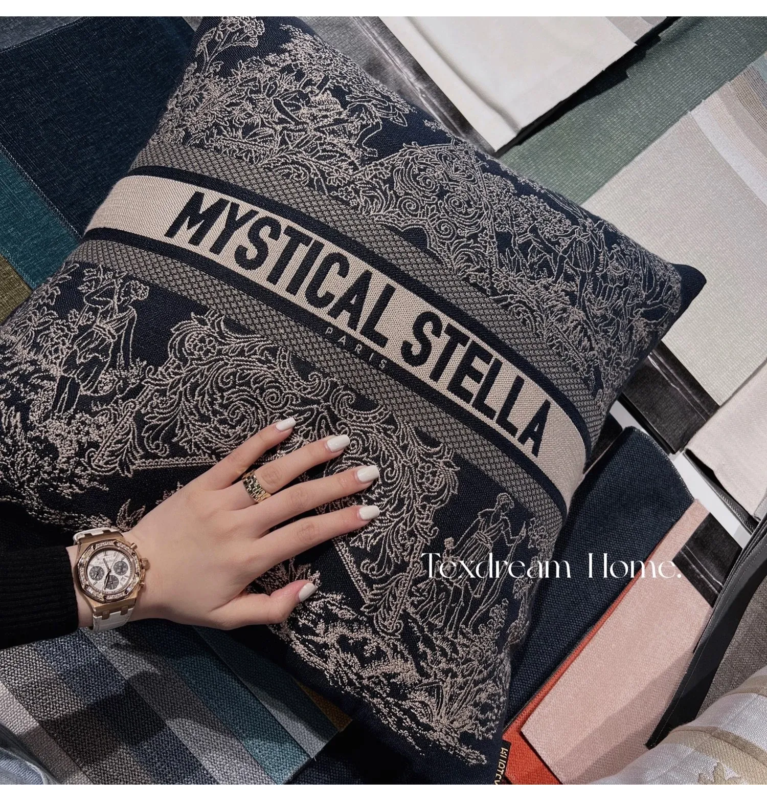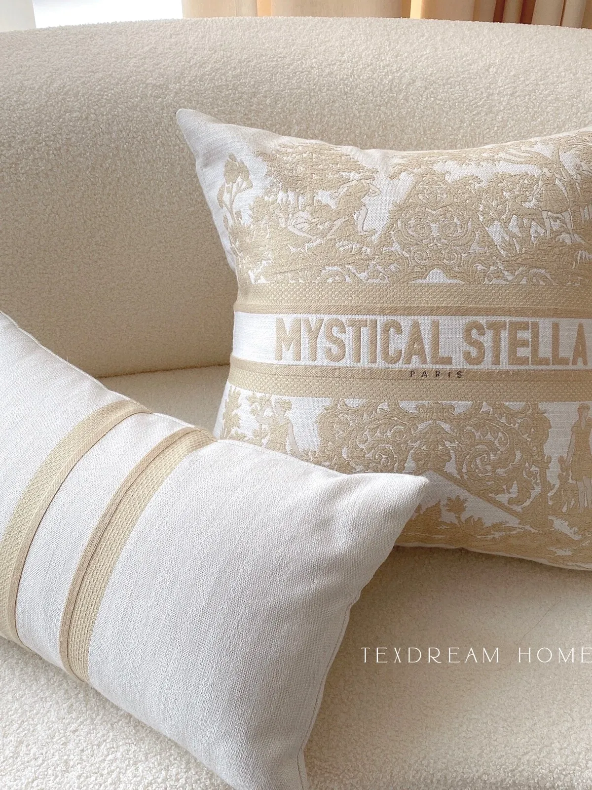 TEXDREAMの新作!神秘的な星刺繍入りモダンラグジュアリーソファクッションカバー、スタイリッシュなモデルルームやベッドサイドにぴったり!おしゃれで快適な空間を演出します。