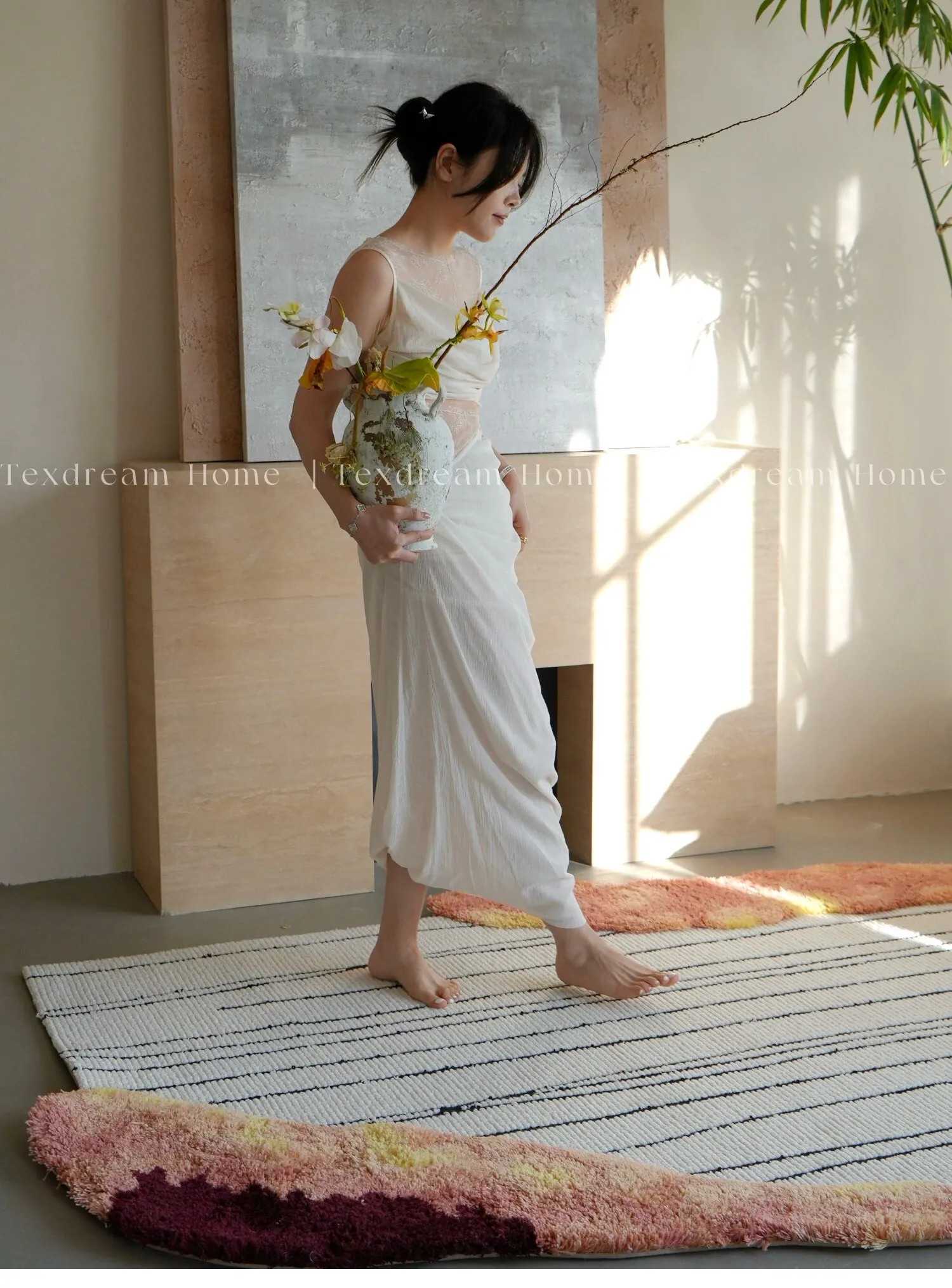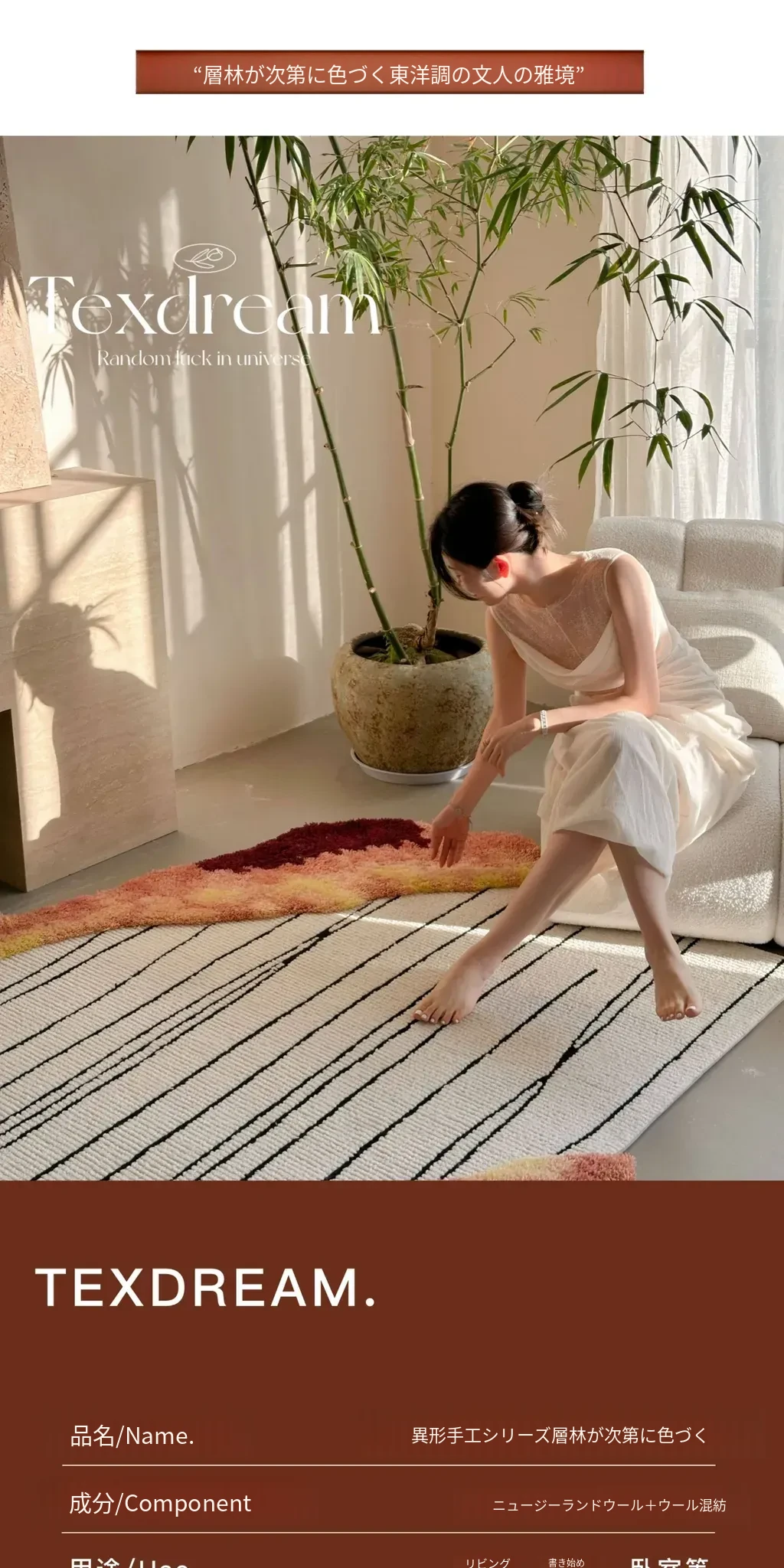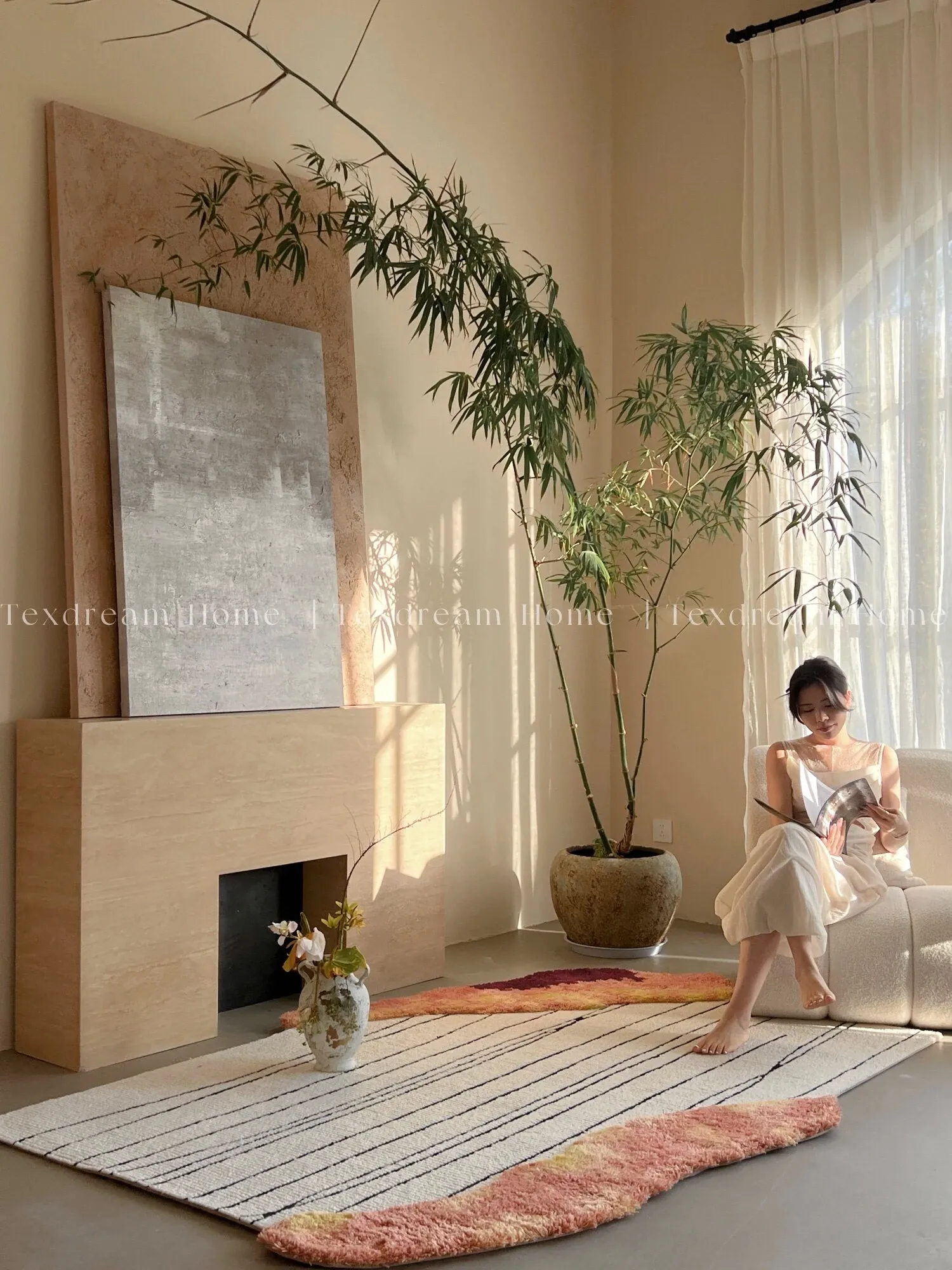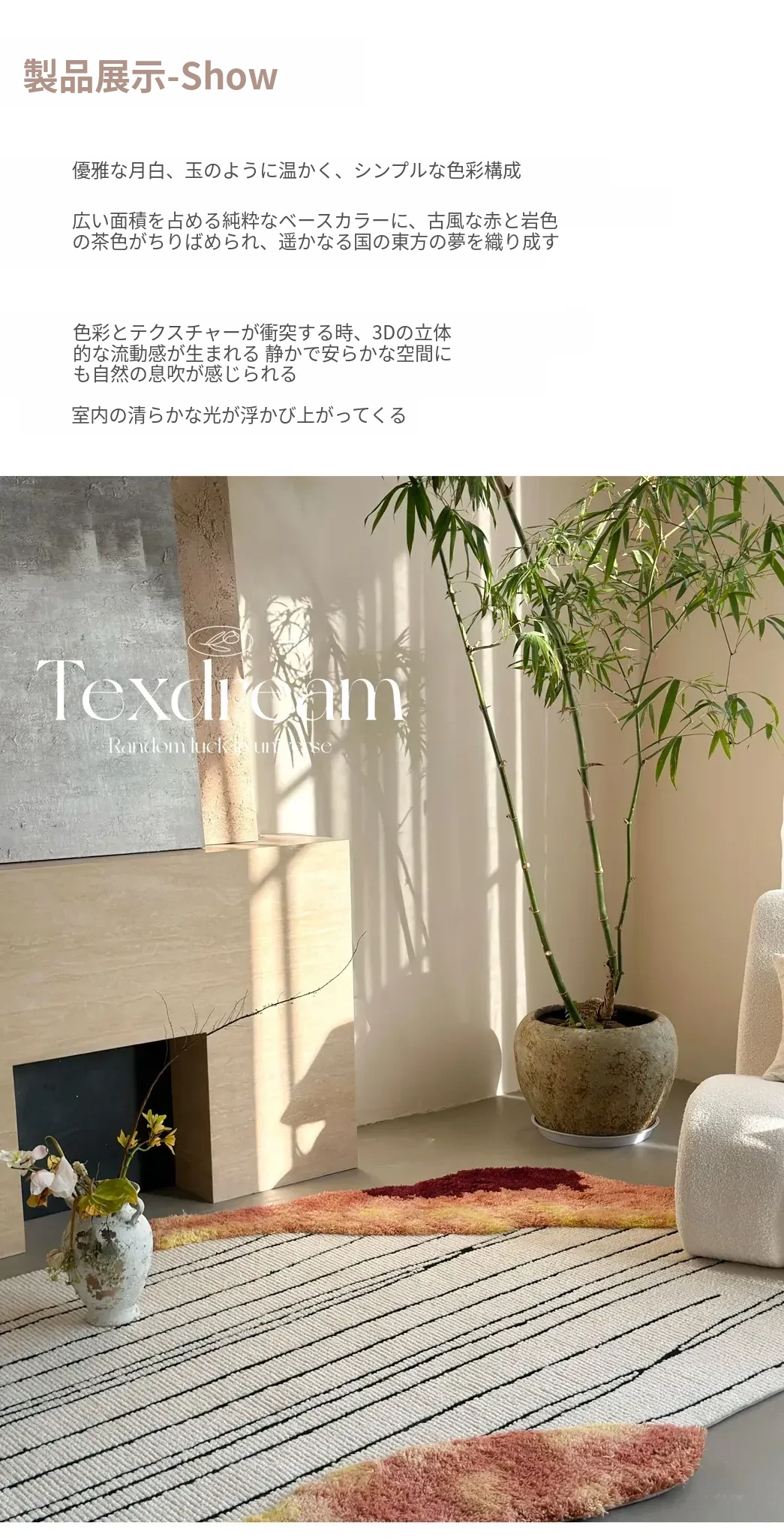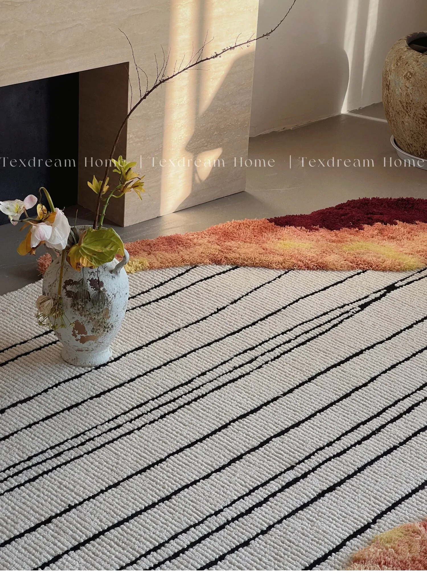 Texdreamの洗練されたフレンチスタイルのウールカーペット - モダンな高級ヴィラにぴったりなリビング&ベッドルーム用マット。上質な素材で、空間に優雅さをプラスします。